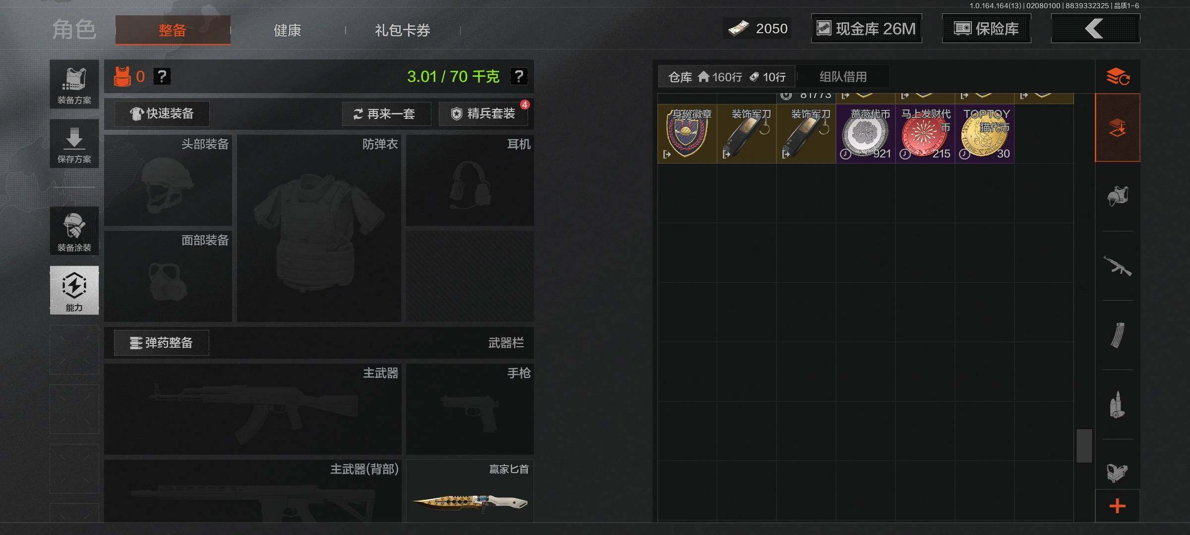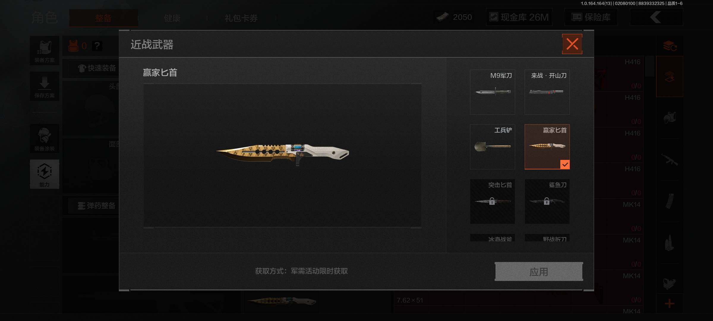 【aqzg1229】等级:30/段位:暗区传说/仓库价值百万:97.3/柯恩币:26424515/赢家匕首/白蔷薇斯黛拉/骑士之剑vss/旗帜aek/告丧夜曲aug/蓝色咆哮h416