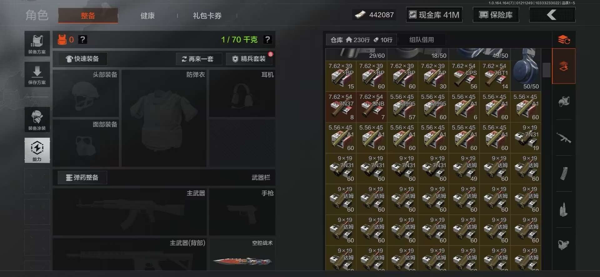 [16547981]库存价值220 3近战武器 7金呛皮 可修改实名 【柯恩币数量】442087现金库41m 【近战武器】工兵铲空腔战术来战·开山刀 【金色呛皮】利齿风暴·m旧王圣谕·q191战术大师·an94包络战术·akm告丧夜曲·aug蓝色咆哮·h416旗帜·aek 【紫色呛皮】利齿风暴·t03利齿风暴·t79竞技·m110鱼跃丹青·t85鱼跃丹青·qbu191旗帜·rpk16火力倾泻·rpd棱光裂变·ace31骑士之剑·scar-l格勒涂装·ak12典礼武备·mcx粉绒臻选·sks战术大师·suomi战术大师·svds巡林客·t951来战·ak74n竞技·m4a1白色丧钟·莫辛白貂·f57禁止访问·ump45无畏·usas12骑士之剑·mk14 【角色装扮(紫)】金狮护身·转运套装高地武士套装和平先锋作战套装财团之手作战套装砼城浪客·套装