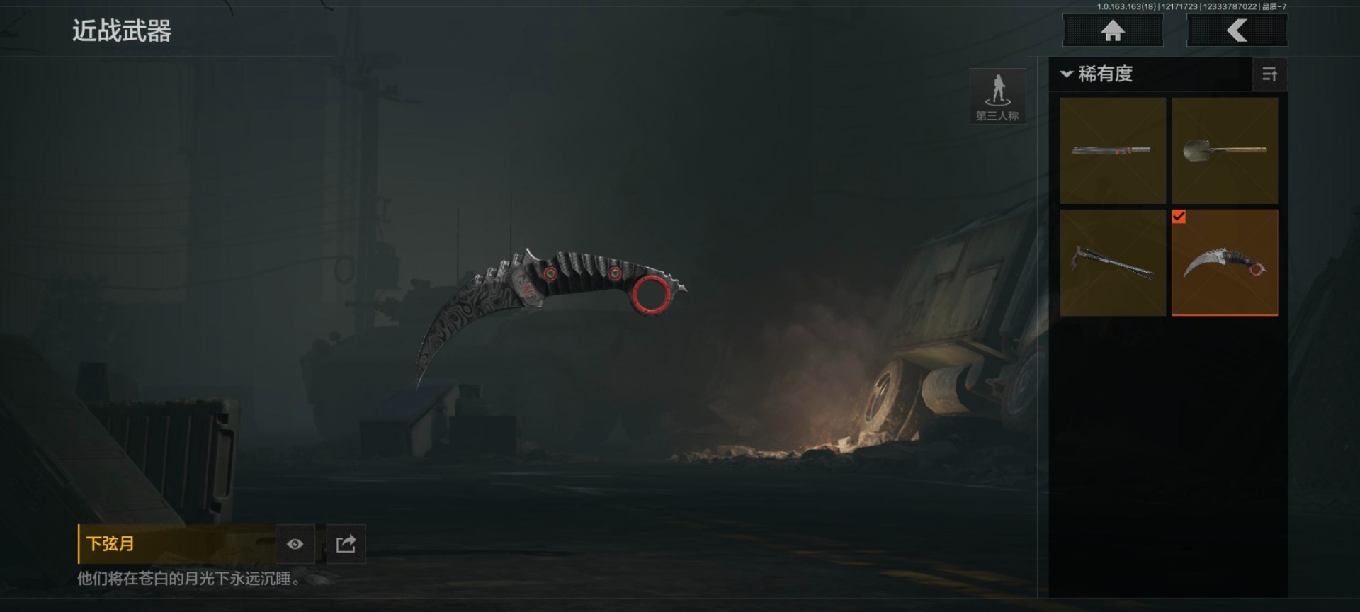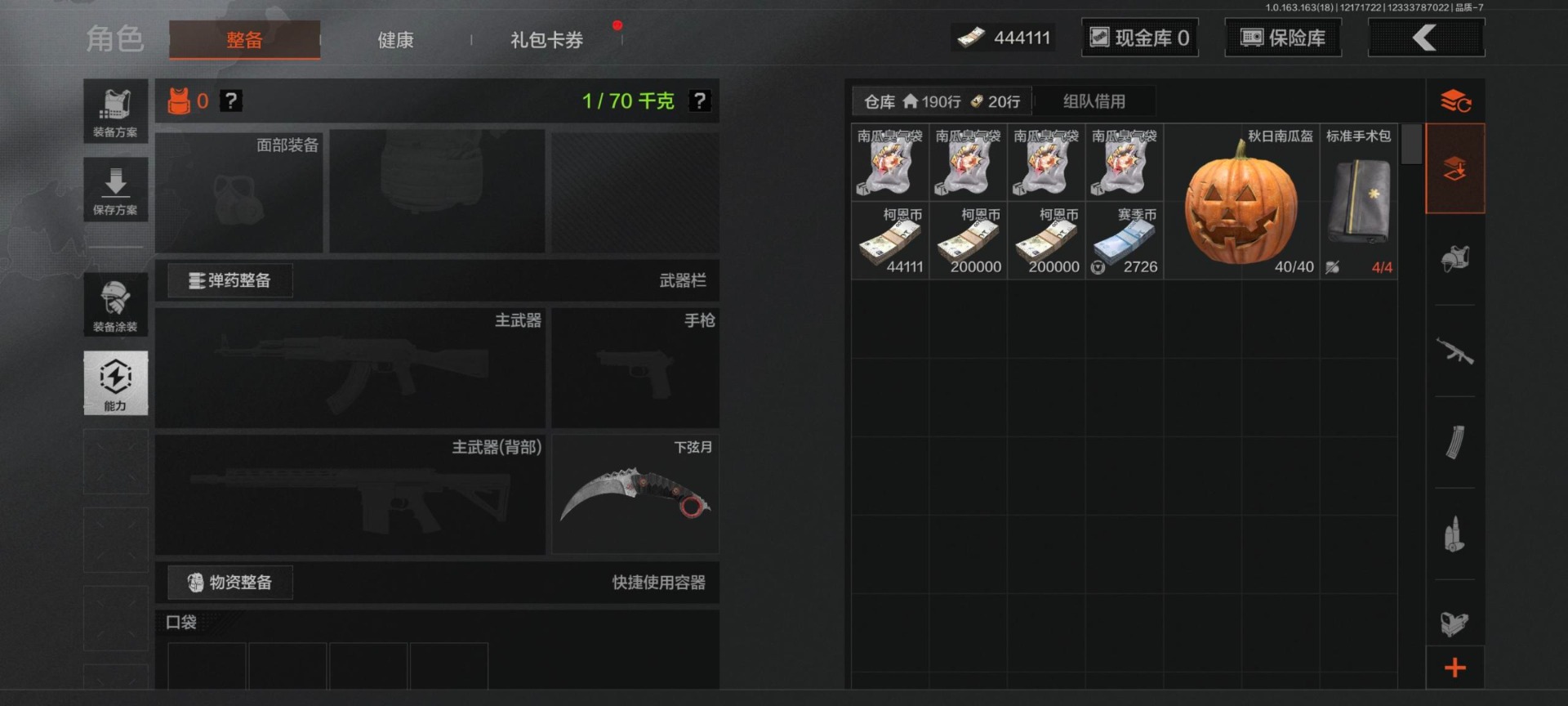 [16548572]库存价值0.45 4近战武器 3金呛皮 可修改实名 【柯恩币数量】:444111 【近战武器】:工兵铲来战·开山刀下弦月裁决手杖剑 【金色呛皮】:包络战术·akm林中人·fal蓝色咆哮·h416 【紫色呛皮】:骤羽尖啸·m猩红羽翼·vss鱼跃丹青·qbu191鱼跃丹青·dt mdr旗帜脉冲·m110战术大师·sj16战术大师·svds潜渊蛇鳞·m4a1秘域鎏金·rpk16粉绒臻选·ar30自喷网格·h416禁止访问·ump45灰鼠幻歌·p90白色丧钟·莫辛敬伙伴·m16 【角色装扮(紫)】:台风ii竞技运动服