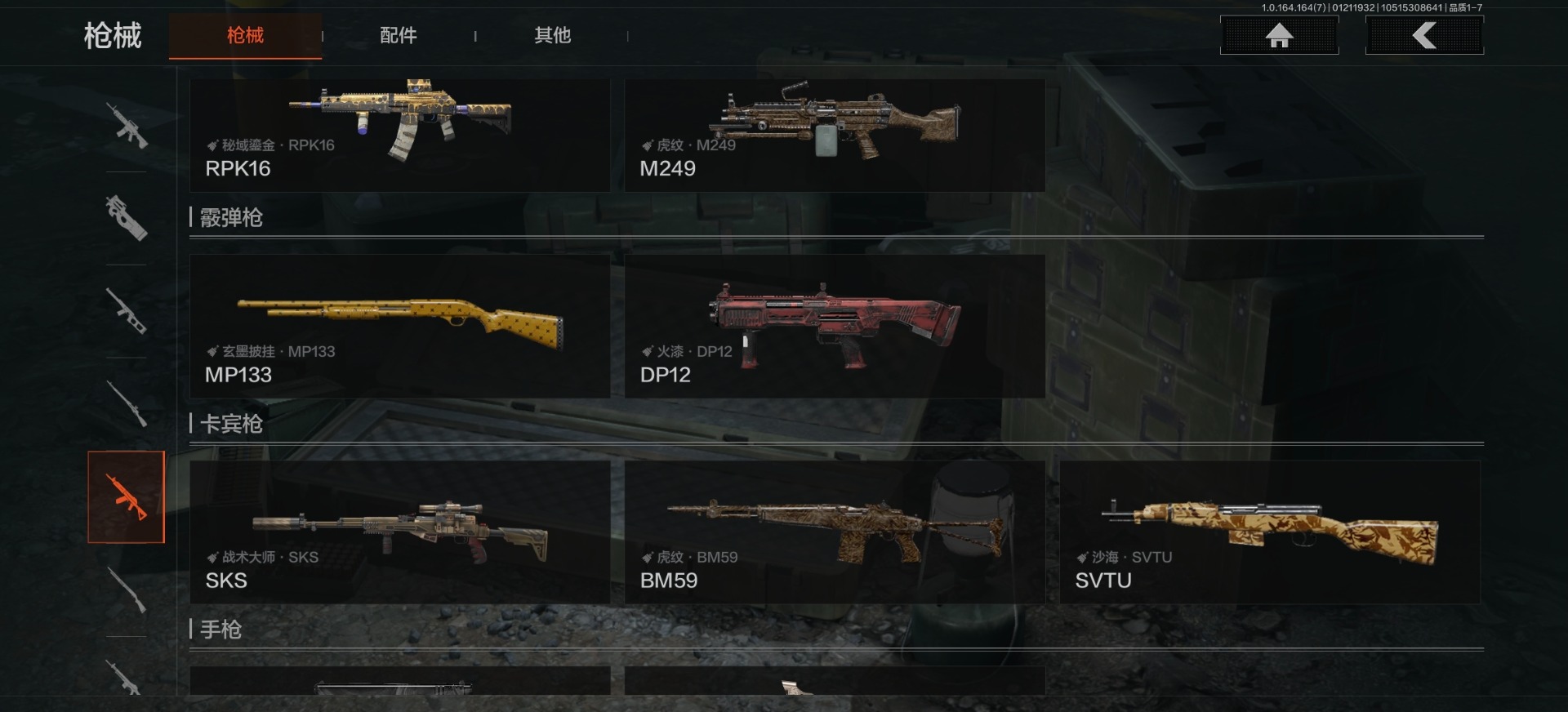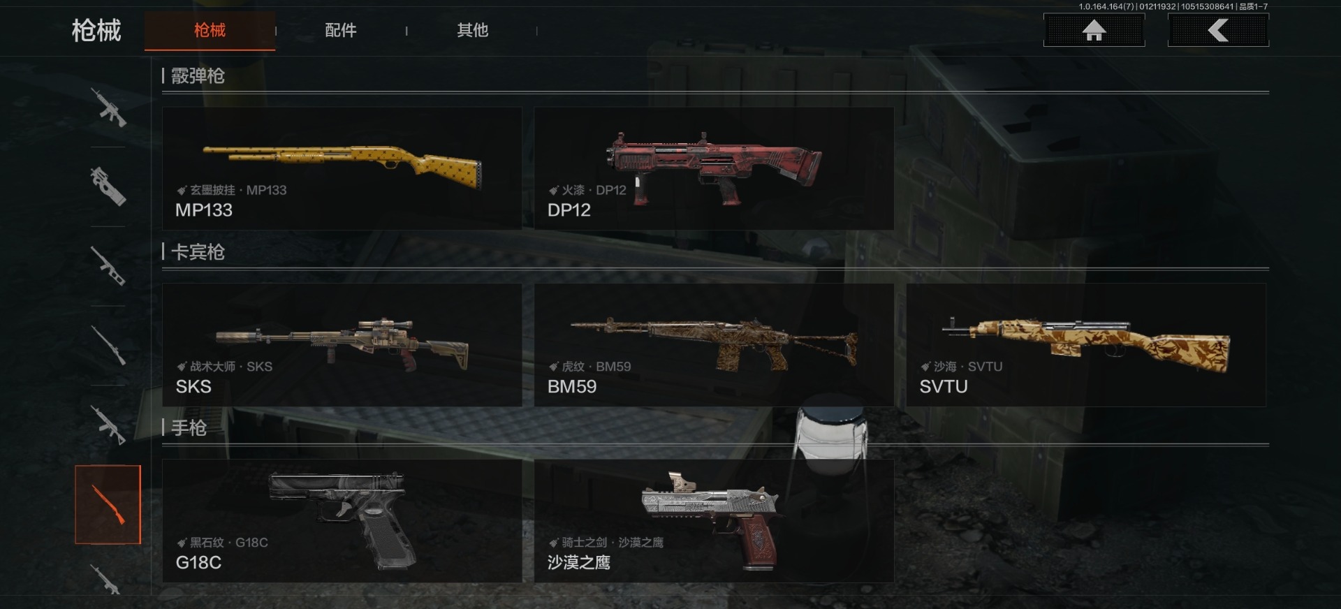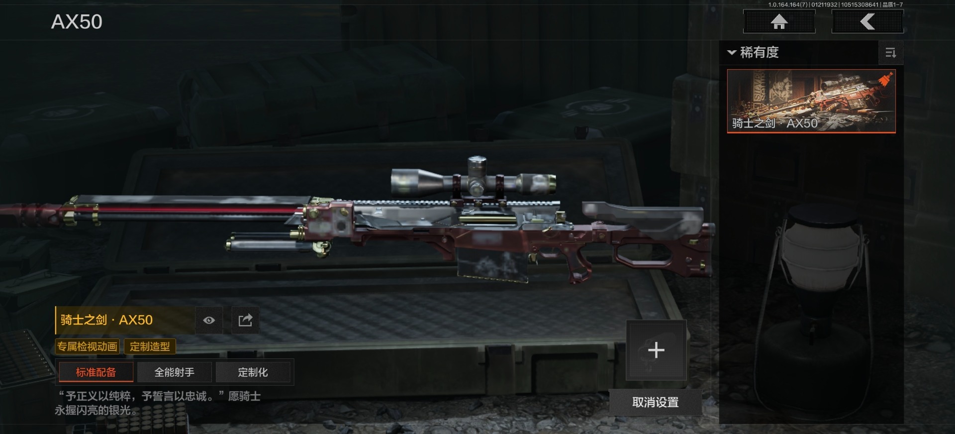 [16548791]库存价值11.6 2近战武器 2金呛皮 可修改实名 【柯恩币数量】3867 【近战武器】工兵铲空腔战术 【金色呛皮】战术大师·aek骑士之剑·ax50 【紫色呛皮】骑士之剑·akm骑士之剑·scar-l格勒涂装·ak12粉绒臻选·ar30战术大师·ak74n战术大师·suomi战术大师·sks战术大师·svds战术大师·sj16旗帜脉冲·m110 【角色装扮(紫)】高地武士套装