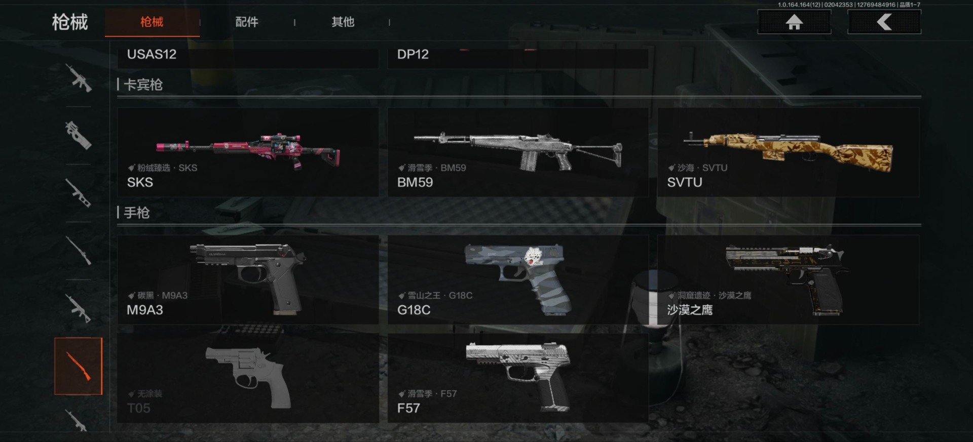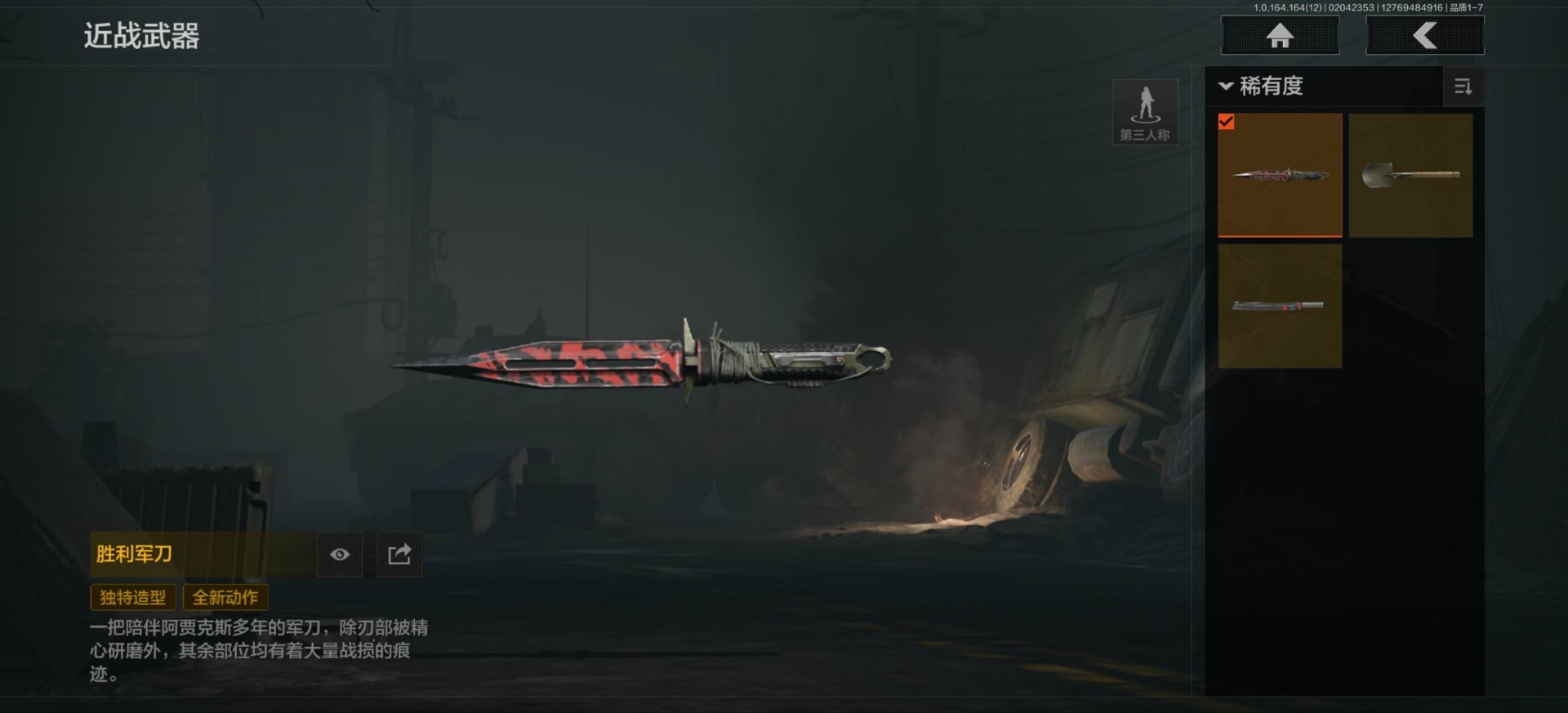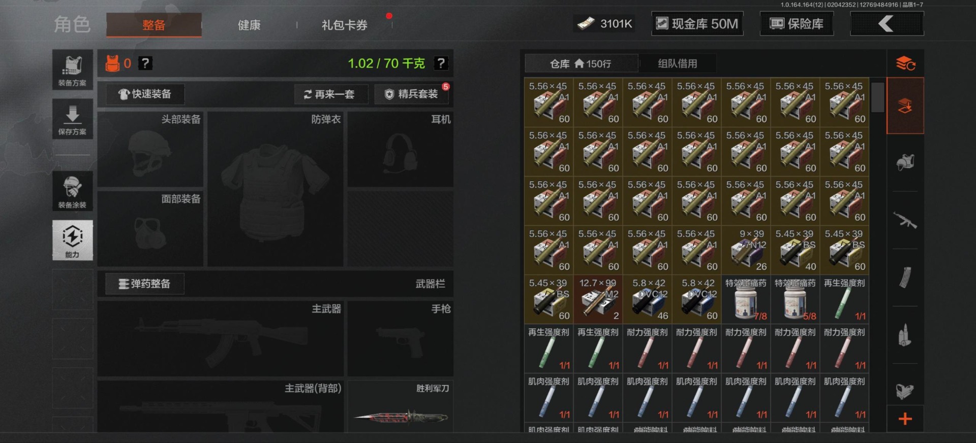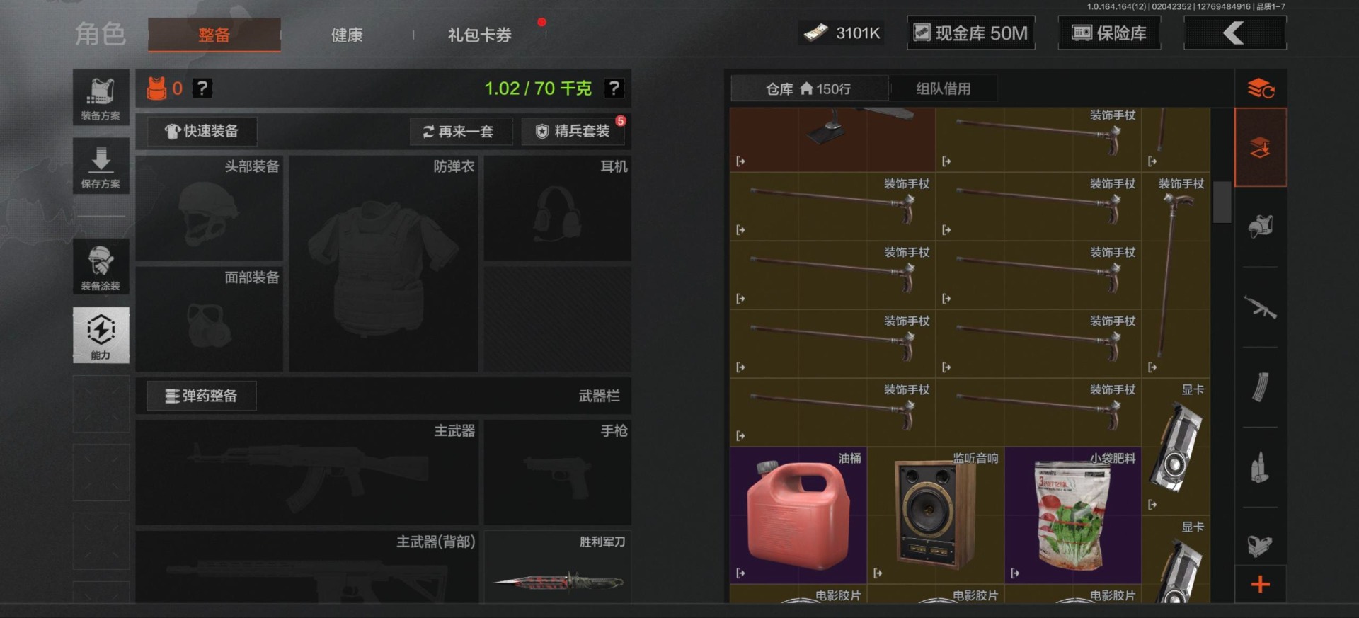 [16548814]库存价值81.1 3近战武器 3金呛皮 可修改实名 【柯恩币数量】3101 【近战武器】工兵铲来战·开山刀胜利军刀 【金色呛皮】旧王圣谕·q191浮鳞影青·q192告丧夜曲·ar57 【紫色呛皮】骑士之剑·akm包络战术·莫辛动感舞步·ace31包络战术·usas12粉绒臻选·sks秘域鎏金·rpk16来战·ak74n自喷网格·h416掌中盾·mp5骑士之剑·aks74u雪原凌锋·svds缟兵玄墨·m110玄戈梨花·t03 【角色装扮(紫)】粉绒暴击套装和平先锋作战套装财团之手作战套装砼城浪客·套装