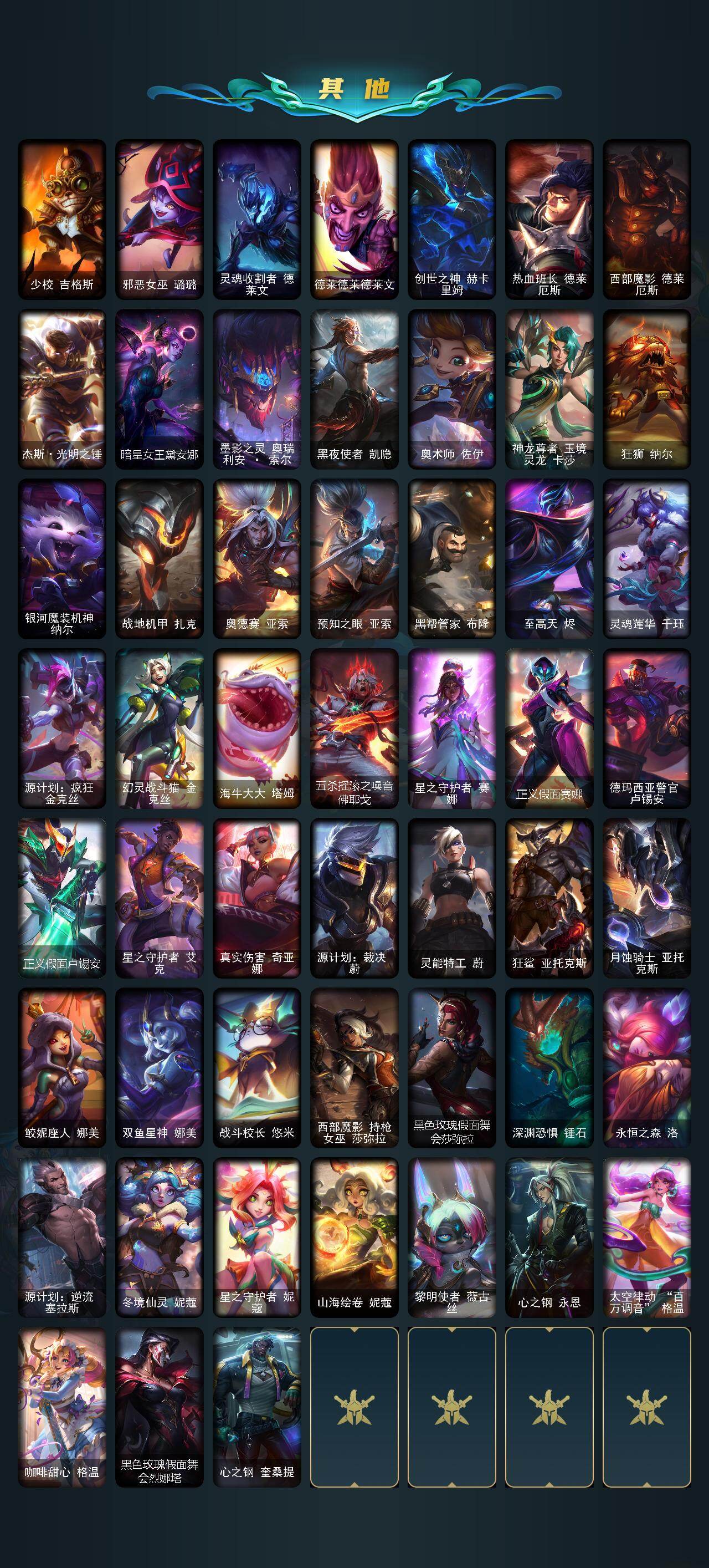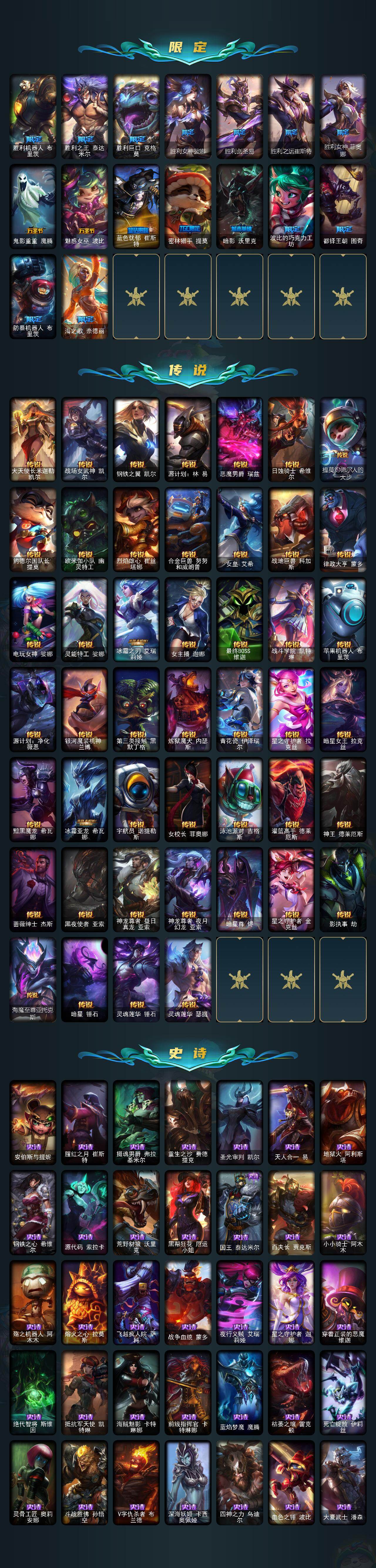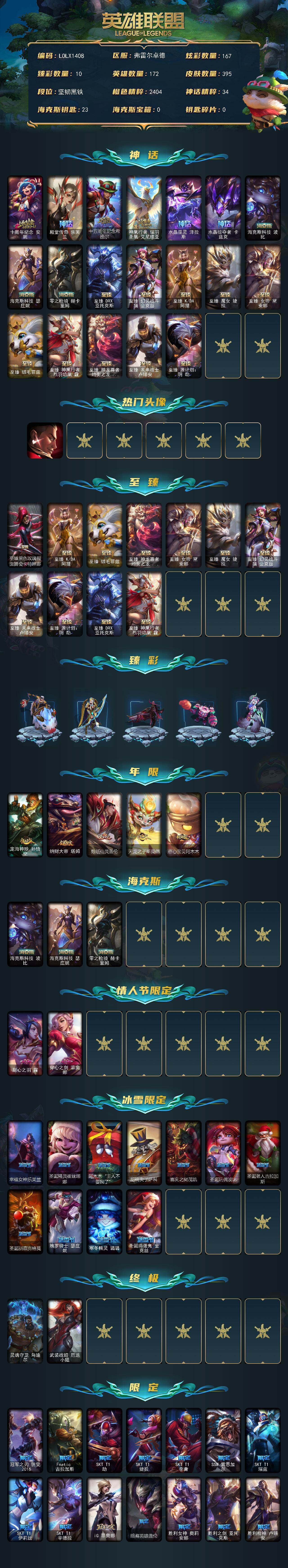 【lolx1408】172英雄/395皮肤/2终极/20神话/48限定/10臻彩/167炫彩/46传说/75史诗/未定级/十周年纪念安妮/殿堂传奇乐芙兰/十五周年纪念希维尔/神凰行者瑞羽圣凰艾尼维亚/水晶巫灵泽拉斯/水晶掠夺者卡兹克/海克斯科技波比/海克斯科技瑟庄妮/零之呛骑赫卡里姆/至臻drx亚托克斯/至臻幻灵战斗猫金克丝/至臻kda阿狸/至臻魔女婕拉/至臻女帝黛安娜/至臻绒毛菲兹/至臻神凰行者烈羽焰凰霞/至臻神龙尊者均衡之龙沃利贝尔/至臻未来战士卢锡安/至臻源计划阴劫/觅心游侠卢锡安头像/至臻黑色玫瑰假面舞会卡特琳娜/天龙之子卡莎飞龙乘云/无畏骑士瑟庄妮赤子初心/冠军之箭艾希凯旋圣装/西部天使赛娜贝利尔之怠/可爱可爱粉红红布里茨/殿堂传奇乐芙兰登神/魔女阿卡丽虚荣/净雪之月莫甘娜冬虹/这货不是银狐库奇/定海神珍孙悟空/纳财大帝塔姆/剪纸仙灵盖伦/天龙之子斯莫德/点心宝贝阿木木/甜心之羽霞/穿心之剑菲奥娜/幸福女神乐芙兰/圣诞精灵崔丝塔娜/阿木木“主人不要我了”/胡桃夹子萨科/喜庆之树茂凯/圣诞玩偶波比/圣诞老人古拉加斯/圣诞驯鹿克格莫/魄罗骑士瑟庄妮/寒冬精灵璐璐/圣诞捣蛋鬼金克丝/灵魂守卫乌迪尔/武装战姬厄运小姐/冠军之刃锐雯2016/fnatic古拉加斯/sktt1劫/sktt1婕拉/sktt1李青/ssw雷恩加尔/sktt1瑞兹/sktt1伊莉丝/sktt1辛德拉/ig菲奥娜/暗裔英雄盖伦/胜利女神奥莉安娜/胜利之剑亚托克斯/胜利呛神卢锡安/胜利机器人布里茨/胜利之王泰达米尔/胜利巨口克格莫/胜利女神娑娜/胜利剑圣易/胜利之运崔斯特/胜利女神菲奥娜/鬼影重重魔腾/魅惑女巫波比/蓝色忧郁崔斯特/密林猎手提莫/暗影沃里克/波比的巧克力工坊/都铎王朝图奇/防暴机器人布里茨/海之歌奈德丽/大天使长米迦勒凯尔/战场女武神凯尔/钢铁之翼凯尔/源计划林易/恶魔男爵瑞兹/日蚀骑士希维尔/提莫约德尔人的一大步/约德尔国队长提莫/欧米伽小队幽灵特工/烈焰雄心崔丝塔娜/合金巨兽努努和威朗普/女皇艾希/战地巨兽科加斯/律政大亨蒙多/电玩女神娑娜/灵能特工娑娜/冰霜之刃艾瑞莉娅/女主播迦娜/最终boss维迦/战斗学院凯特琳/苹果机器人布里茨/源计划净化薇恩/银河魔装机神兰博/第三类接触黑默丁格/炼狱魔犬内瑟斯/青花瓷伊泽瑞尔/星之守护者拉克丝/暗星女王拉克丝/黯黑魔龙希瓦娜/冰霜亚龙希瓦娜/宇航员诺提勒斯/女校长菲奥娜/泳池派对吉格斯/灌篮高手德莱厄斯/神王德莱厄斯/蔷薇绅士杰斯/黑夜使者亚索/神龙尊者昼日真龙亚索/神龙尊者夜月幻龙亚索/暗星尊烬/星之守护者金克丝/影执事劫/海魔至尊亚托克斯/暗星锤石/灵魂莲华锤石/灵魂莲华瑟提/安伯斯与提妮/腥红之月崔斯特/摄魂男爵弗拉基米尔/重生之沙费德提克/圣光审判凯尔/天人合一易/地狱火阿利斯塔/钢铁之心希维尔/源代码索拉卡/荒野豺狼沃里克/黑帮狂花厄运小姐/国王泰达米尔/百夫长贾克斯/小小骑士阿木木/殇之机器人阿木木/熔火之心拉莫斯/飞越疯人院萨科/战争血统蒙多/夜行义贼艾瑞莉娅/星之守护者迦娜/穿着正装的恶魔维迦/绝代智将斯维因/抵抗军天使凯特琳/海贼魅影卡特琳娜/前线指挥官卡特琳娜/蓝焰梦魔魔腾/枯萎之壤雷克顿/死亡绽放伊莉丝/灵骨工匠奥莉安娜/斗战胜佛孙悟空/v字仇杀者布兰德/深海妖姬卡西奥佩娅/四神之力乌迪尔/血色之锤波比/大夏武士潘森/实习护士阿卡丽/刺客信条凯南/腥红之月凯南/铁甲雄心盖伦/钢铁烈阳蕾欧娜/深海怪鱼克格莫/腥红之月鬼武者慎/战国大名慎/odst地狱伞兵拉克丝/星际迷航拉克丝/钢之逆鳞希瓦娜/骸骨之爪希瓦娜/暗影妖狐阿狸/海牛猎手菲兹/虚空海灵菲兹/铁血猎人雷恩加尔/源计划火菲奥娜/驯龙女巫璐璐/绞肉机刽子手德莱文/天启骑士杰斯/源代码丽桑卓/无限烈焰黛安娜/勇敢的心奎因/仲裁圣女辛德拉/灰烬领主奥瑞利安索尔/野火之藤婕拉/萌侦探喵尔摩斯/西部牛仔亚索/源计划风亚索/腥红之月亚索/源代码卡蜜尔/猛虎布隆/银河魔装机神千珏/五星大厨塔姆/时之砂艾克/霓虹杀拳蔚/锦鲤娜美/腥红之月锤石/上古战魂雷克塞/冰雪游神巴德/死亡骑士内瑟斯/创意工坊黑默丁格/烈焰猛士奥拉夫/魔导绅士维迦/宗师级锻造训练师/魔域梦魇安妮/战斗公主安妮/幽蓝梦魇加里奥/逆转裁判崔斯特/深渊巨蟹厄加特/西部魔影厄加特/弗拉基米尔伯爵/弗拉基米尔侯爵/波江星神弗拉基米尔/绝息圣堂弗拉基米尔/黑色玫瑰假面舞会弗拉基米尔/后场堡垒阿利斯塔/部落精神瑞兹/原野伐木工赛恩/创世之神赛恩/光明骑士希维尔/蕉泥座人索拉卡/星之守护者索拉卡/欧米伽小队魔鬼伞兵/灵魂莲华崔丝塔娜/冻原猎手沃里克/荒野巨兽努努和威朗普/脏兮兮努努和威朗普/丧尸努努和威朗普/星界圣骑双子努努和威朗普/西部牛仔厄运小姐/荒野女警厄运小姐/极地女神艾希/丛林侠盗艾希/魔女艾希/梦魇泰达米尔/武神贾克斯/青花瓷莫甘娜/遗迹守护者基兰/冲浪高手辛吉德/假面女皇伊芙琳/探戈灵魂伊芙琳/kdaallout伊芙琳/北风冻原图奇/屠龙勇士图奇/五杀摇滚iii遗失的章节卡尔萨斯/尼斯巨兽科加斯/狂欢阿木木/情绪摇滚阿木木/王子不是我阿木木/忍龟拉莫斯/沙之守护拉莫斯/重甲猎鹰艾尼维亚/小丑工作坊萨科/奥术师萨科/战栗之毒蒙多/泳池派对蒙多/深海一号卡萨丁/虚空前世卡萨丁/凌云之翼艾瑞莉娅/源计划正义艾瑞莉娅/青花瓷艾瑞莉娅/大力水手普朗克/海牛骑手库奇/