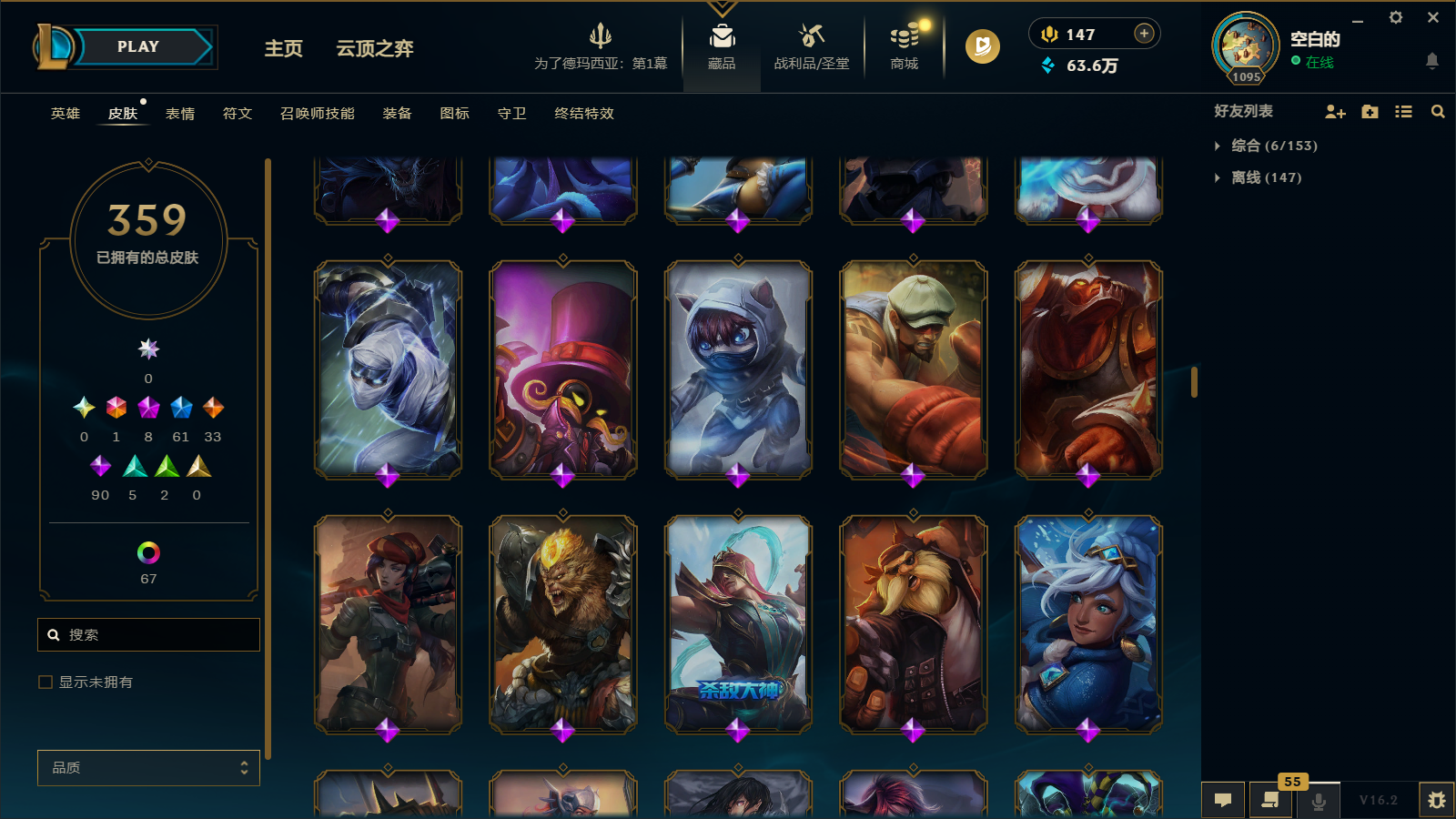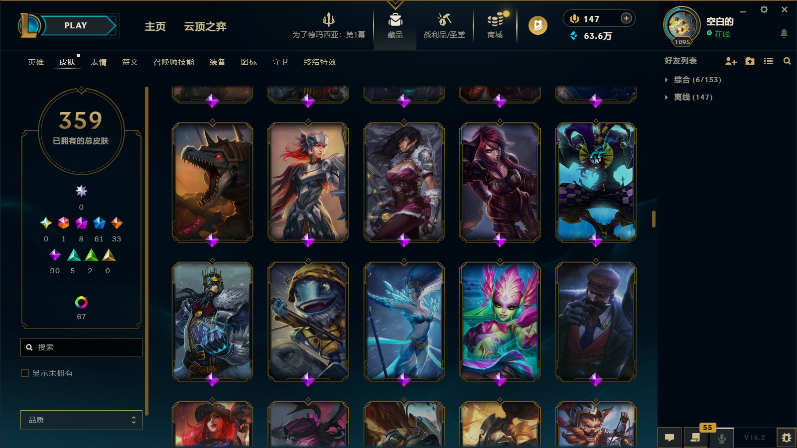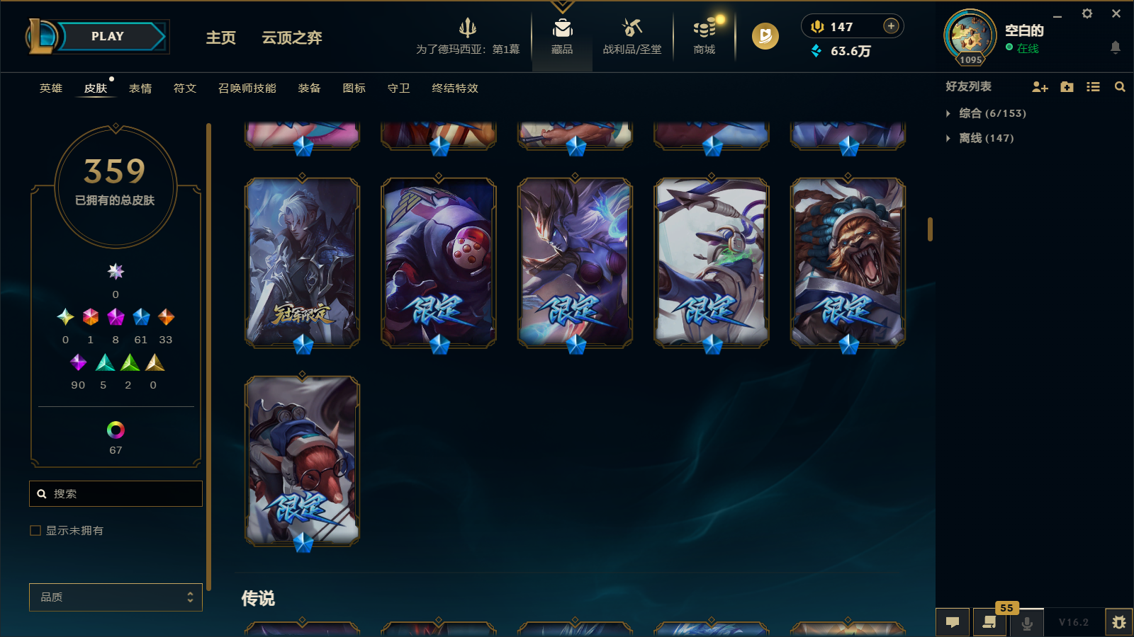 172英雄-359皮肤-【电信】【黑色玫瑰】172英雄-359皮肤-67炫彩-段位:未定级 未来战士 伊泽瑞尔 十五周年纪念 希维尔 十周年纪念 安妮 源代码 乐芙兰 灰烬守护者 慎 海克斯科技 嘉文四世 海克斯科技 雷克顿 海克斯科技 波比 至臻 暗星 墨菲特 泳池派对 塔里克 邪恶圣诞老人 维迦 泳池派对 普朗克 英勇玩具兵 普朗克 胜利剑圣 易 平安夜女神 娑娜 防暴天使 凯尔 胜利凤凰 艾尼维亚 胜利剑圣 易 胡