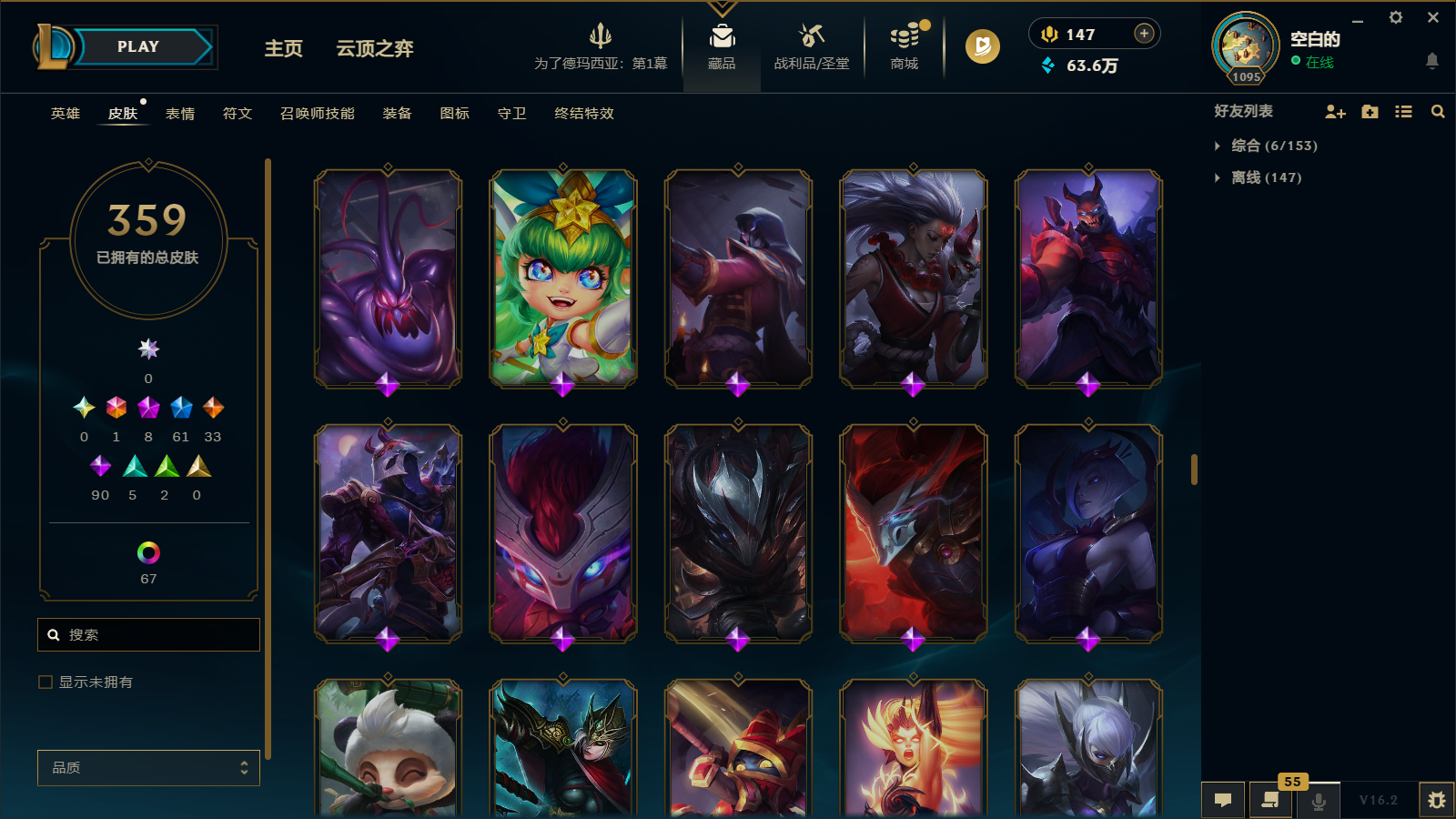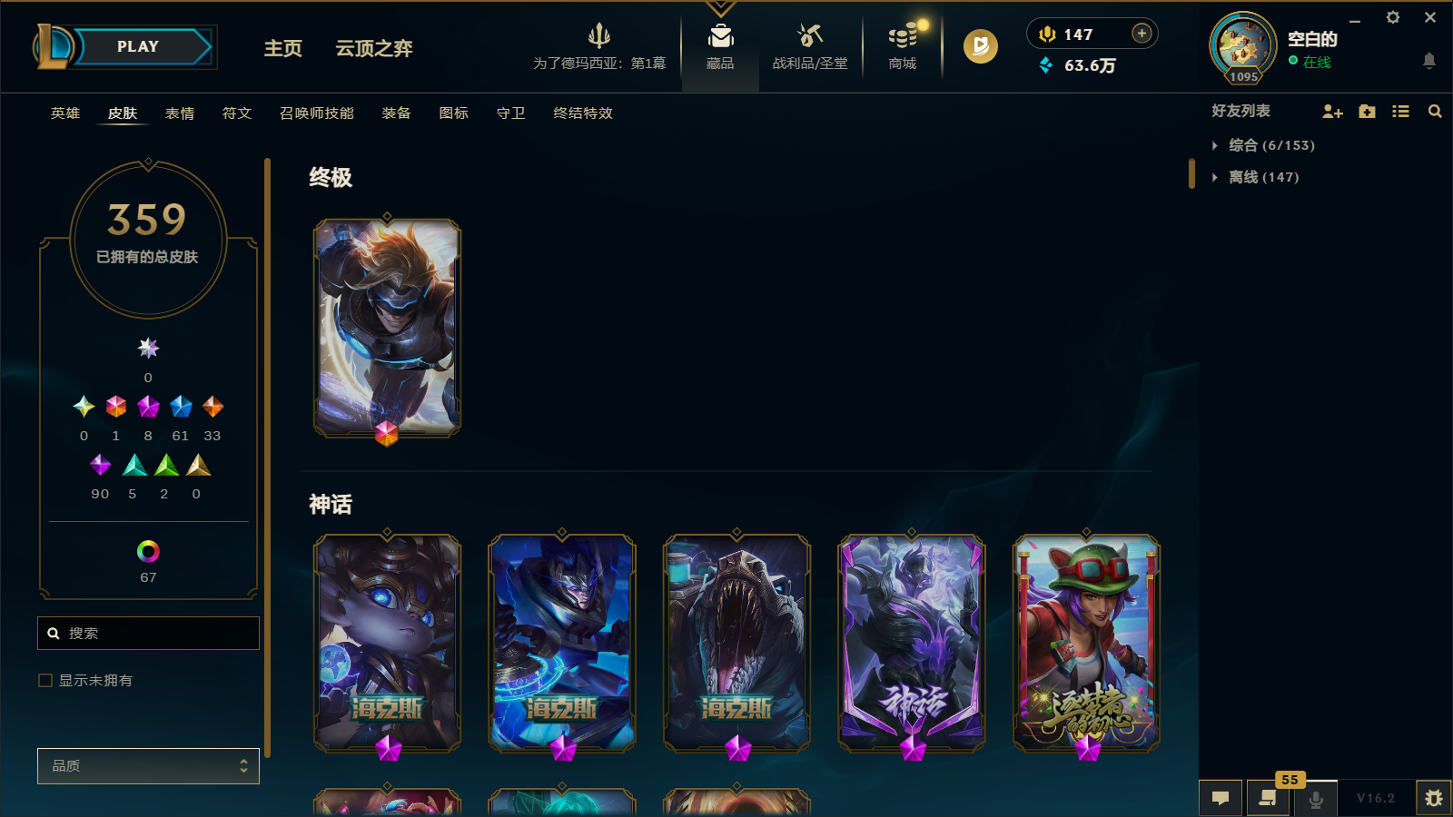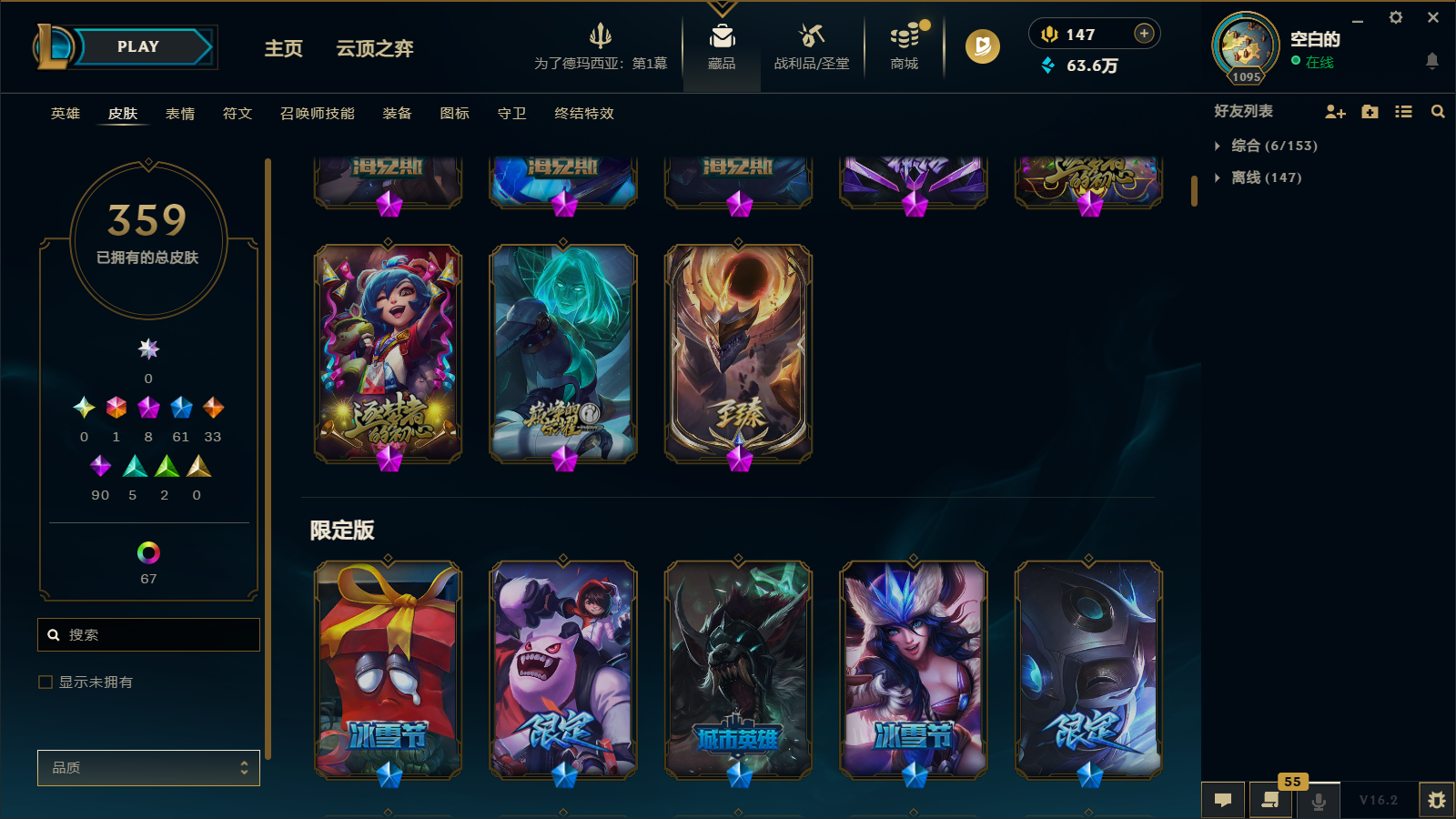 172英雄-359皮肤-【电信】【黑色玫瑰】172英雄-359皮肤-67炫彩-段位:未定级 未来战士 伊泽瑞尔 十五周年纪念 希维尔 十周年纪念 安妮 源代码 乐芙兰 灰烬守护者 慎 海克斯科技 嘉文四世 海克斯科技 雷克顿 海克斯科技 波比 至臻 暗星 墨菲特 泳池派对 塔里克 邪恶圣诞老人 维迦 泳池派对 普朗克 英勇玩具兵 普朗克 胜利剑圣 易 平安夜女神 娑娜 防暴天使 凯尔 胜利凤凰 艾尼维亚 胜利剑圣 易 胡
