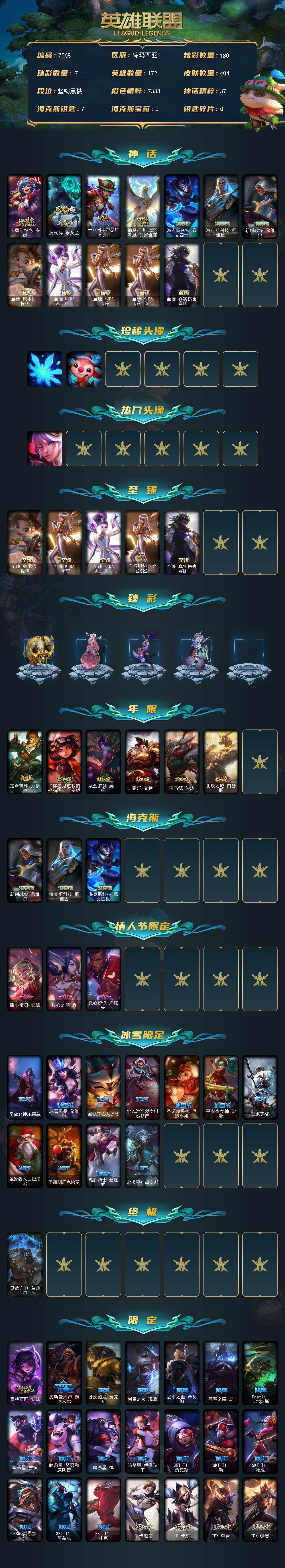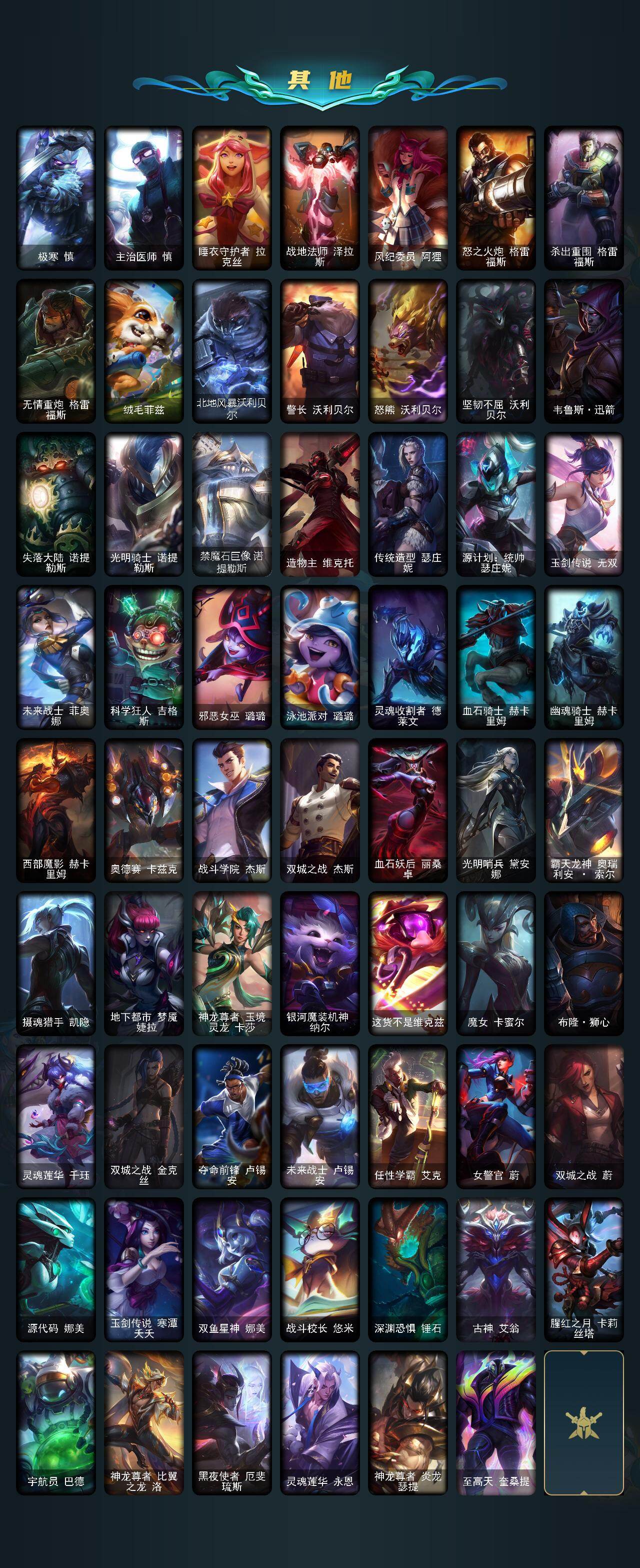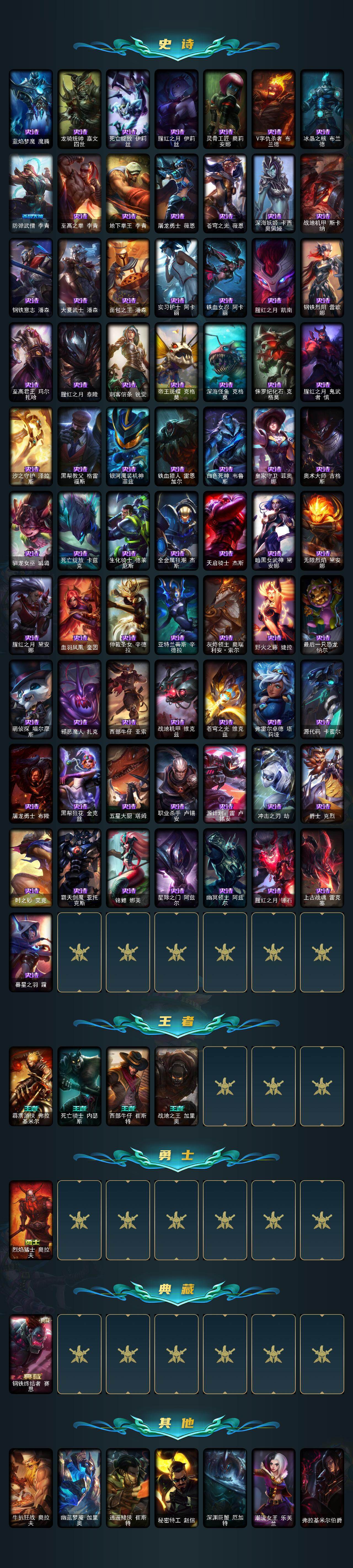 172英雄-404皮肤-172英雄/404皮肤/1终极/12神话/68限定/7臻彩/180炫彩/44传说/99史诗/未定级/十周年纪念 安妮/源代码 乐芙兰/十五周年纪念 希维尔/神凰行者 瑞羽圣凰 艾尼维亚/海克斯科技 嘉文四世/海克斯科技 斯维因/新创战纪 希维尔/至臻 真实伤害 赛娜/至臻 奥术师 佐伊/至臻 k/da all out 卡莎/至臻 k/da 卡莎/至臻 k/da 卡莎 2022/雪花头像/至