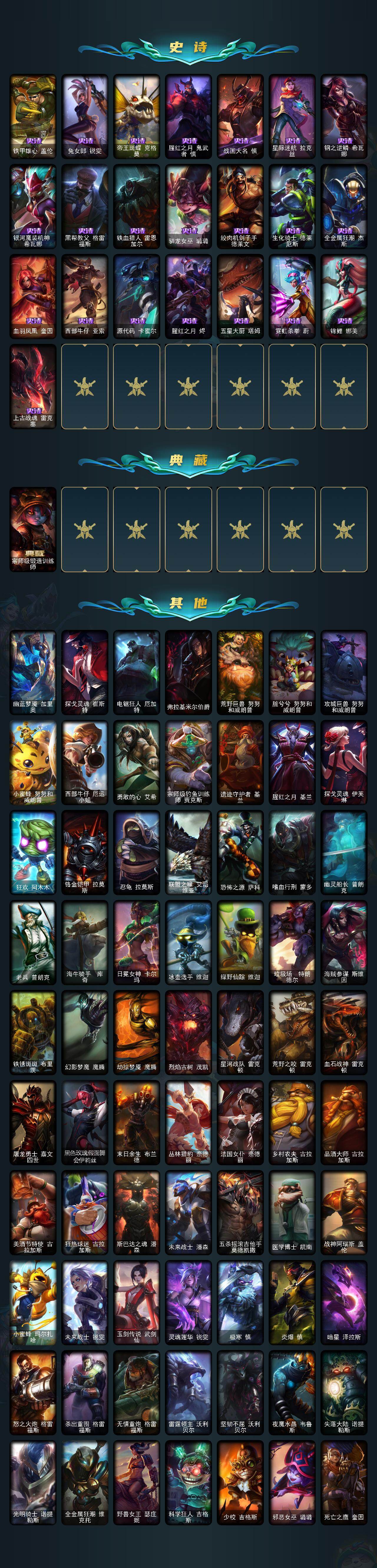 172英雄-174皮肤-172英雄/174皮肤/3神话/32限定/4臻彩/65炫彩/18传说/43史诗/未定级/十周年纪念 安妮/源代码 乐芙兰/十五周年纪念 希维尔/银河魔装机神安妮头像/无畏骑士 瑟庄妮 赤子初心/冠军之刃锐雯2016凯旋圣装/魔女 阿卡丽 虚荣/红莲之刃锐雯/替父从军 花木兰/平安夜女神 娑娜/邪恶圣诞老人维迦/魄罗骑士 瑟庄妮/至死不渝 瑞兹/冠军之刃 锐雯/冠军之刃 锐雯 2016/fnat