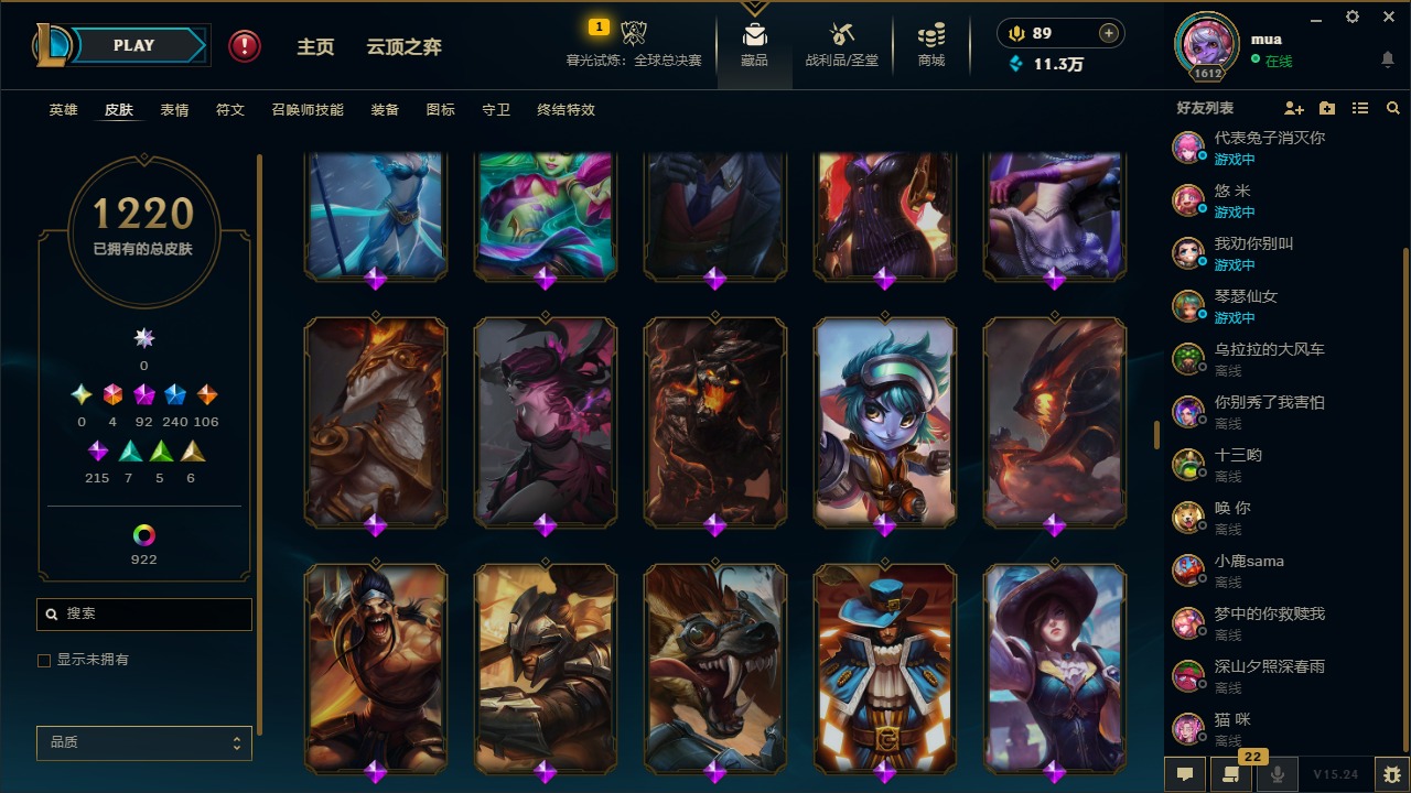 [16427183]4终极 92神话 240限定 106传说 215史诗 1220皮肤 1029炫彩 172英雄 可二次 可修改实名 【至臻】:至臻 腥红之月 亚托克斯2022至臻 未来战士 锤石2022至臻 绒毛 菲兹2022至臻 k/da 伊芙琳2022至臻 drx 亚托克斯至臻 北极星钢影 卡蜜尔至臻 心之钢 永恩至臻 魔女 阿卡丽至臻 魂蔷薇 烈娜塔至臻 玉剑传说 琴仙子至臻 斗魂觉醒 萨科至臻 斗魂觉醒 派克至臻 花仙使者 卡特琳娜至臻 狼神英灵 斯维因至臻 凯旋将军 德莱厄斯至臻 黑色玫瑰假面舞会 卡特琳娜至臻 暗星女王 黛安娜至臻 魔域梦魇 泽丽至臻 t1 杰斯至臻 幻灵狮心 蕾欧娜至臻 至高天 凯尔至臻 西部魔影 伊芙琳至臻 k/da 伊芙琳至臻 k/da 阿卡丽至臻 k/da 卡莎至臻 腥红之月 亚托克斯至臻 绒毛菲兹至臻 电玩女神 凯特琳至臻 k/da 阿狸至臻 玉剑传说 武剑仙至臻 魅惑女巫 厄运小姐至臻 真实伤害 奇亚娜至臻 未来战士 锤石至臻 黑夜使者 李青至臻 真实伤害 赛娜至臻 暗星 墨菲特至臻 魔女 婕拉至臻 未来战士 卢锡安至臻 奥术师 佐伊至臻 索拉卡至臻 真实伤害 亚索至臻 烈焰美人 薇恩至臻 战斗学院 蕾欧娜至臻 太空律动 节奏幻师 璐璐至臻 征服者 贾克斯至臻 神龙尊者 炎龙瑟提至臻 灵能特工 伊泽瑞尔至臻 k/da all out卡莎至臻 女帝 黛安娜至臻 福牛守护者 菲奥娜至臻 源计划:逆流 塞拉斯至臻 黑夜使者 凯隐至臻 魅惑女巫 莫甘娜至臻 神龙尊者均衡之龙 沃利贝尔至臻 焰执事 布兰德至臻 青花瓷 拉克丝至臻 神凰行者 烈羽焰凰 霞至臻 幻灵战斗猫 金克丝至臻 月蚀骑士 赛娜至臻 西部魔影 泰隆至臻 海之歌 萨勒芬妮至臻 星之守护者 辛德拉至臻 海珀利安小队 迦娜至臻 至高天 奎桑提至臻 北极星使者 沃里克至臻 剪纸仙灵 希维尔至臻 青花瓷 丽桑卓至臻 太空律动 魔音海妖 娜美至臻 星之守护者 索拉卡至臻 绝息圣堂 厄运小姐殿堂传奇 乐芙兰水晶掠夺者 卡兹克水晶圣骑 艾希水晶圣骑 蕾欧娜 【海克斯】:海克斯 崔丝塔娜海克斯 吉格斯海克斯 魔腾海克斯 嘉文四世恐惧新