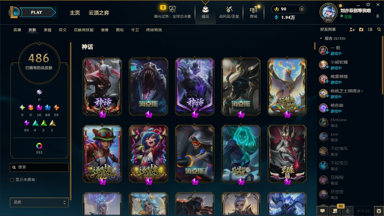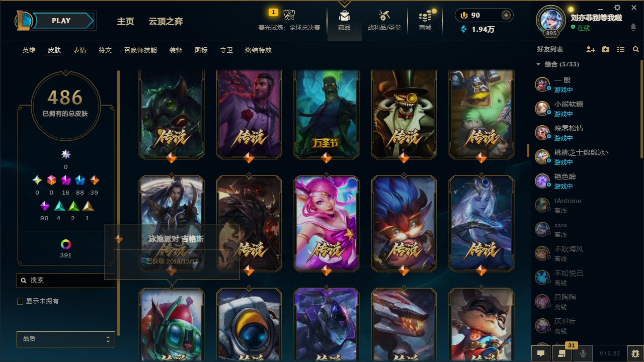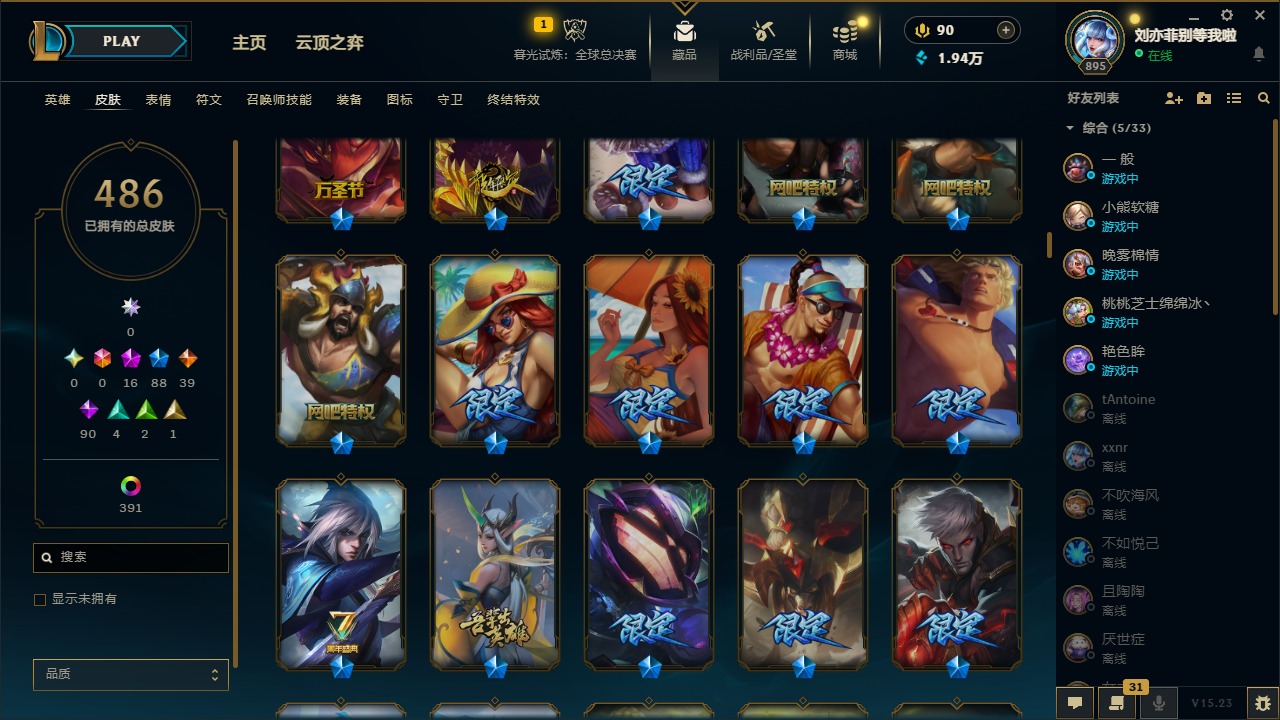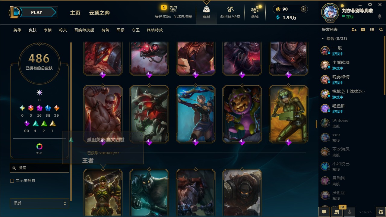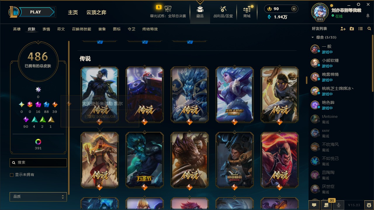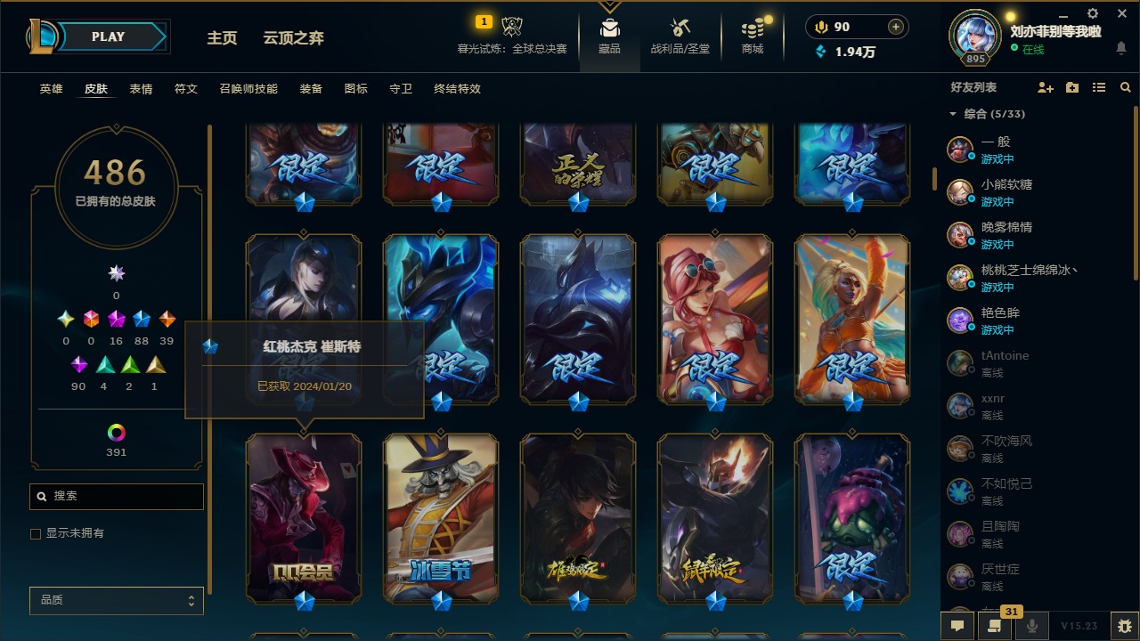 [16427429]16神话 88限定 39传说 90史诗 486皮肤 428炫彩 172英雄 可二次 可修改实名 【至臻】:至臻 天龙之子 伊泽瑞尔至臻 drx 亚托克斯至臻 双城之战2 指挥官 凯特琳至臻 k/da 卡莎至臻 玉剑传说 武剑仙至臻 西部魔影 泰隆至臻 海珀利安小队 迦娜 【海克斯】:海克斯 雷克顿 【限定】:玉剑传说 星仙子双城之战2 幸存者 杰斯双城之战2 指挥官 凯特琳斗魂觉醒 佛耶戈2022 全球总决赛 阿兹尔 【情人节限定】:觅心萝莉 金克丝 【赛季限定皮】:胜利女神-菲奥娜胜利之运 崔斯特胜利剑圣 易胜利女神 娑娜胜利巨口 克格莫胜利之王 泰达米尔胜利之树 茂凯胜利呛神 格雷福斯胜利女神 奥莉安娜胜利之剑 亚托克斯胜利呛神 卢锡安 【冠军限定系列】:s13 t1 李青s1fnc 酒桶s1fnc 迦娜s1fnc 库奇s2 暗杀星 发条s2 暗杀星 蒙多s2 暗杀星 努努s3 skt t1 劫s3 skt t1 李青s4 ssw 雷恩加尔s5 skt t1 阿利斯塔s5 skt t1 阿兹尔s5 skt t1 蜘蛛s7 ssg 嘉文四世s7 ssg 洛s10 dwg 崔斯特s10 dwg 烬 【冰雪节限定】:阿木木:“主人不要我了”冰封王子 蒙多冰雪节 玛尔扎哈持胡萝卜的雪人 易冬季仙境 发条胡桃夹子 萨科魄罗骑士 瑟庄妮圣诞狂欢 基兰圣诞狂欢 努努和威朗普喜庆之树 茂凯雪球也能爆炸!吉格斯狂心冰王 图奇北极星使者 沃里克 【泳池派对】:泳池派对 吉格斯泳池派对 蕾欧娜泳池派对 厄运小姐泳池派对 李青泳池派对 塔里克海之歌 艾希海之歌 奈德丽 【万圣节限定】:伯爵 卡萨丁大魔王 提莫魅惑女巫 奈德丽魅惑女巫 伊莉丝南瓜头 费德提克小恶魔 菲兹 【年限】:点心宝贝 阿木木天龙之子 斯莫德醒狮 克格莫虎痴之拳 蔚春晖神女 拉克丝北辰之威 内瑟斯王国机神青龙 德莱文 【周年】:4周年 锐雯7周年 泰隆10周年 安妮10周年 凤凰 【其他限定/神话皮】:十五周年纪念 希维尔灰烬守护者 慎暗裔英雄 盖伦至臻 暗裔英雄 嘉文四世殿堂传奇 薇恩源代码 乐芙兰防暴天使 凯尔暗影 沃里克都铎王朝 图奇防暴机器人 布里茨防暴