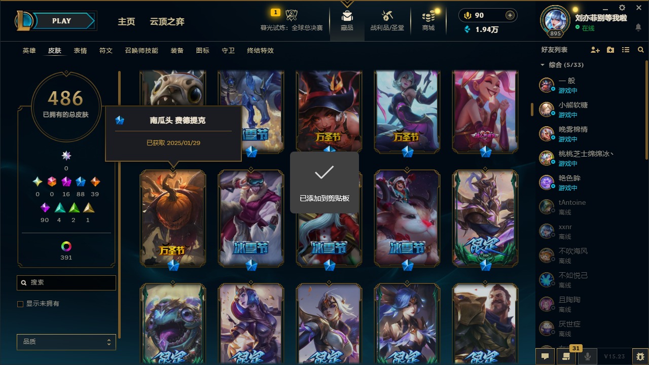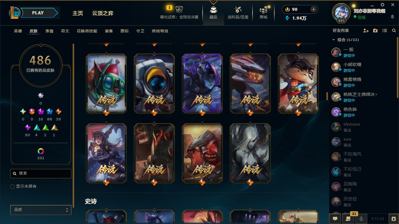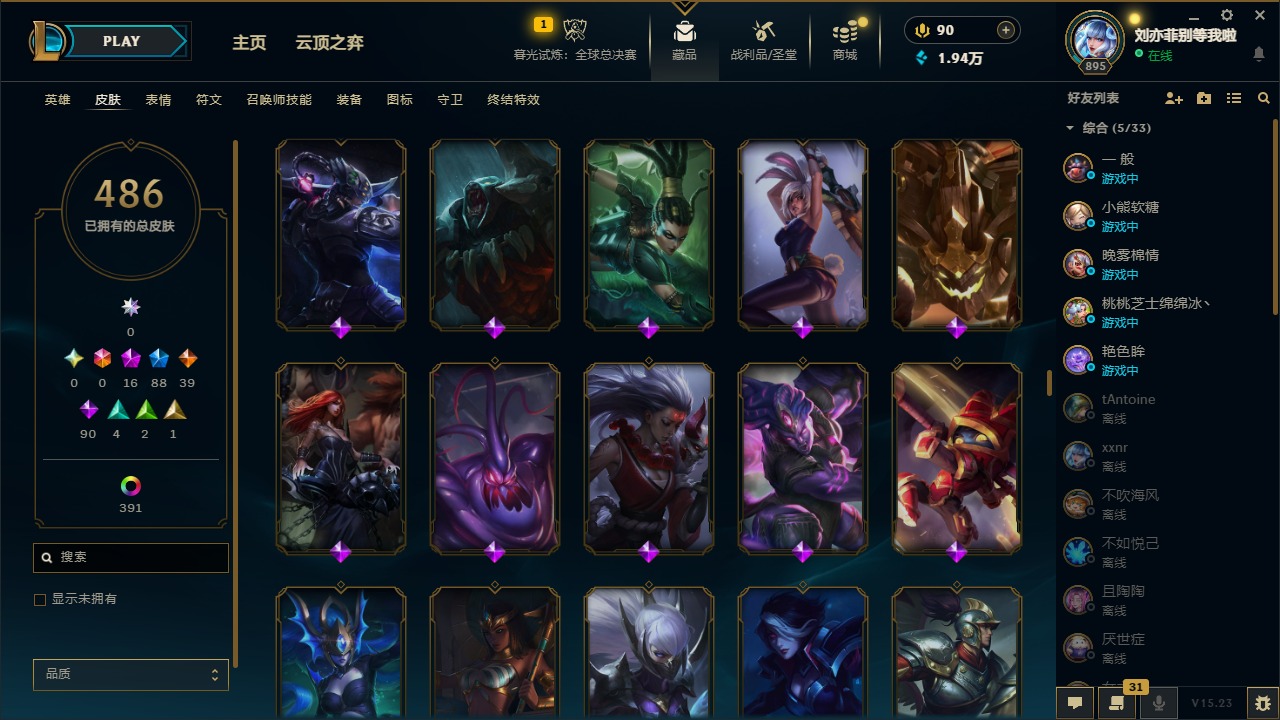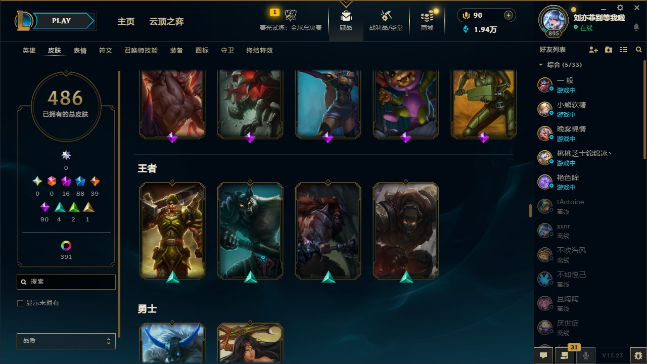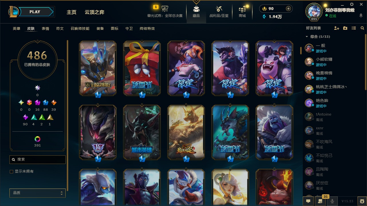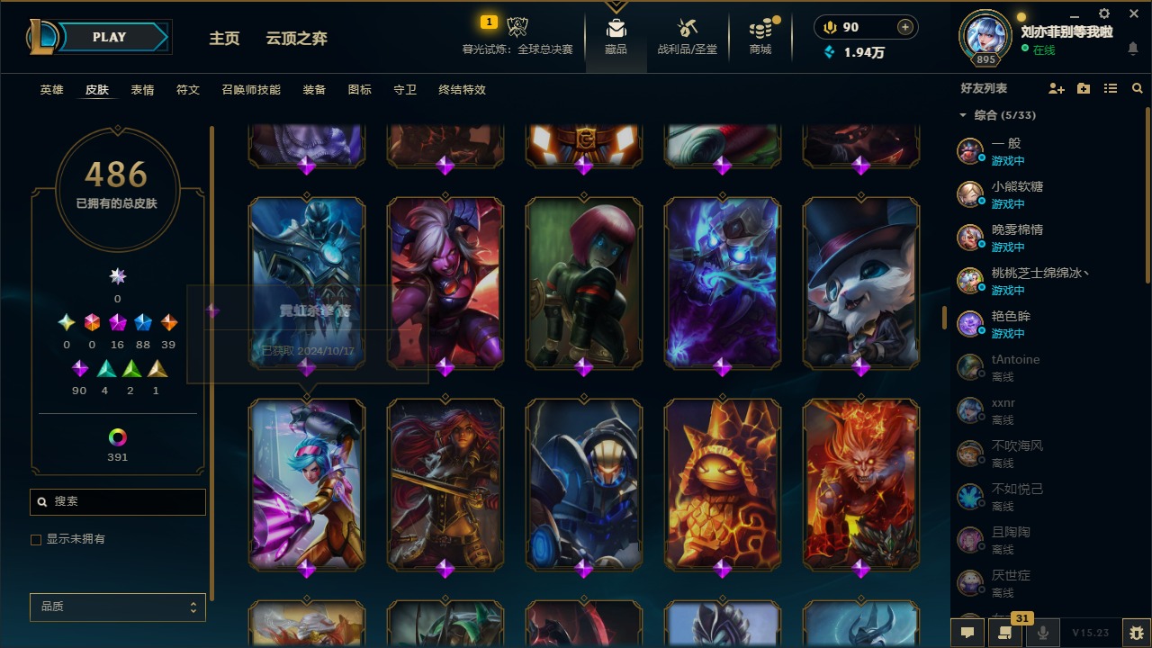 [16427429]16神话 88限定 39传说 90史诗 486皮肤 428炫彩 172英雄 可二次 可修改实名 【至臻】:至臻 天龙之子 伊泽瑞尔至臻 drx 亚托克斯至臻 双城之战2 指挥官 凯特琳至臻 k/da 卡莎至臻 玉剑传说 武剑仙至臻 西部魔影 泰隆至臻 海珀利安小队 迦娜 【海克斯】:海克斯 雷克顿 【限定】:玉剑传说 星仙子双城之战2 幸存者 杰斯双城之战2 指挥官 凯特琳斗魂觉醒 佛耶戈2022 全球总决赛 阿兹尔 【情人节限定】:觅心萝莉 金克丝 【赛季限定皮】:胜利女神-菲奥娜胜利之运 崔斯特胜利剑圣 易胜利女神 娑娜胜利巨口 克格莫胜利之王 泰达米尔胜利之树 茂凯胜利呛神 格雷福斯胜利女神 奥莉安娜胜利之剑 亚托克斯胜利呛神 卢锡安 【冠军限定系列】:s13 t1 李青s1fnc 酒桶s1fnc 迦娜s1fnc 库奇s2 暗杀星 发条s2 暗杀星 蒙多s2 暗杀星 努努s3 skt t1 劫s3 skt t1 李青s4 ssw 雷恩加尔s5 skt t1 阿利斯塔s5 skt t1 阿兹尔s5 skt t1 蜘蛛s7 ssg 嘉文四世s7 ssg 洛s10 dwg 崔斯特s10 dwg 烬 【冰雪节限定】:阿木木:“主人不要我了”冰封王子 蒙多冰雪节 玛尔扎哈持胡萝卜的雪人 易冬季仙境 发条胡桃夹子 萨科魄罗骑士 瑟庄妮圣诞狂欢 基兰圣诞狂欢 努努和威朗普喜庆之树 茂凯雪球也能爆炸!吉格斯狂心冰王 图奇北极星使者 沃里克 【泳池派对】:泳池派对 吉格斯泳池派对 蕾欧娜泳池派对 厄运小姐泳池派对 李青泳池派对 塔里克海之歌 艾希海之歌 奈德丽 【万圣节限定】:伯爵 卡萨丁大魔王 提莫魅惑女巫 奈德丽魅惑女巫 伊莉丝南瓜头 费德提克小恶魔 菲兹 【年限】:点心宝贝 阿木木天龙之子 斯莫德醒狮 克格莫虎痴之拳 蔚春晖神女 拉克丝北辰之威 内瑟斯王国机神青龙 德莱文 【周年】:4周年 锐雯7周年 泰隆10周年 安妮10周年 凤凰 【其他限定/神话皮】:十五周年纪念 希维尔灰烬守护者 慎暗裔英雄 盖伦至臻 暗裔英雄 嘉文四世殿堂传奇 薇恩源代码 乐芙兰防暴天使 凯尔暗影 沃里克都铎王朝 图奇防暴机器人 布里茨防暴