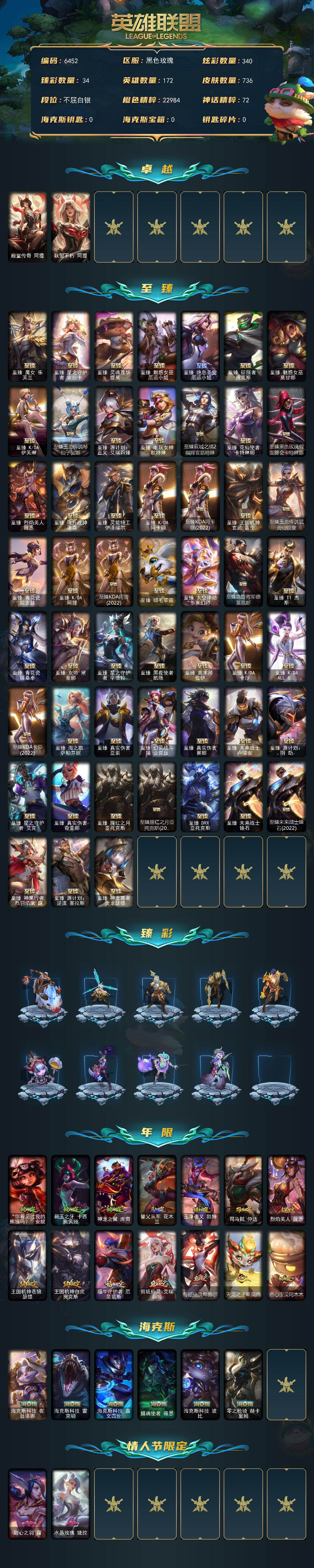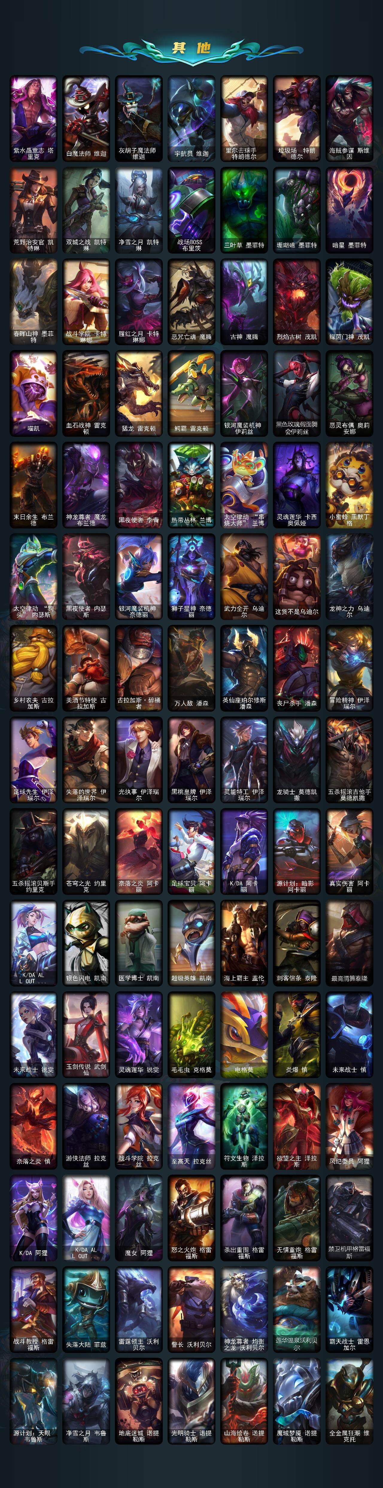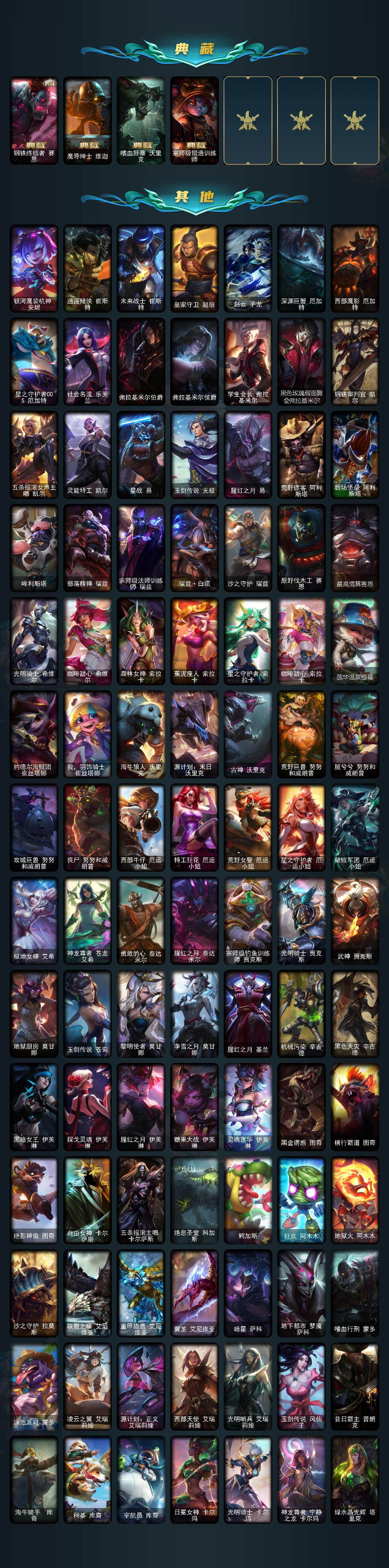 172英雄-736皮肤-172英雄/736皮肤/7终极/67神话/137限定/34臻彩/340炫彩/89传说/126史诗/白银/十周年纪念 安妮/殿堂传奇 乐芙兰/十五周年纪念 希维尔/神凰行者 瑞羽圣凰 艾尼维亚/灰烬骑士 莫德凯撒/灰烬守护者 慎/创世黑夜使者亚索/水晶圣骑 塔莉垭/灰烬骑士 派克/海克斯科技 波比/海克斯科技 崔丝塔娜/海克斯科技 嘉文四世/海克斯科技 雷克顿/零之呛骑 赫卡里姆/摄魂使者 薇恩
