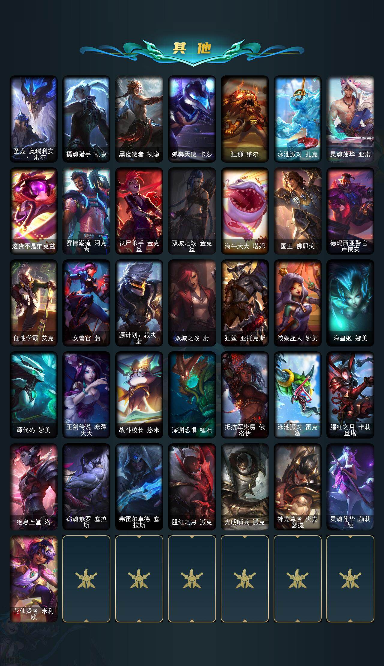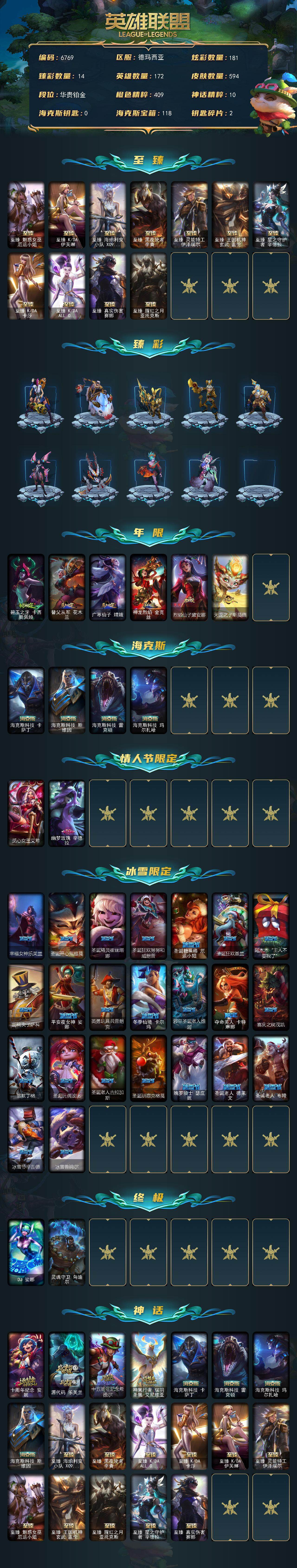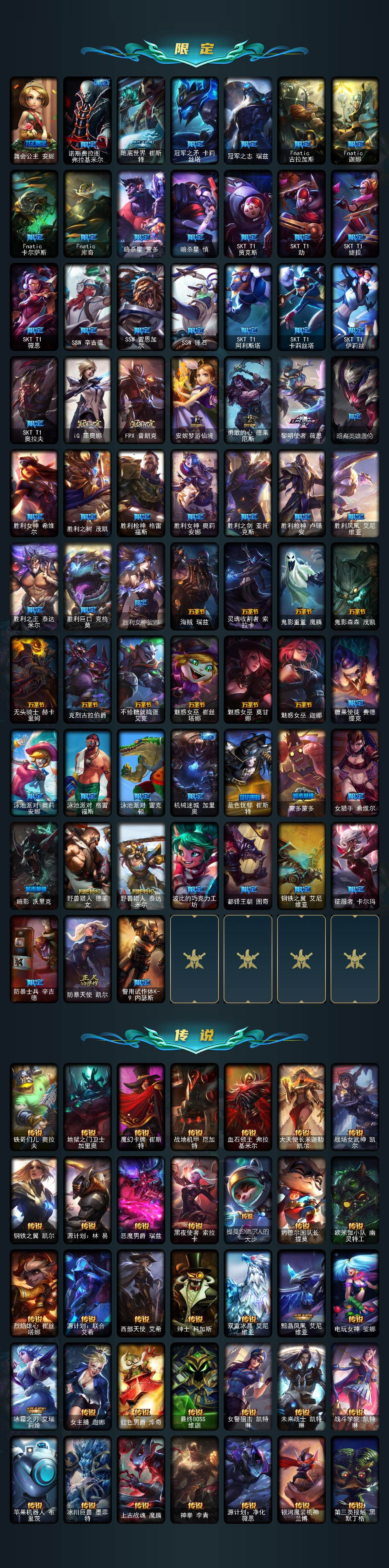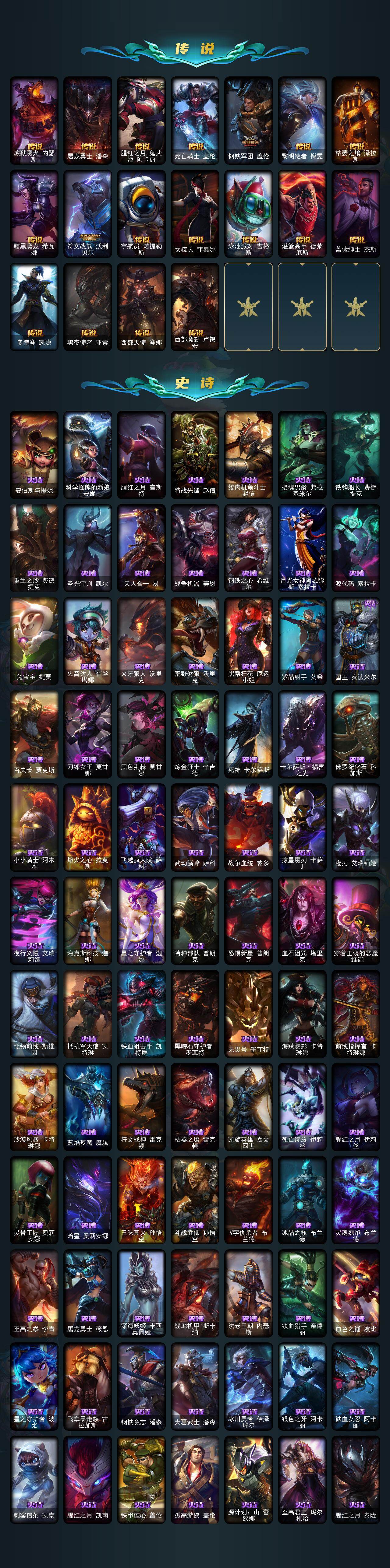 172英雄-594皮肤-172英雄/594皮肤/2终极/19神话/97限定/14臻彩/181炫彩/53传说/149史诗/铂金/十周年纪念 安妮/源代码 乐芙兰/十五周年纪念 希维尔/神凰行者 瑞羽圣凰 艾尼维亚/海克斯科技 卡萨丁/海克斯科技 雷克顿/海克斯科技 玛尔扎哈/海克斯科技 斯维因/至臻 真实伤害 赛娜/至臻 海珀利安小队 x09-星环灵风 迦娜/至臻 黑夜使者 李青/至臻 k/da all out 卡莎/