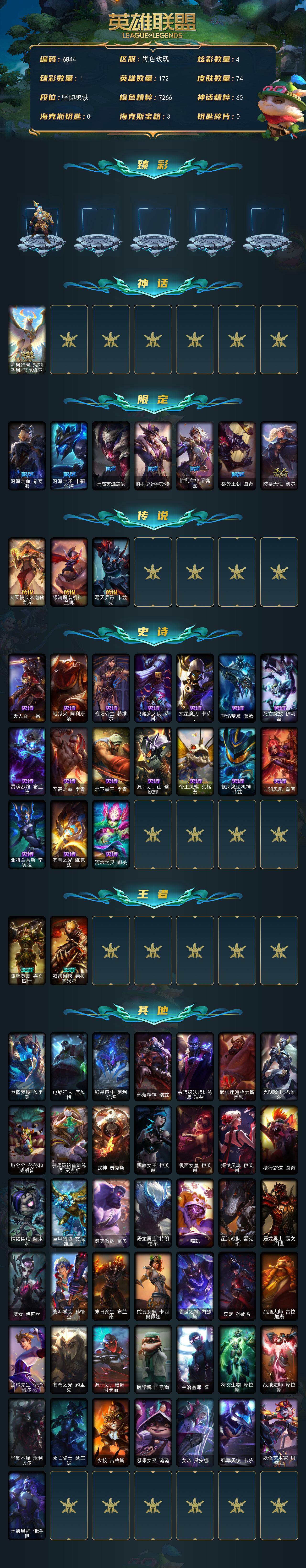 172英雄-74皮肤-172英雄/74皮肤/1神话/7限定/1臻彩/4炫彩/3传说/17史诗/未定级/神凰行者 瑞羽圣凰 艾尼维亚/冠军之志 瑞兹 凯旋圣装/冠军之血 希瓦娜/冠军之矛 卡莉丝塔/暗裔英雄盖伦/胜利之运崔斯特/胜利女神菲奥娜/都铎王朝 图奇/防暴天使 凯尔/大天使长米迦勒 凯尔/银河魔装机神 兰博/霸天异形 卡兹克/天人合一 易/地狱火 阿利斯塔/战场公主 希维尔/飞越疯人院 萨科/掠星魔刃 卡萨丁
