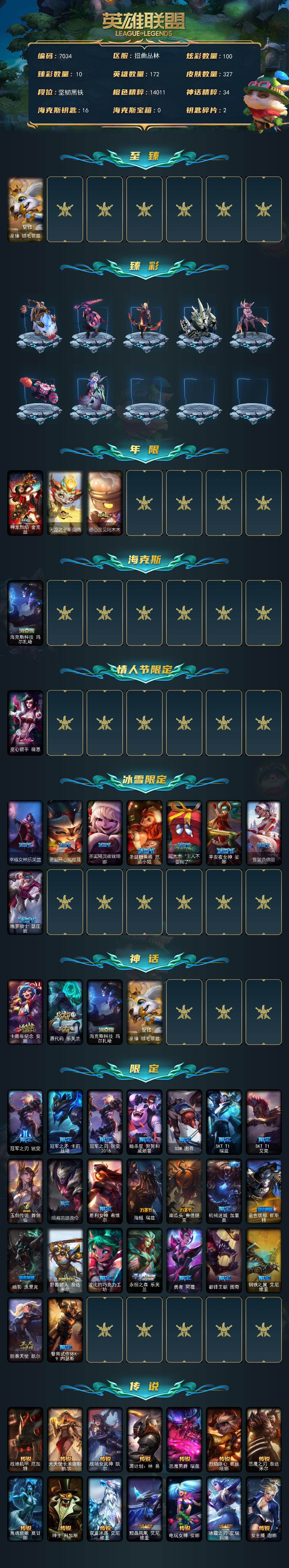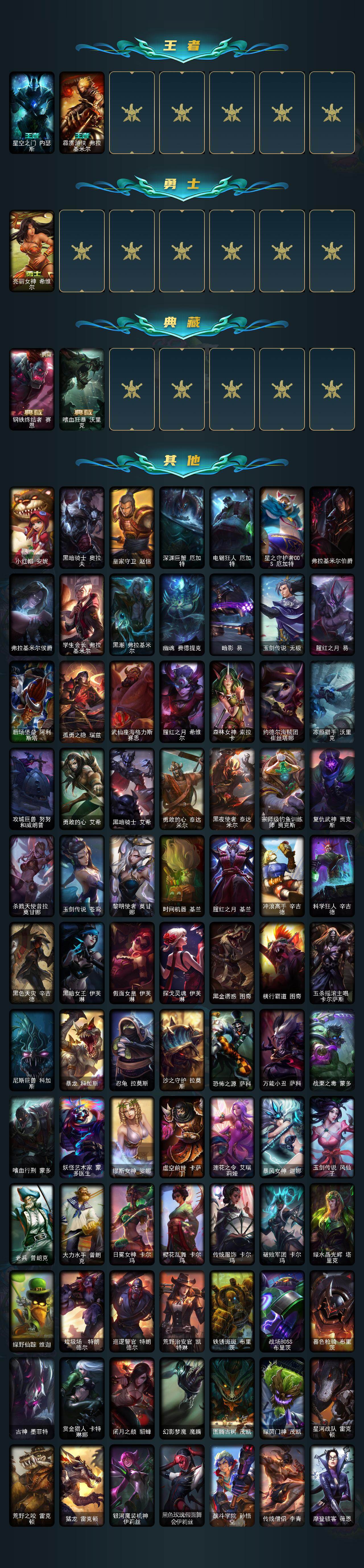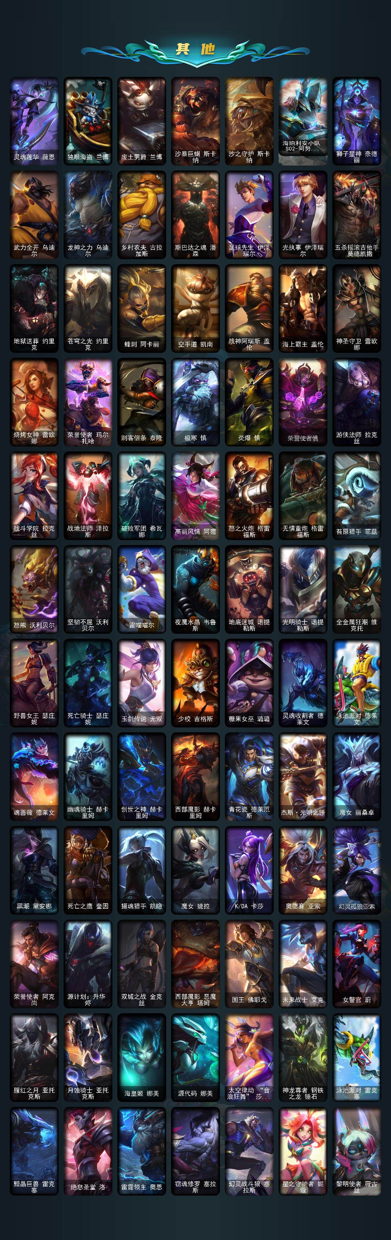 172英雄-327皮肤-172英雄/327皮肤/4神话/35限定/10臻彩/100炫彩/32传说/82史诗/未定级/十周年纪念 安妮/源代码 乐芙兰/海克斯科技 玛尔扎哈/至臻 绒毛菲兹/天龙之子卡莎飞龙乘云/无畏骑士 瑟庄妮 赤子初心/源计划:毁灭 派克 幻灭/源计划:联合 艾希 红莲之弓/霸天巨兽·雪崩 墨菲特/破败军团 厄运小姐 灵岛征伐使/可爱可爱粉红红 布里茨/魔女 阿卡丽 虚荣/净雪之月 莫甘娜 冬虹/这
