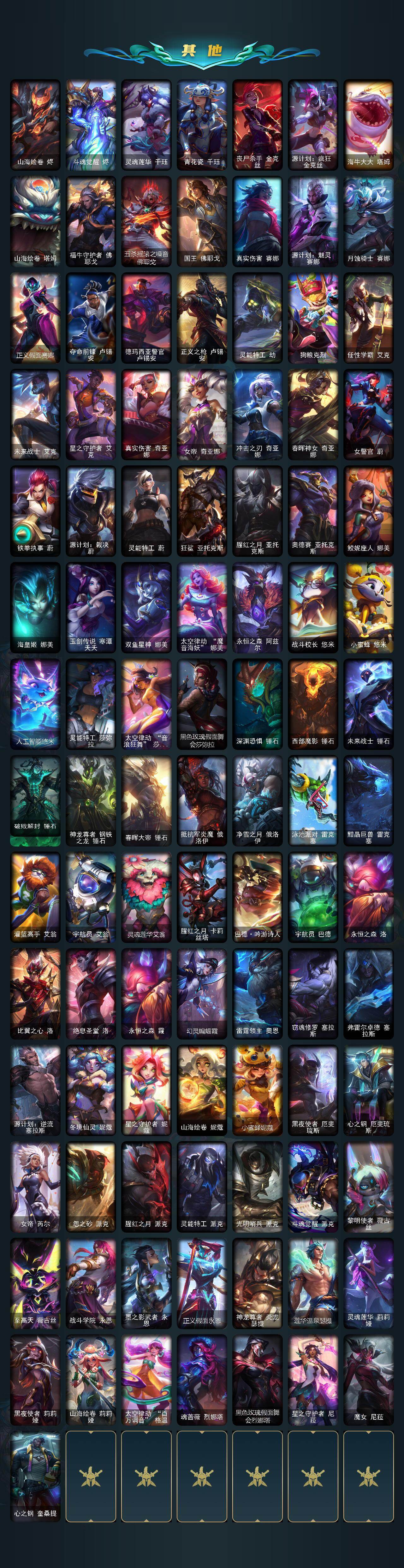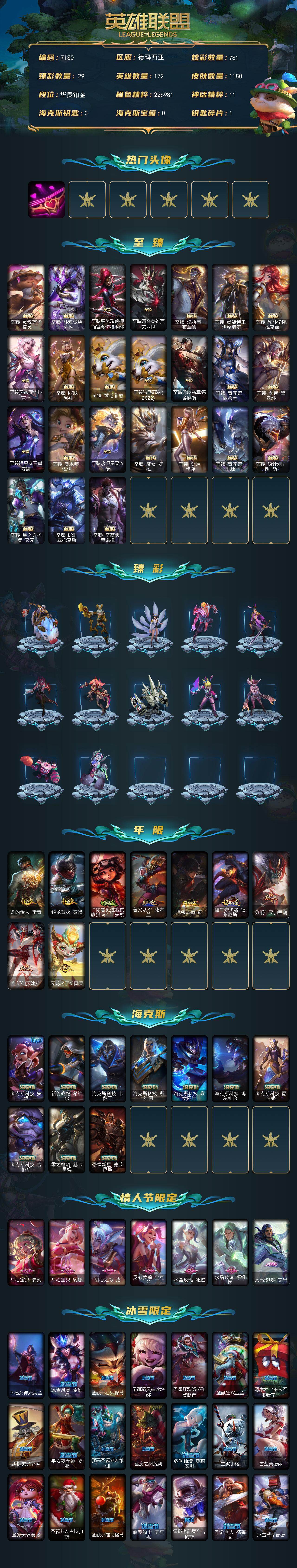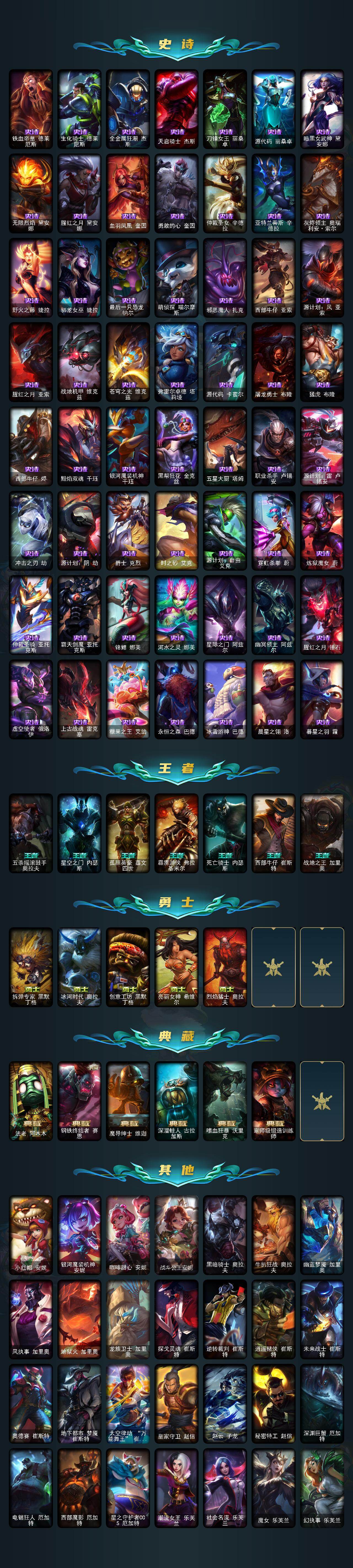 172英雄-1180皮肤-172英雄/1180皮肤/2终极/40神话/145限定/29臻彩/781炫彩/111传说/210史诗/铂金/十周年纪念 安妮/源代码 乐芙兰/殿堂传奇 乐芙兰/十五周年纪念 希维尔/神凰行者 瑞羽圣凰 艾尼维亚/殿堂传奇薇恩/海克斯科技 安妮/海克斯科技 嘉文四世/海克斯科技 吉格斯/海克斯科技 卡萨丁/海克斯科技 玛尔扎哈/海克斯科技 瑟庄妮/海克斯科技 斯维因/恐惧新星 德莱厄斯/零之呛骑