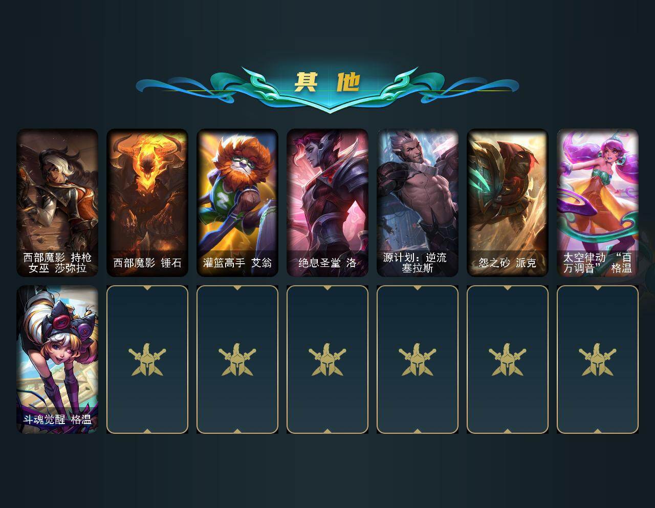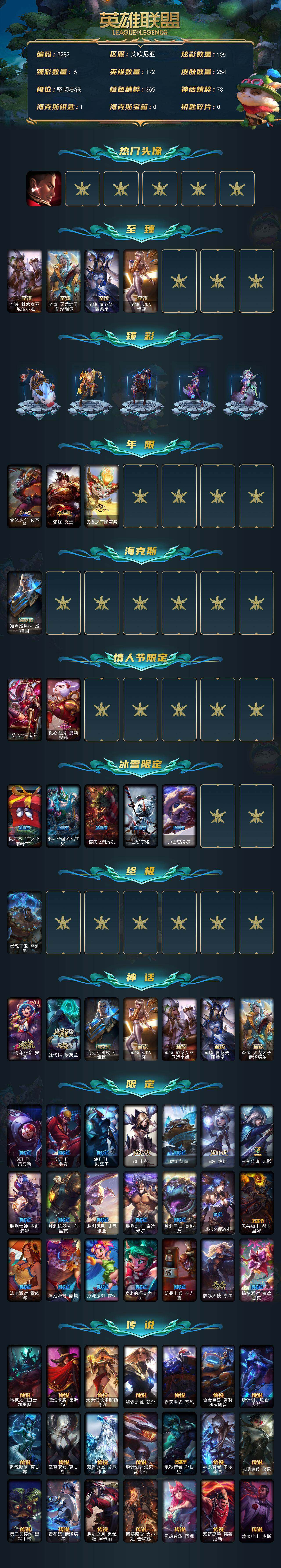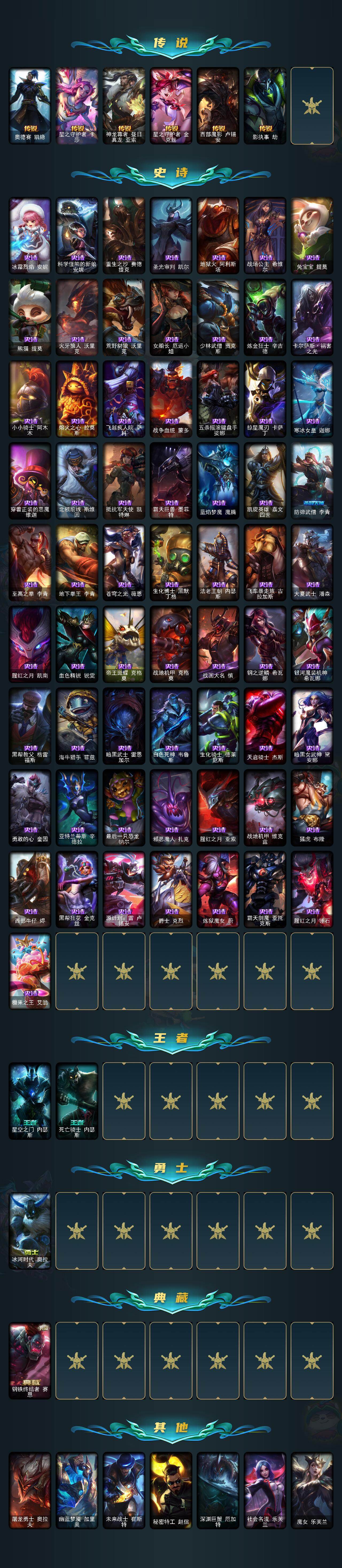 172英雄-254皮肤-172英雄/254皮肤/1终极/7神话/31限定/6臻彩/105炫彩/27传说/64史诗/未定级/十周年纪念 安妮/源代码 乐芙兰/海克斯科技 斯维因/至臻 天龙之子 伊泽瑞尔/至臻 k/da 卡莎/至臻 魅惑女巫 厄运小姐/至臻 青花瓷 丽桑卓/觅心游侠卢锡安头像/无畏骑士 瑟庄妮 赤子初心/神龙尊者 圣龙李青 龙腾云起/玉剑传说 无劫 胭脂/星之守护者 金克丝 黑洞/魔女 阿卡丽 虚荣/净