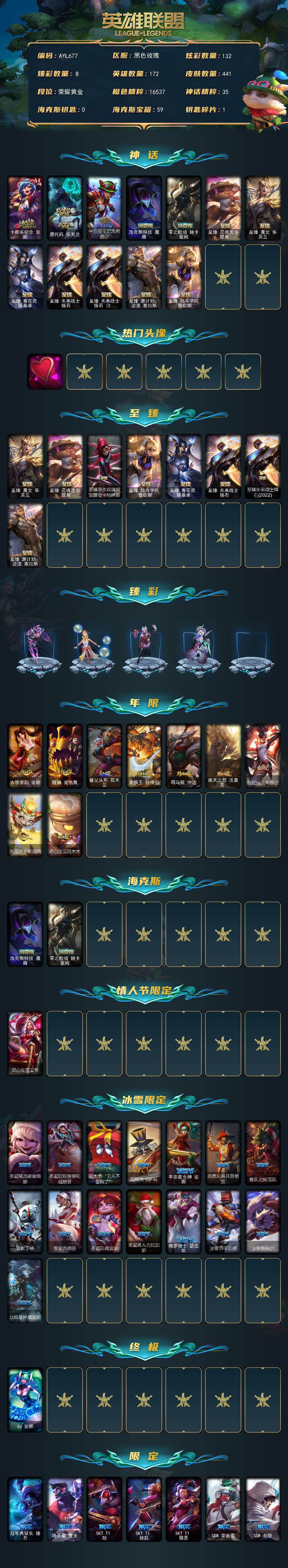 【店主推荐捡漏号】黄金段位-172英雄-441皮肤-132炫彩-1终极-13神话-71限定-44传说-108史诗 【神话皮肤】:十周年纪念安妮,源代码乐芙兰,十五周年纪念希维尔,海克斯科技魔腾,零之呛骑赫卡里姆,至臻灵魂莲华提莫,至臻魔女乐芙兰,至臻青花瓷丽桑卓,至臻未来战士锤石,至臻未来战士锤石2022,至臻源计划逆流塞拉斯,至臻战斗学院蕾欧娜 【热门头像】:爱意绵绵头像 【至臻皮肤】:至臻魔女乐芙兰,至臻灵魂莲华提莫,至臻黑色玫瑰假面舞会卡特琳娜,至臻战斗学院蕾欧娜,至臻青花瓷丽桑卓,至臻未来战士锤石,至臻未来战士锤石2022,至臻源计划逆流塞拉斯 【臻彩皮肤】:天龙之子卡莎飞龙乘云,墨之影武者亚索金墨耀影,幻灵白鸽萨勒芬妮梦幻强袭,天煞劫恒星游历者,泳池派对辛德拉荔枝枝连击,星之守护者卡莎热情之光,魔女阿卡丽虚荣,净雪之月莫甘娜冬虹 【年限皮肤】:古琴余韵娑娜,醒狮克格莫,替父从军花木兰,美猴王孙悟空,司马懿仲达,南天之怒沃里克,剪纸仙灵希维尔,天龙之子斯莫德,点心宝贝阿木木 【海克斯皮肤】:海克斯科技魔腾,零之呛骑赫卡里姆 【情人节限定】:觅心女王艾希 【冰雪限定】:圣诞精灵崔丝塔娜,圣诞狂欢努努和威朗普,阿木木“主人不要我了”,胡桃夹子萨科,平安夜女神娑娜,英勇玩具兵普朗克,喜庆之树茂凯,雪默丁格,雪装奈德丽,圣诞玩偶波比,圣诞老人古拉加斯,魄罗骑士瑟庄妮,冰雪节辛吉德,冰雪兽纳尔,北极星神黛安娜 【终极皮肤】:dj娑娜 【限定皮肤】:冠军典狱长锤石,暗杀星蒙多,sktt1劫,sktt1婕拉,sktt1薇恩,ssw辛吉德,ssw泰隆,sktt1瑞兹,ssg纳尔,ssg霞,edg悠米,drx茂凯,电玩勇者锐雯,电玩女神阿狸,玉剑传说舞剑仙,神凰行者烈羽焰凰霞,暗裔英雄盖伦,胜利呛神格雷福斯,胜利女神奥莉安娜,胜利之剑亚托克斯,胜利呛神卢锡安,胜利机器人布里茨,胜利女神瑟庄妮,胜利之王泰达米尔,胜利巨口克格莫,胜利女神娑娜,胜利剑圣易,胜利之运崔斯特,泳池派对佐伊,女猎手希维尔,暗影沃里克,野兽猎人德莱文,野兽猎人瑟庄妮,野兽猎人泰达米尔,波比的巧克力工坊,勇者阿狸,电玩战魂赫卡里姆,都铎王朝图奇,御星魔矢艾希,钢铁之翼艾尼维亚,防暴机器人布里茨,防暴士兵辛吉德,防暴天使凯尔,海之歌奈德丽,海之歌永恩,双城之战2微光实验室辛吉德 【传说皮肤】:地狱之门卫士加里奥,魔幻卡牌崔斯特,战地机甲厄加特,邪鸦魅影乐芙兰,血石领主弗拉基米尔,大天使长米迦勒凯尔,战场女武神凯尔,恶魔男爵瑞兹,日蚀骑士希维尔,约德尔国队长提莫,烈焰雄心崔丝塔娜,驯龙炮手崔丝塔娜,合金巨兽努努和威朗普,绅士科加斯,战地巨兽科加斯,双重冰晶艾尼维亚,黯晶凤凰艾尼维亚,律政大亨蒙多,电玩女神娑娜,冰霜之刃艾瑞莉娅,最终boss维迦,女警狙击凯特琳,未来战士凯特琳,上古战魂魔腾,光明哨兵薇恩,银河魔装机神兰博,第三类接触黑默丁格,炼狱魔犬内瑟斯,屠龙勇士潘森,战斗学院伊泽瑞尔,腥红之月鬼武姬阿卡丽,死亡骑士盖伦,西部魔影大小姐蕾欧娜,枯萎之壤泽拉斯,焰尾妖狐阿狸,符文战熊沃利贝尔,苍穹之光韦鲁斯,宇航员诺提勒斯,女校长菲奥娜,神王德莱厄斯,星之守护者金克丝,天煞劫,真实伤害艾克,星之守护者霞 【史诗皮肤】:冰霜烈焰安妮,科学怪熊的新娘安妮,皇家火呛手崔斯特,特战先锋赵信,翼骑统领赵信,屠龙勇士赵信,铁钩船长费德提克,侍魂易,铁血剑豪易,地狱火阿利斯塔,战争机器赛恩,战场公主希维尔,钢铁之心希维尔,月光女神阿忒弥斯索拉卡,圣洁化身索拉卡,熊猫提莫,火箭达人崔丝塔娜,法国皇室厄运小姐,黑帮狂花厄运小姐,紫晶射手艾希,百夫长贾克斯,少林武僧贾克斯,死神卡尔萨斯,卡尔萨斯祸害之光,殇之机器人阿木木,熔火之心拉莫斯,武动巅峰萨科,夜刃艾瑞莉娅,海克斯科技迦娜,特种部队普朗克,恐惧新星普朗克,血石诅咒塔里克,穿着正装的恶魔维迦,绝代智将斯维因,驯龙大师斯维因,抵抗军天使凯特琳,铁血狙击手凯特琳,黑曜石守护者墨菲特,无畏号墨菲特,前线指挥官卡特琳娜,源计划雄心卡特琳娜,蓝焰梦魔魔腾,符文战神雷克顿,龙骑统帅嘉文四世,暗星嘉文四世,死亡绽放伊莉丝,腥红之月伊莉丝,灵骨工匠奥莉安娜,暗星奥莉安娜,斗战胜佛孙悟空,v字仇杀者布兰德,灵魂烈焰布兰德,防弹武僧李青,至高之拳李青,屠龙勇士薇恩,苍穹之光薇恩,深海妖姬卡西奥佩娅,战地机甲斯卡纳,法老王朝内瑟斯,艳后奈德丽,四神之力乌迪尔,钢铁意志潘森,面包之王潘森,实习护士阿卡丽,铁血女忍阿卡丽,腥红之月凯南,孤高游侠盖伦,钢铁烈阳蕾欧娜,至高君王玛尔扎哈,刺客信条锐雯,血色精锐锐雯,帝王斑蝶克格莫,深海怪鱼克格莫,侏罗纪化石克格莫,腥红之月鬼武者慎,odst地狱伞兵拉克丝,星际迷航拉克丝,钢之逆鳞希瓦娜,黑帮教父格雷福斯,银河魔装机神菲兹,皇家守卫菲奥娜,奥术大师吉格斯,驯龙女巫璐璐,绞肉机刽子手德莱文,永恒之森赫卡里姆,生化骑士德莱厄斯,天启骑士杰斯,暗黑女武神黛安娜,无限烈焰黛安娜,血羽凤凰奎因,野火之藤婕拉,最后一只恐龙纳尔,邪恶魔人扎克,源计划风亚索,腥红之月亚索,弗雷尔卓德塔莉垭,源代码卡蜜尔,屠龙勇士布隆,黯焰双魂千珏,黑帮狂花金克丝,职业杀手卢锡安,时之砂艾克,源计划自由艾克,霓虹杀拳蔚,星际之门阿兹尔,虚空使者俄洛伊,上古战魂雷克塞,永恒之森巴德 【王者皮肤】:五杀摇滚鼓手奥拉夫,