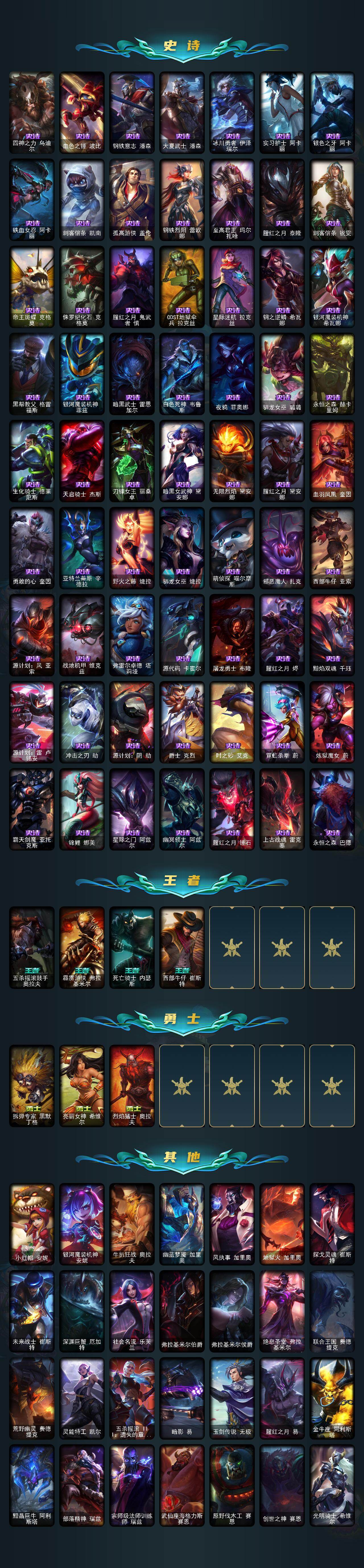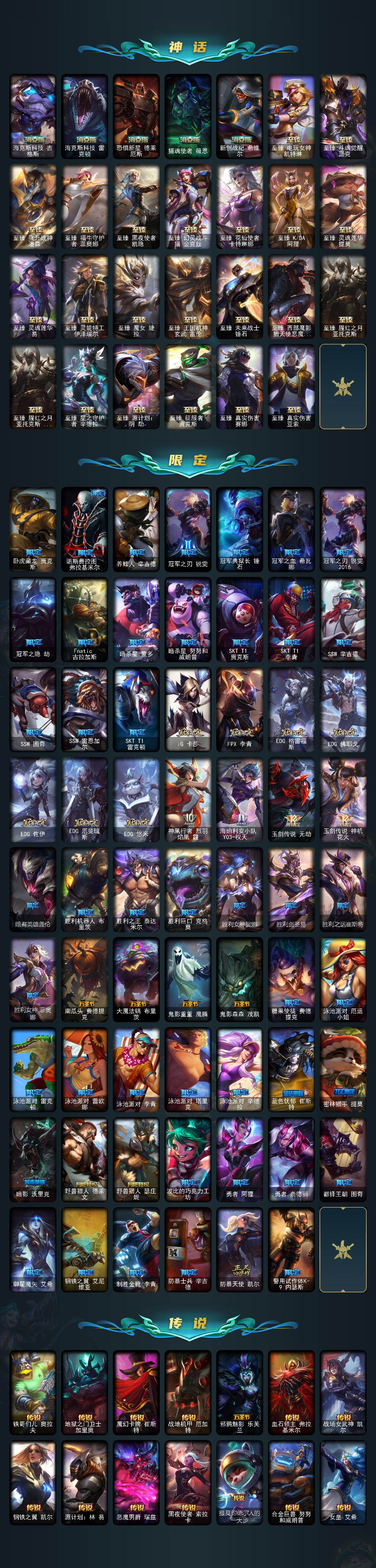【lolx1349】172英雄/542皮肤/1终极/35神话/92限定/11臻彩/311炫彩/63传说/119史诗/黄金/十周年纪念安妮/源代码乐芙兰/神凰行者瑞羽圣凰艾尼维亚/灰烬征服者潘森/灰烬骑士派克/海克斯科技阿利斯塔/海克斯科技波比/海克斯科技吉格斯/海克斯科技雷克顿/恐惧新星德莱厄斯/摄魂使者薇恩/新创战纪希维尔/至臻征服者贾克斯/至臻真实伤害赛娜/至臻真实伤害亚索/至臻电玩女神凯特琳/至臻斗魂觉醒派克/至臻飞升战神潘森/至臻福牛守护者菲奥娜/至臻黑夜使者凯隐/至臻幻灵战斗猫金克丝/至臻花仙使者卡特琳娜/至臻kda阿狸/至臻灵魂莲华提莫/至臻灵魂莲华易/至臻灵能特工伊泽瑞尔/至臻魔女婕拉/至臻王国机神玄武盖伦/至臻未来战士锤石/至臻西部魔影猎天使恶魔泰隆/至臻腥红之月亚托克斯/至臻腥红之月亚托克斯2022/至臻星之守护者辛德拉/至臻源计划阴劫/至臻灵魂莲华拉克丝/至臻腥红之月亚托克斯2022/无畏骑士瑟庄妮赤子初心/吕布奉先炫金战神/冠军之隐劫凯旋圣装/神龙尊者圣龙李青龙腾云起/弹幕天使卡莎炽天使勇敢/西部天使赛娜贝利尔之怠/醒狮克格莫/碧玉之牙卡西奥佩娅/替父从军花木兰/美猴王孙悟空/紫金罗刹莫甘娜/玉净夜叉凯特琳/司马懿仲达/南天之怒沃里克/北辰之威内瑟斯/王国机神朱雀蕾欧娜/王国机神白虎贾克斯/龙腾虎跃瑟提/觅心之翼奎因/水晶玫瑰阿克尚/幸福女神乐芙兰/圣诞精灵崔丝塔娜/圣诞狂欢努努和威朗普/圣诞狂欢基兰/阿木木“主人不要我了”/胡桃夹子萨科/平安夜女神娑娜/冬季仙境卡尔玛/邪恶圣诞老人维迦/夺命美人卡特琳娜/喜庆之树茂凯/冰雪驯鹿波比/圣诞老人古拉加斯/魄罗骑士瑟庄妮/圣诞老人德莱文/冰雪女神辛德拉/dj娑娜/卧虎藏龙贾克斯/诺斯费拉图弗拉基米尔/养蜂人辛吉德/冠军之刃锐雯/冠军典狱长锤石/冠军之血希瓦娜/冠军之刃锐雯2016/冠军之隐劫/fnatic古拉加斯/暗杀星蒙多/暗杀星努努和威朗普/sktt1贾克斯/sktt1李青/ssw辛吉德/ssw图奇/ssw雷恩加尔/sktt1雷克顿/ig卡莎/f李青/edg格雷福斯/edg佛耶戈/edg佐伊/edg厄斐琉斯/edg悠米/神凰行者烈羽焰凰霞/海珀利安小队y03权天使卡蜜尔/玉剑传说无劫/玉剑传说神机花火/暗裔英雄盖伦/胜利机器人布里茨/胜利之王泰达米尔/胜利巨口克格莫/胜利女神娑娜/胜利剑圣易/胜利之运崔斯特/胜利女神菲奥娜/南瓜头费德提克/大魔法锅布里茨/鬼影重重魔腾/鬼影森森茂凯/糖果使徒费德提克/泳池派对厄运小姐/泳池派对雷克顿/泳池派对蕾欧娜/泳池派对李青/泳池派对塔里克/泳池派对辛德拉/蓝色忧郁崔斯特/密林猎手提莫/暗影沃里克/野兽猎人德莱文/野兽猎人瑟庄妮/波比的巧克力工坊/勇者阿狸/勇者奈德丽/都铎王朝图奇/御星魔矢艾希/钢铁之翼艾尼维亚/制胜金靴李青/防暴士兵辛吉德/防暴天使凯尔/警用试作体k9内瑟斯/铁哥们儿奥拉夫/地狱之门卫士加里奥/魔幻卡牌崔斯特/战地机甲厄加特/邪鸦魅影乐芙兰/血石领主弗拉基米尔/战场女武神凯尔/钢铁之翼凯尔/源计划林易/恶魔男爵瑞兹/黑夜使者索拉卡/提莫约德尔人的一大步/合金巨兽努努和威朗普/女皇艾希/源计划联合艾希/西部天使艾希/鬼魂新娘莫甘娜/绅士科加斯/双重冰晶艾尼维亚/黯晶凤凰艾尼维亚/电玩女神娑娜/冰霜之刃艾瑞莉娅/最终boss维迦/未来战士凯特琳/陆地王者4wd布里茨/苹果机器人布里茨/上古战魂魔腾/源计划泯灭雷克顿/神拳李青/神龙尊者圣龙李青/光明哨兵薇恩/银河魔装机神兰博/第三类接触黑默丁格/战斗学院伊泽瑞尔/源计划超体莫德凯撒/腥红之月鬼武姬阿卡丽/死亡骑士盖伦/钢铁军团盖伦/神王盖伦/耀星女神拉克丝/枯萎之壤泽拉斯/黯黑魔龙希瓦娜/焰尾妖狐阿狸/偶像歌手阿狸/灵魂莲华阿狸/苍穹之光韦鲁斯/宇航员诺提勒斯/女校长菲奥娜/霸天异形卡兹克/神王德莱厄斯/蔷薇绅士杰斯/奥德赛凯隐/黑夜使者亚索/星之守护者金克丝/西部天使赛娜/西部魔影卢锡安/天煞劫/影执事劫/真实伤害艾克/暗星锤石/灵魂莲华锤石/源计划毁灭派克/黎明使者永恩/皇家火呛手崔斯特/绞肉机角斗士赵信/翼骑统领赵信/屠龙勇士赵信/摄魂男爵弗拉基米尔/铁钩船长费德提克/圣光审判凯尔/天人合一易/侍魂易/铁血剑豪易/战争机器赛恩/战场公主希维尔/钢铁之心希维尔/圣洁化身索拉卡/火箭达人崔丝塔娜/狼外婆沃里克/火牙狼人沃里克/荒野豺狼沃里克/女船长厄运小姐/紫晶射手艾希/国王泰达米尔/少林武僧贾克斯/刀锋女王莫甘娜/死神卡尔萨斯/小小骑士阿木木/武动巅峰萨科/战争血统蒙多/掠星魔刃卡萨丁/夜行义贼艾瑞莉娅/海克斯科技迦娜/寒冰女皇迦娜/恐惧新星普朗克/血石诅咒塔里克/穿着正装的恶魔维迦/北领前线斯维因/抵抗军天使凯特琳/无畏号墨菲特/海贼魅影卡特琳娜/源计划雄心卡特琳娜/符文战神雷克顿/龙骑统帅嘉文四世/凯旋英雄嘉文四世/腥红之月伊莉丝/暗星奥莉安娜/斗战胜佛孙悟空/v字仇杀者布兰德/冰晶之核布兰德/防弹武僧李青/至高之拳李青/地下拳王李青/屠龙勇士薇恩/深海妖姬卡西奥佩娅/战地机甲斯卡纳/生化博士黑默丁格/法老王朝内瑟斯/艳后奈德丽/四神之力乌迪尔/血色之锤波比/钢铁意志潘森/大夏武士潘森/冰川勇者伊泽瑞尔/实习护士阿卡丽/银色之牙阿卡丽/铁血女忍阿卡丽/刺客信条凯南/孤高游侠盖伦/钢铁烈阳蕾欧娜/至高君王玛尔扎哈/腥红之月泰隆/刺客信条锐雯/帝王斑蝶