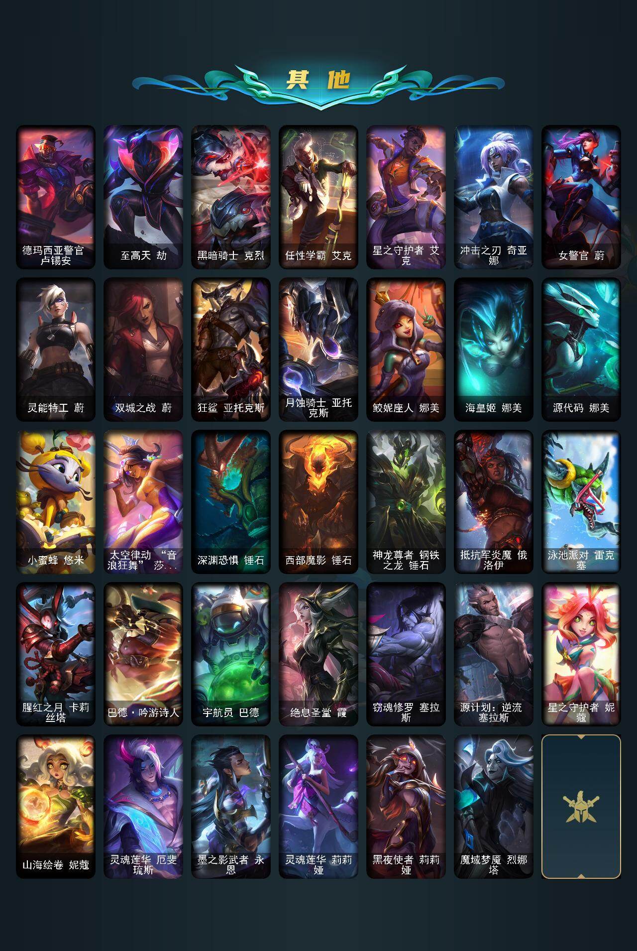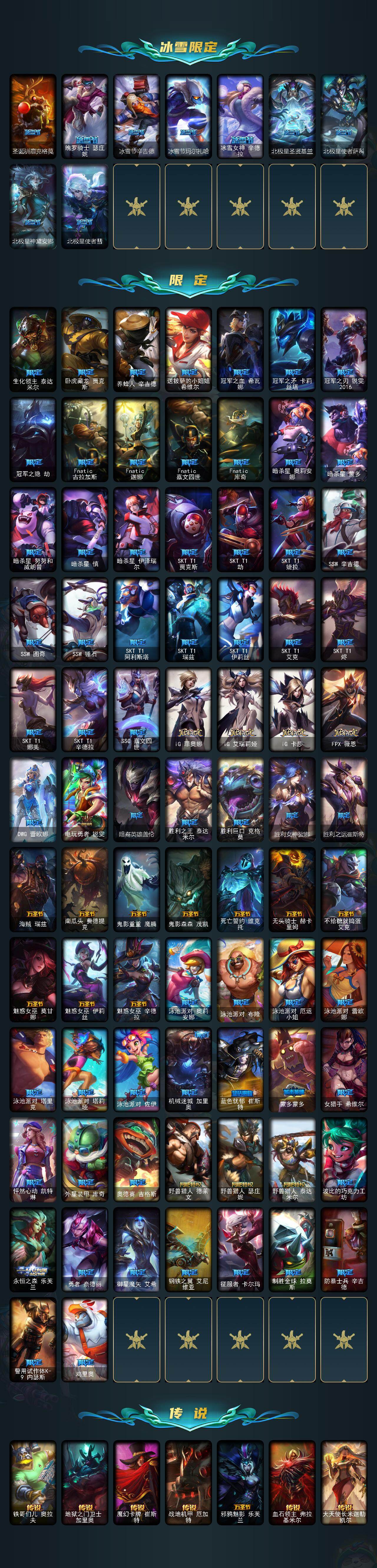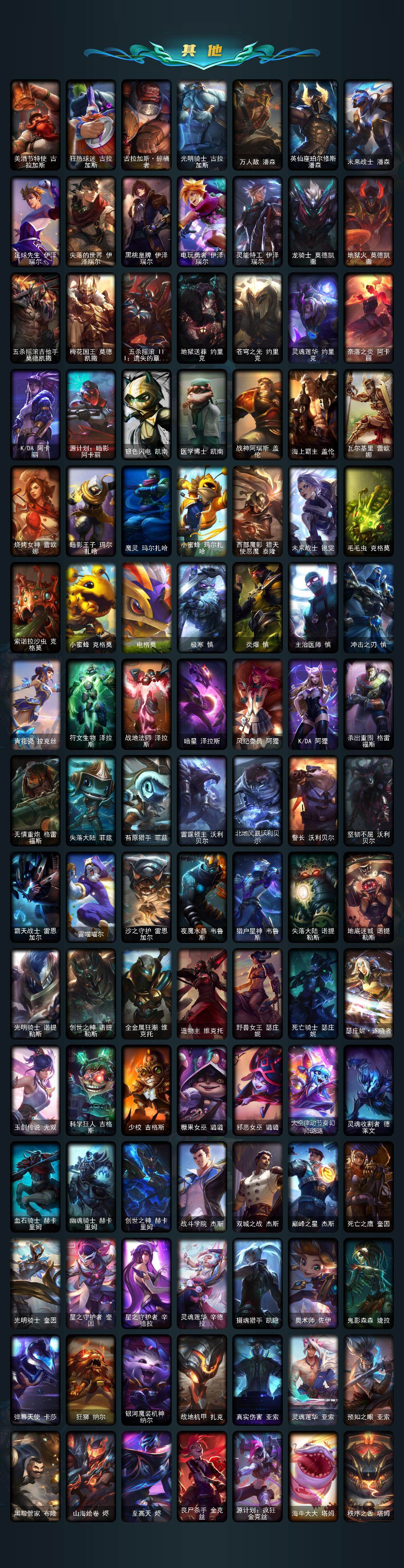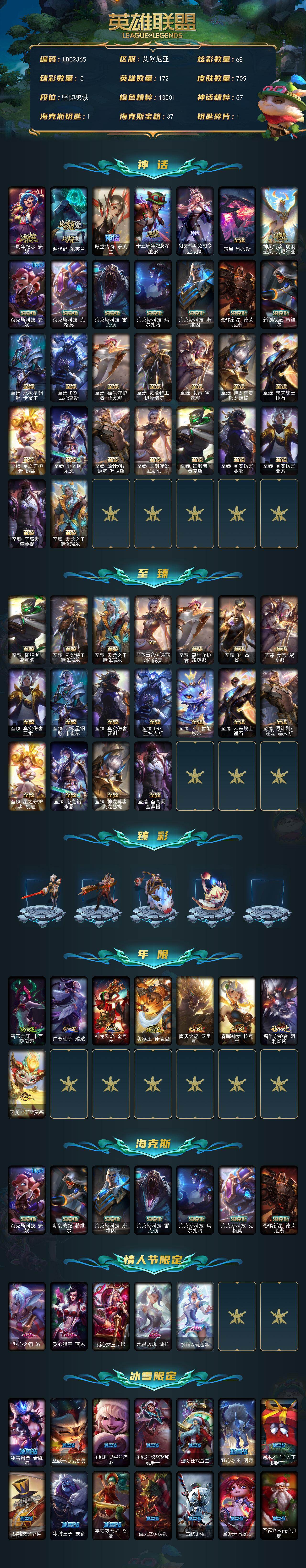 【ldc2365】172英雄/705皮肤/32神话/116限定/5臻彩/68炫彩/69传说/159史诗/未定级/十周年纪念安妮/源代码乐芙兰/殿堂传奇乐芙兰/十五周年纪念希维尔/幻灵战斗兔司令厄运小姐/暗星科加斯/神凰行者瑞羽圣凰艾尼维亚/海克斯科技安妮/海克斯科技克格莫/海克斯科技雷克顿/海克斯科技玛尔扎哈/海克斯科技斯维因/恐惧新星德莱厄斯/新创战纪希维尔/至臻征服者贾克斯/至臻真实伤害赛娜/至臻真实伤害亚索/至臻至高天奎桑提/至臻天龙之子伊泽瑞尔/至臻北极星钢影卡蜜尔/至臻drx亚托克斯/至臻福牛守护者菲奥娜/至臻灵能特工伊泽瑞尔/至臻女帝黛安娜/至臻神龙尊者炎龙瑟提/至臻未来战士锤石/至臻星之守护者妮蔻/至臻心之钢永恩/至臻源计划逆流塞拉斯/至臻玉剑传说武剑仙/至臻玉剑传说武剑仙锐雯/至臻t1杰斯/至臻人工智能悠米/巅峰剑仙菲奥娜天神下凡/无畏游侠卢锡安不败圣呛/无畏骑士瑟庄妮赤子初心/巅峰猫咪悠米凯旋辅卫/殿堂传奇乐芙兰登神/碧玉之牙卡西奥佩娅/广寒仙子嫦娥/神龙烈焰金克丝/美猴王孙悟空/南天之怒沃里克/春晖神女拉克丝/福牛守护者阿利斯塔/天龙之子斯莫德/甜心之翎洛/觅心猎手薇恩/觅心女王艾希/水晶玫瑰婕拉/水晶玫瑰迦娜/冰雪风暴希维尔/圣诞开心鬼提莫/圣诞精灵崔丝塔娜/圣诞狂欢努努和威朗普/圣诞狂欢基兰/狂心冰王图奇/阿木木“主人不要我了”/胡桃夹子萨科/冰封王子蒙多/平安夜女神娑娜/喜庆之树茂凯/雪默丁格/圣诞玩偶波比/圣诞老人古拉加斯/圣诞驯鹿克格莫/魄罗骑士瑟庄妮/冰雪节辛吉德/冰雪节玛尔扎哈/冰雪女神辛德拉/北极星圣贤基兰/北极星使者萨科/北极星神黛安娜/北极星使者彗/生化领主泰达米尔/卧虎藏龙贾克斯/养蜂人辛吉德/送披萨的小姐姐希维尔/冠军之血希瓦娜/冠军之矛卡莉丝塔/冠军之刃锐雯2016/冠军之隐劫/fnatic古拉加斯/fnatic迦娜/fnatic嘉文四世/fnatic库奇/暗杀星奥莉安娜/暗杀星蒙多/暗杀星努努和威朗普/暗杀星慎/暗杀星伊泽瑞尔/sktt1贾克斯/sktt1劫/sktt1婕拉/ssw辛吉德/ssw图奇/ssw锤石/sktt1阿利斯塔/sktt1瑞兹/sktt1伊莉丝/sktt1艾克/sktt1烬/sktt1娜美/sktt1辛德拉/ssg嘉文四世/ig菲奥娜/ig艾瑞莉娅/ig卡莎/f薇恩/dwg蕾欧娜/电玩勇者锐雯/暗裔英雄盖伦/胜利之王泰达米尔/胜利巨口克格莫/胜利女神娑娜/胜利之运崔斯特/海贼瑞兹/南瓜头费德提克/鬼影重重魔腾/鬼影森森茂凯/死亡誓约维克托/无头骑士赫卡里姆/不给糖就捣蛋艾克/魅惑女巫莫甘娜/魅惑女巫伊莉丝/魅惑女巫辛德拉/泳池派对奥莉安娜/泳池派对布隆/泳池派对厄运小姐/泳池派对蕾欧娜/泳池派对塔里克/泳池派对塔莉垭/泳池派对佐伊/机械迷城加里奥/蓝色忧郁崔斯特/蒙多蒙多/女猎手希维尔/怦然心动凯特琳/外星装甲库奇/奥德赛吉格斯/野兽猎人德莱文/野兽猎人瑟庄妮/野兽猎人泰达米尔/波比的巧克力工坊/永恒之森乐芙兰/勇者奈德丽/御星魔矢艾希/钢铁之翼艾尼维亚/征服者卡尔玛/制胜金球拉莫斯/防暴士兵辛吉德/警用试作体k9内瑟斯/鸡里奥/铁哥们儿奥拉夫/地狱之门卫士加里奥/魔幻卡牌崔斯特/战地机甲厄加特/邪鸦魅影乐芙兰/血石领主弗拉基米尔/大天使长米迦勒凯尔/战场女武神凯尔/源计划林易/墨之影武者易/恶魔男爵瑞兹/提莫约德尔人的一大步/约德尔国队长提莫/驯龙炮手崔丝塔娜/合金巨兽努努和威朗普/源计划联合艾希/恶魔之刃泰达米尔/魔女伊芙琳/绅士科加斯/战地巨兽科加斯/双重冰晶艾尼维亚/黯晶凤凰艾尼维亚/律政大亨蒙多/电玩女神娑娜/灵能特工娑娜/冰霜之刃艾瑞莉娅/女主播迦娜/红色男爵库奇/最终boss维迦/女警狙击凯特琳/未来战士凯特琳/陆地王者4wd布里茨/苹果机器人布里茨/冰川巨兽墨菲特/上古战魂魔腾/源计划泯灭雷克顿/地狱行者孙悟空/丧尸布兰德/神龙尊者圣龙李青/银河魔装机神兰博/第三类接触黑默丁格/驯龙学者黑默丁格/炼狱魔犬内瑟斯/屠龙勇士潘森/战斗学院伊泽瑞尔/死亡骑士盖伦/钢铁军团盖伦/日蚀骑士蕾欧娜/星之守护者拉克丝/枯萎之壤泽拉斯/黯黑魔龙希瓦娜/冰霜亚龙希瓦娜/星之守护者阿狸/符文战熊沃利贝尔/苍穹之光韦鲁斯/宇航员诺提勒斯/女校长菲奥娜/泳池派对吉格斯/金牌主播德莱文/灌篮高手德莱厄斯/神王德莱厄斯/蔷薇绅士杰斯/奥德赛凯隐/神龙尊者夜月幻龙亚索/星之守护者金克丝/西部魔影卢锡安/真实伤害艾克/暗星锤石/星之守护者霞/安伯斯与提妮/科学怪熊的新娘安妮/皇家火呛手崔斯特/腥红之月崔斯特/特战先锋赵信/绞肉机角斗士赵信/翼骑统领赵信/屠龙勇士赵信/铁钩船长费德提克/重生之沙费德提克/圣光审判凯尔/天人合一易/铁血剑豪易/地狱火阿利斯塔/战争机器赛恩/战场公主希维尔/钢铁之心希维尔/月光女神阿忒弥斯索拉卡/圣洁化身索拉卡/源代码索拉卡/兔宝宝提莫/火箭达人崔丝塔娜/狼外婆沃里克/荒野豺狼沃里克/法国皇室厄运小姐/黑帮狂花厄运小姐/女船长厄运小姐/紫晶射手艾希/国王泰达米尔/百夫长贾克斯/少林武僧贾克斯/刀锋女王莫甘娜/黑色荆棘莫甘娜/炼金狂士辛吉德/死神卡尔萨斯/卡尔萨斯祸害之光/小小骑士阿木木/熔火之心拉莫斯/贵族血统萨科/武动巅峰萨科/战争血统蒙多/五杀摇滚键盘手娑娜/掠星魔刃卡萨丁/海克斯科技迦娜/星之守护者迦娜/特种部队普朗克/恐惧新星普朗克/血石诅咒塔里克/穿着正装的恶魔维迦/绝代智将斯维因/抵抗