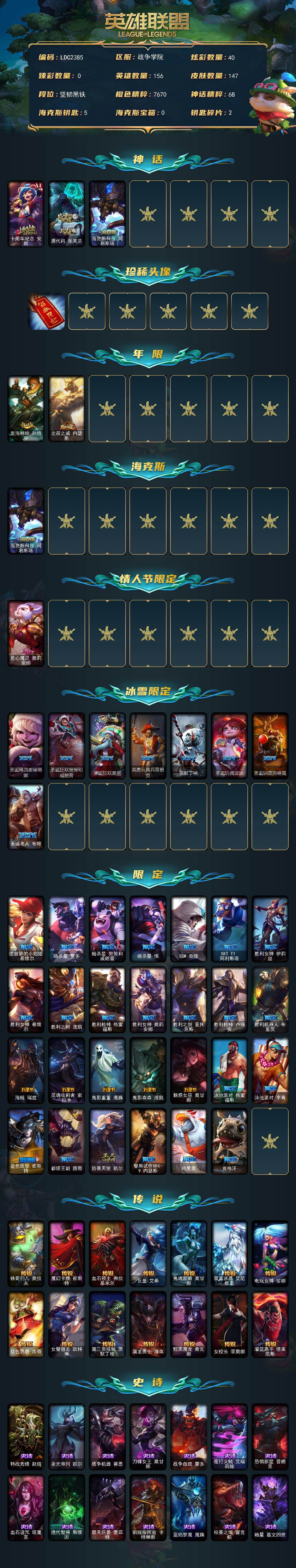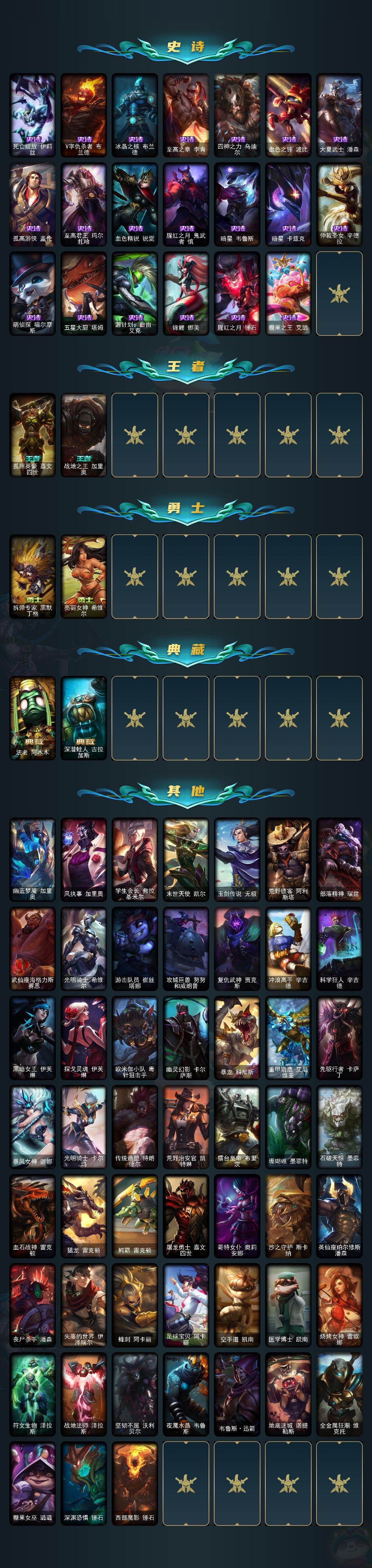 【ldc2385】156英雄/147皮肤/3神话/38限定/40炫彩/14传说/34史诗/未定级/十周年纪念安妮/源代码乐芙兰/海克斯科技阿利斯塔/红包头像/定海神珍孙悟空/北辰之威内瑟斯/觅心魔灵奥莉安娜/圣诞精灵崔丝塔娜/圣诞狂欢努努和威朗普/圣诞狂欢基兰/英勇玩具兵普朗克/雪默丁格/圣诞玩偶波比/圣诞驯鹿克格莫/圣诞老人布隆/送披萨的小姐姐希维尔/暗杀星蒙多/暗杀星努努和威朗普/暗杀星慎/ssw泰隆/sktt1阿利斯塔/胜利女神伊莉丝/胜利女神希维尔/胜利之树茂凯/胜利呛神格雷福斯/胜利女神奥莉安娜/胜利之剑亚托克斯/胜利呛神卢锡安/胜利机器人布里茨/海贼瑞兹/灵魂收割者索拉卡/鬼影重重魔腾/鬼影森森茂凯/魅惑女巫莫甘娜/泳池派对格雷福斯/泳池派对李青/蓝色忧郁崔斯特/都铎王朝图奇/防暴天使凯尔/警用试作体k9内瑟斯/鸡里奥/克格汪/铁哥们儿奥拉夫/魔幻卡牌崔斯特/血石领主弗拉基米尔/女皇艾希/鬼魂新娘莫甘娜/双重冰晶艾尼维亚/电玩女神娑娜/红色男爵库奇/女警狙击凯特琳/第三类接触黑默丁格/屠龙勇士潘森/黯黑魔龙希瓦娜/女校长菲奥娜/灌篮高手德莱厄斯/特战先锋赵信/圣光审判凯尔/战争机器赛恩/刀锋女王莫甘娜/战争血统蒙多/夜行义贼艾瑞莉娅/恐惧新星普朗克/血石诅咒塔里克/绝代智将斯维因/霸天巨兽墨菲特/前线指挥官卡特琳娜/蓝焰梦魔魔腾/枯萎之壤雷克顿/暗星嘉文四世/死亡绽放伊莉丝/v字仇杀者布兰德/冰晶之核布兰德/至高之拳李青/四神之力乌迪尔/血色之锤波比/大夏武士潘森/孤高游侠盖伦/至高君王玛尔扎哈/血色精锐锐雯/腥红之月鬼武者慎/暗星韦鲁斯/暗星卡兹克/仲裁圣女辛德拉/萌侦探喵尔摩斯/五星大厨塔姆/源计划自由艾克/锦鲤娜美/腥红之月锤石/糖果之王艾翁/孤胆英豪嘉文四世/战地之王加里奥/拆弹专家黑默丁格/亮丽女神希维尔/法老阿木木/深潜蛙人古拉加斯/幽蓝梦魇加里奥/风执事加里奥/学生会长弗拉基米尔/末世天使凯尔/玉剑传说无极/荒野镖客阿利斯塔/部落精神瑞兹/武仙座海格力斯赛恩/光明骑士希维尔/游击队员崔丝塔娜/攻城巨兽努努和威朗普/复仇武神贾克斯/冲浪高手辛吉德/科学狂人辛吉德/黑暗女王伊芙琳/探戈灵魂伊芙琳/欧米伽小队毒针狙击手/幽灵幻影卡尔萨斯/暴龙科加斯/重甲猎鹰艾尼维亚/先驱行者卡萨丁/暴风女神迦娜/光明骑士卡尔玛/传统造型特朗德尔/荒野治安官凯特琳/擂台皇帝布里茨/珊瑚礁墨菲特/石破天惊墨菲特/血石战神雷克顿/猛龙雷克顿/鳄霸雷克顿/屠龙勇士嘉文四世/哥特女仆奥莉安娜/沙之守护斯卡纳/英仙座珀尔修斯潘森/丧尸杀手潘森/失落的世界伊泽瑞尔/蜂刺阿卡丽/足球宝贝阿卡丽/空手道凯南/医学博士凯南/烧烤女神蕾欧娜/符文生物泽拉斯/战地法师泽拉斯/坚韧不屈沃利贝尔/夜魔水晶韦鲁斯/韦鲁斯迅箭/地底迷城诺提勒斯/全金属狂潮维克托/糖果女巫璐璐/深渊恐惧锤石/西部魔影锤石