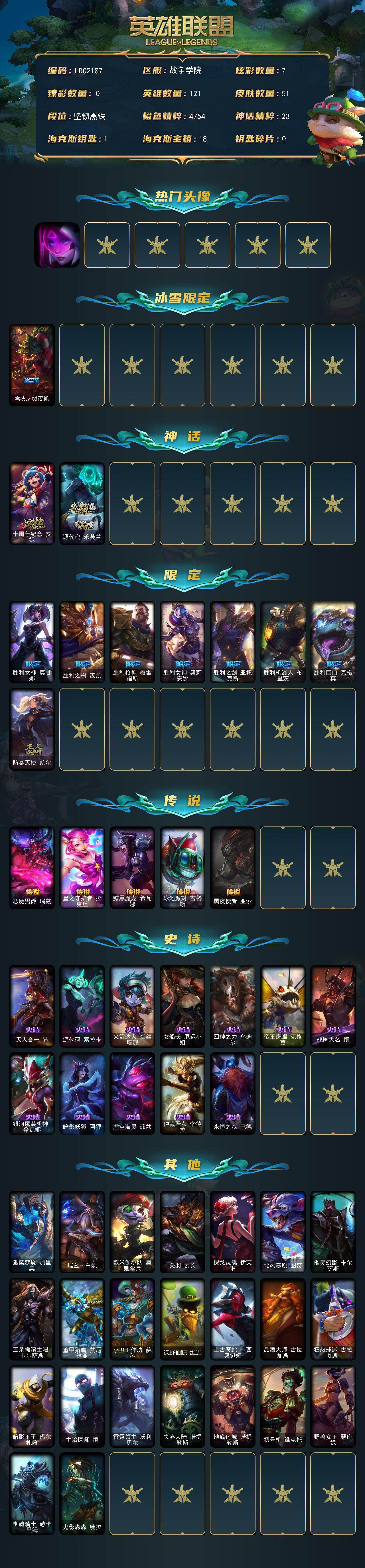 【ldc2187】121英雄/51皮肤/2神话/9限定/7炫彩/5传说/12史诗/未定级/十周年纪念安妮/源代码乐芙兰/源计划刀妹头像/喜庆之树茂凯/胜利女神莫甘娜/胜利之树茂凯/胜利呛神格雷福斯/胜利女神奥莉安娜/胜利之剑亚托克斯/胜利机器人布里茨/胜利巨口克格莫/防暴天使凯尔/恶魔男爵瑞兹/星之守护者拉克丝/黯黑魔龙希瓦娜/泳池派对吉格斯/黑夜使者亚索/天人合一易/源代码索拉卡/火箭达人崔丝塔娜/女船长厄运小姐/四神之力乌迪尔/帝王斑蝶克格莫/战国大名慎/银河魔装机神希瓦娜/暗影妖狐阿狸/虚空海灵菲兹/仲裁圣女辛德拉/永恒之森巴德/幽蓝梦魇加里奥/瑞兹白须/欧米伽小队魔鬼伞兵/关羽云长/探戈灵魂伊芙琳/北风冻原图奇/幽灵幻影卡尔萨斯/五杀摇滚主唱卡尔萨斯/重甲猎鹰艾尼维亚/小丑工作坊萨科/绿野仙踪维迦/上古魔蛇卡西奥佩娅/品酒大师古拉加斯/狂热球迷古拉加斯/暗影王子玛尔扎哈/主治医师慎/雷霆领主沃利贝尔/失落大陆诺提勒斯/地底迷城诺提勒斯/初号机维克托/野兽女王瑟庄妮/幽魂骑士赫卡里姆/鬼影森森婕拉