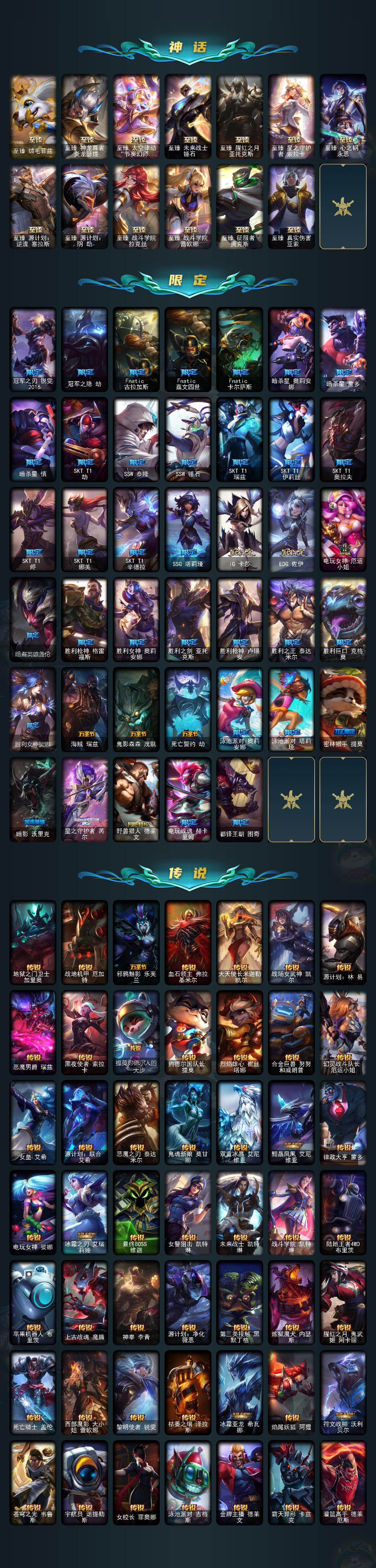 【ldc1799】172英雄/483皮肤/35神话/55限定/18臻彩/270炫彩/58传说/120史诗/铂金/十周年纪念安妮/源代码乐芙兰/殿堂传奇乐芙兰/暗星科加斯/神凰行者瑞羽圣凰艾尼维亚/黎明使者卡尔玛/水晶巫灵泽拉斯/海克斯科技阿利斯塔/海克斯科技雷克顿/海克斯科技玛尔扎哈/零之呛骑赫卡里姆/摄魂使者薇恩/新创战纪希维尔/至臻征服者贾克斯/至臻真实伤害亚索/至臻奥术师佐伊/至臻福牛守护者菲奥娜/至臻黑夜使者凯隐/至臻黑夜使者李青/至臻kdaallout卡莎/至臻kda卡莎/至臻魔女乐芙兰/至臻女帝黛安娜/至臻绒毛菲兹/至臻神龙尊者炎龙瑟提/至臻太空律动节奏幻师璐璐/至臻未来战士锤石/至臻腥红之月亚托克斯/至臻星之守护者索拉卡/至臻心之钢永恩/至臻源计划逆流塞拉斯/至臻源计划阴劫/至臻战斗学院拉克丝/至臻战斗学院蕾欧娜/爱意绵绵头像/星守索拉卡头像/至臻t1杰斯/天龙之子卡莎飞龙乘云/无畏骑士瑟庄妮赤子初心/冠军之箭艾希凯旋圣装/玉剑传说无极白虎/冰霜之刃艾瑞莉娅炫金/墨之影武者亚索金墨耀影/弹幕天使卡莎炽天使勇敢/西部天使赛娜神选天使长/源计划联合艾希红莲之弓/咖啡甜心金克丝核桃巴菲/星之守护者金克丝黑洞/泳池派对奥莉安娜优雅珠光鲸/灵魂莲华亚索霜见之时/可爱可爱粉红红布里茨/殿堂传奇乐芙兰登神/魔女阿卡丽虚荣/净雪之月莫甘娜冬虹/墨之影武者永恩灵墨刻影/天龙之子斯莫德/甜心宝贝安妮/觅心猎手薇恩/水晶玫瑰阿克尚/幸福女神乐芙兰/圣诞开心鬼提莫/胡桃夹子萨科/平安夜女神娑娜/喜庆之树茂凯/雪默丁格/圣诞玩偶波比/圣诞老人古拉加斯/魄罗骑士瑟庄妮/圣诞老人德莱文/冰雪节辛吉德/冠军之刃锐雯2016/冠军之隐劫/fnatic古拉加斯/fnatic嘉文四世/fnatic卡尔萨斯/暗杀星奥莉安娜/暗杀星蒙多/暗杀星慎/sktt1劫/ssw泰隆/ssw锤石/sktt1瑞兹/sktt1伊莉丝/sktt1奥拉夫/sktt1烬/sktt1娜美/sktt1辛德拉/ssg塔莉垭/ig卡莎/edg佐伊/电玩女神厄运小姐/暗裔英雄盖伦/胜利呛神格雷福斯/胜利女神奥莉安娜/胜利之剑亚托克斯/胜利呛神卢锡安/胜利之王泰达米尔/胜利巨口克格莫/胜利女神娑娜/海贼瑞兹/鬼影森森茂凯/死亡誓约劫/泳池派对奥莉安娜/泳池派对塔莉垭/密林猎手提莫/暗影沃里克/星之守护者芮尔/野兽猎人德莱文/电玩战魂赫卡里姆/都铎王朝图奇/地狱之门卫士加里奥/战地机甲厄加特/邪鸦魅影乐芙兰/血石领主弗拉基米尔/大天使长米迦勒凯尔/战场女武神凯尔/源计划林易/恶魔男爵瑞兹/黑夜使者索拉卡/提莫约德尔人的一大步/约德尔国队长提莫/烈焰雄心崔丝塔娜/合金巨兽努努和威朗普/幻灵战斗队长厄运小姐/女皇艾希/源计划联合艾希/恶魔之刃泰达米尔/鬼魂新娘莫甘娜/双重冰晶艾尼维亚/黯晶凤凰艾尼维亚/律政大亨蒙多/电玩女神娑娜/冰霜之刃艾瑞莉娅/最终boss维迦/女警狙击凯特琳/未来战士凯特琳/战斗学院凯特琳/陆地王者4wd布里茨/苹果机器人布里茨/上古战魂魔腾/神拳李青/源计划净化薇恩/第三类接触黑默丁格/炼狱魔犬内瑟斯/腥红之月鬼武姬阿卡丽/死亡骑士盖伦/西部魔影大小姐蕾欧娜/黎明使者锐雯/枯萎之壤泽拉斯/冰霜亚龙希瓦娜/焰尾妖狐阿狸/符文战熊沃利贝尔/苍穹之光韦鲁斯/宇航员诺提勒斯/女校长菲奥娜/泳池派对吉格斯/金牌主播德莱文/霸天异形卡兹克/灌篮高手德莱厄斯/神王德莱厄斯/奥德赛凯隐/黑夜使者亚索/暗星尊烬/星之守护者金克丝/西部天使赛娜/天煞劫/暗星锤石/黎明使者永恩/摄魂男爵弗拉基米尔/铁钩船长费德提克/圣光审判凯尔/天人合一易/侍魂易/铁血剑豪易/钢铁之心希维尔/圣洁化身索拉卡/兔宝宝提莫/熊猫提莫/狼外婆沃里克/法国皇室厄运小姐/黑帮狂花厄运小姐/紫晶射手艾希/国王泰达米尔/百夫长贾克斯/少林武僧贾克斯/刀锋女王莫甘娜/黑色荆棘莫甘娜/卡尔萨斯祸害之光/小小骑士阿木木/殇之机器人阿木木/全金属狂潮拉莫斯/飞越疯人院萨科/战争血统蒙多/五杀摇滚键盘手娑娜/掠星魔刃卡萨丁/夜刃艾瑞莉娅/夜行义贼艾瑞莉娅/海克斯科技迦娜/星之守护者迦娜/恐惧新星普朗克/血石诅咒塔里克/绝代智将斯维因/驯龙大师斯维因/铁血狙击手凯特琳/霸天巨兽墨菲特/无畏号墨菲特/海贼魅影卡特琳娜/暗夜猫女卡特琳娜/前线指挥官卡特琳娜/源计划雄心卡特琳娜/蓝焰梦魔魔腾/符文战神雷克顿/龙骑统帅嘉文四世/凯旋英雄嘉文四世/暗星嘉文四世/死亡绽放伊莉丝/腥红之月伊莉丝/暗星奥莉安娜/v字仇杀者布兰德/冰晶之核布兰德/至高之拳李青/屠龙勇士薇恩/苍穹之光薇恩/战地机甲斯卡纳/法老王朝内瑟斯/艳后奈德丽/四神之力乌迪尔/血色之锤波比/飞车暴走族古拉加斯/钢铁意志潘森/死亡领主莫德凯撒/实习护士阿卡丽/铁血女忍阿卡丽/铁甲雄心盖伦/至高君王玛尔扎哈/腥红之月泰隆/刺客信条锐雯/侏罗纪化石克格莫/腥红之月鬼武者慎/战国大名慎/奥术光辉拉克丝/odst地狱伞兵拉克丝/星际迷航拉克丝/沙之守护泽拉斯/钢之逆鳞希瓦娜/银河魔装机神希瓦娜/黑帮教父格雷福斯/虚空海灵菲兹/银河魔装机神菲兹/铁血猎人雷恩加尔/白色死神韦鲁斯/暗星韦鲁斯/夜鸦菲奥娜/奥术大师吉格斯/驯龙女巫璐璐/沙之守护卡兹克/暗星卡兹克/生化骑士德莱厄斯/源代码丽桑卓/无限烈焰黛安娜/腥红之月黛安娜/亚特兰蒂斯辛德拉/野火之藤婕拉/最后一只恐龙纳尔/萌侦探喵尔摩斯/邪恶魔人扎克/西部牛仔亚索
