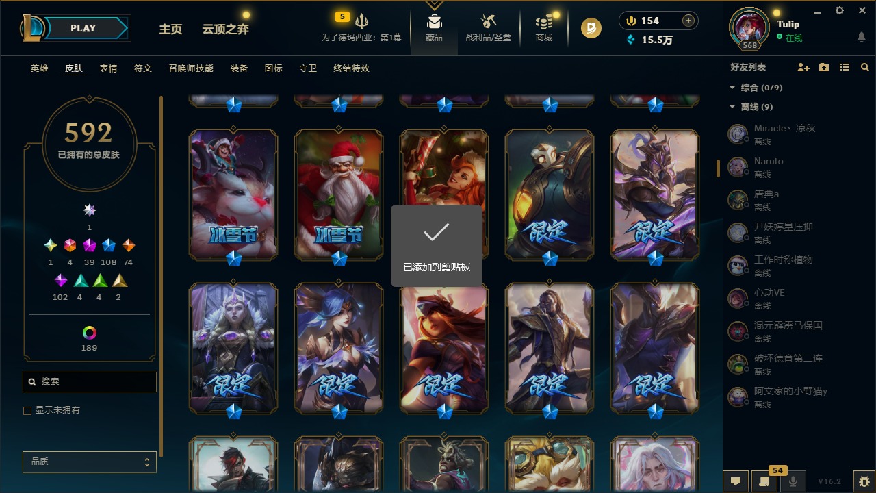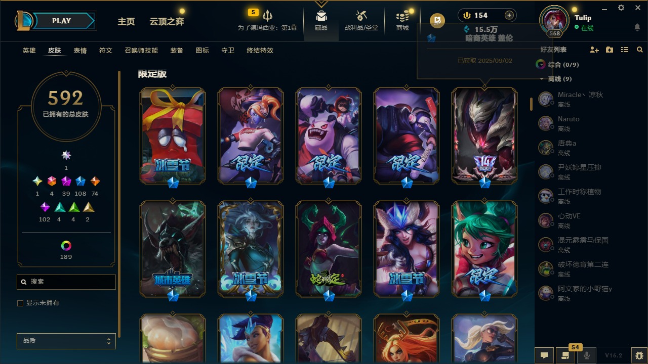 [16387950]3卓越 1圣堂 4终极 39神话 108限定 74传说 102史诗 592皮肤 240炫彩 172英雄 可二次 可修改实名 【卓越】殿堂传奇 阿狸联盟不朽 阿狸签名版联盟不朽 阿狸 【圣堂】双城之战2 破碎者 金克丝 【至臻】至臻 未来战士 锤石2022至臻 k/da 卡莎2022至臻 永恒星灵 佐伊至臻 t1 塞拉斯至臻 剪纸仙灵 卡西奥佩娅至臻 黑色玫瑰假面舞会 卡特琳娜至臻 双城之战2 指挥官 凯特琳至臻 暗星女王 黛安娜至臻 魔域梦魇 泽丽至臻 t1 杰斯至臻 k/da 阿卡丽至臻 k/da 卡莎至臻 源计划:正义 艾瑞莉娅至臻 未来战士 锤石至臻 灵魂莲华 提莫至臻 真实伤害 亚索至臻 战斗学院 蕾欧娜至臻 太空律动 节奏幻师 璐璐至臻 神龙尊者 炎龙瑟提至臻 灵能特工 伊泽瑞尔至臻 k/da all out卡莎至臻 青花瓷 拉克丝至臻 神凰行者 烈羽焰凰 霞至臻 星之守护者 辛德拉至臻 海珀利安小队 迦娜至臻 至高天 奎桑提至臻 剪纸仙灵 希维尔至臻 青花瓷 丽桑卓殿堂传奇 乐芙兰 【海克斯】海克斯 吉格斯摄魂 薇恩海克斯 克格莫海克斯 斯维因 【限定】双城之战2 幸存者 杰斯双城之战2 指挥官 凯特琳双城之战2 微光实验室 辛吉德双城之战2 范德尔 沃里克双城之战2 孤勇者 艾克双城之战2 教授 黑默丁格双城之战2 救世主 维克托双城之战2 斗士 蔚 【情人节限定】觅心萝莉 金克丝水晶玫瑰 婕拉甜心之翎 洛幽梦玫瑰 辛德拉怦然心动 凯特琳 【赛季限定皮】胜利剑圣 易胜利女神 娑娜胜利女神 希维尔胜利之剑 亚托克斯胜利呛神 卢锡安胜利机器人 布里茨胜利女神 瑟庄妮 【冠军限定系列】s1fnc 酒桶s1fnc 迦娜s1fnc 嘉文四世s1fnc 卡尔萨斯s1fnc 库奇s2 暗杀星 发条s2 暗杀星 努努s2 暗杀星 慎s3 skt t1 劫s3 skt t1 薇恩s4 ssw 锤石s4 ssw 炼金s5 skt t1 阿利斯塔s5 skt t1 瑞兹s5 skt t1 滑板鞋s5 skt t1 阿兹尔s5 skt t1 蜘蛛s6 skt t1 艾克s6 skt t1 球女s7 ssg 嘉文四世s7 ssg