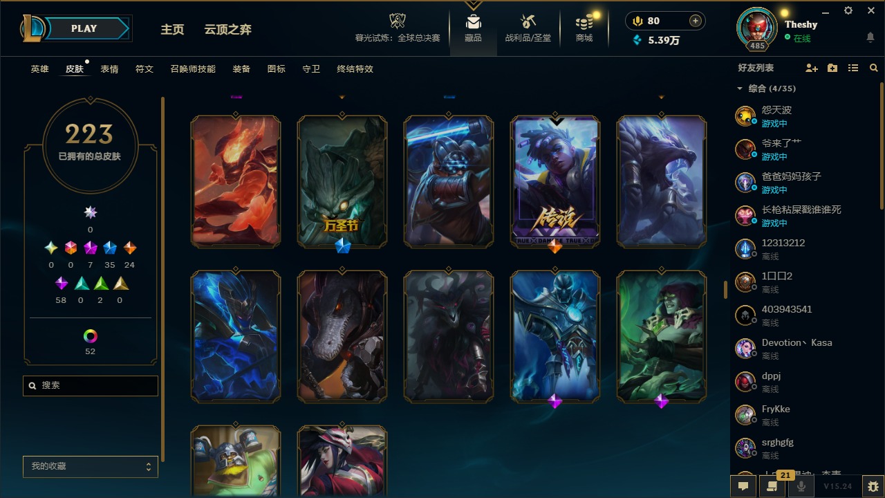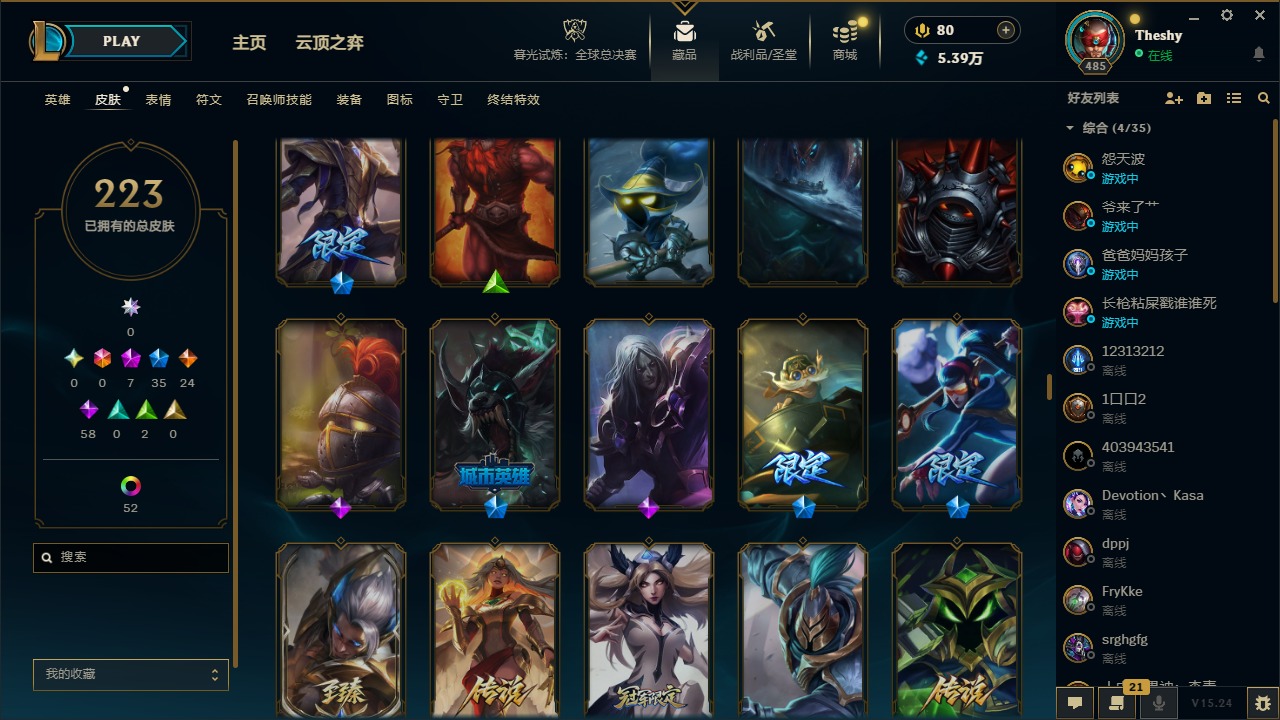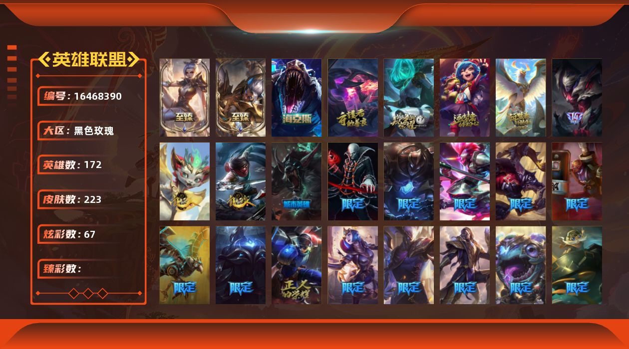 [16468390]7神话 35限定 24传说 58史诗 223皮肤 67炫彩 172英雄 可二次 可修改实名 【至臻】至臻 玉剑传说 武剑仙至臻 神龙尊者 炎龙瑟提 【海克斯】海克斯 雷克顿 【赛季限定皮】胜利巨口 克格莫胜利女神 奥莉安娜胜利之剑 亚托克斯胜利呛神 卢锡安 【冠军限定系列】s13 t1 李青s1fnc 库奇s3 skt t1 李青s3 skt t1 婕拉s4 ssw 雷恩加尔s4 ssw 炼金s5 skt t1 滑板鞋s8 ig 艾瑞莉娅s10 dwg 崔斯特 【冰雪节限定】冰封王子 蒙多平安夜女神 娑娜魄罗骑士 瑟庄妮圣诞精灵 崔丝塔娜圣诞老人 古拉加斯圣诞糖果棒 厄运小姐圣诞玩偶 波比雪默丁格 【万圣节限定】不给糖就捣蛋 艾克鬼影森森 茂凯死亡誓约 劫 【年限】天龙之子 斯莫德银龙裁决 泰隆 【周年】10周年 安妮10周年 凤凰 【其他限定/神话皮】暗裔英雄 盖伦暗星 科加斯源代码 乐芙兰防暴天使 凯尔暗影 沃里克电玩战魂 赫卡里姆都铎王朝 图奇防暴士兵 辛吉德钢铁之翼 艾尼维亚冠军之隐 劫机械迷城 加里奥诺斯费拉图 弗拉基米尔