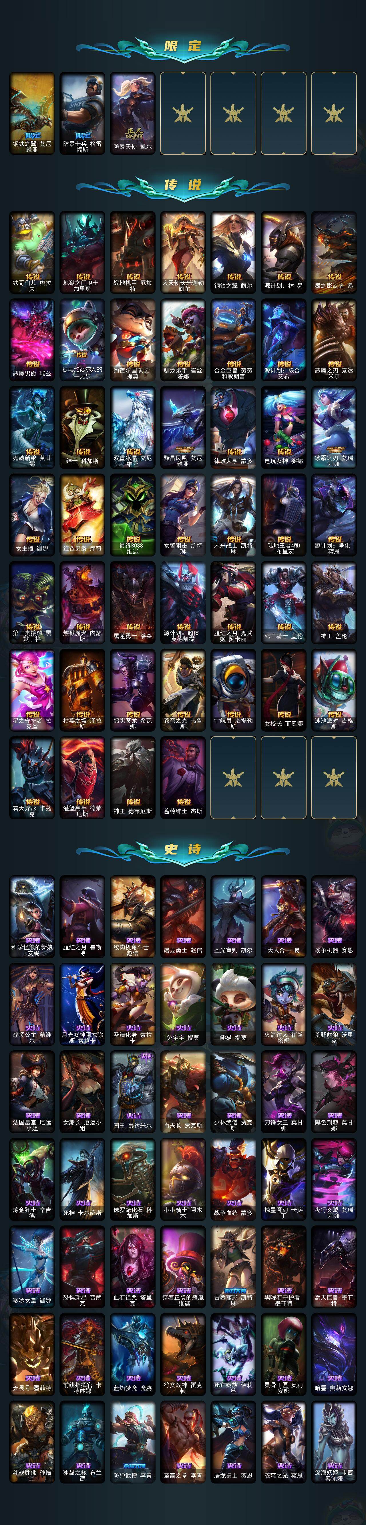 【8位数q】铂金段位-172英雄-448皮肤-193炫彩-0终极-15神话-67限定-46传说-101史诗 【神话皮肤】:十周年纪念安妮,源代码乐芙兰,神凰行者瑞羽圣凰艾尼维亚,殿堂传奇薇恩,海克斯科技嘉文四世,海克斯科技雷克顿,海克斯科技魔腾,摄魂使者薇恩,至臻灵魂莲华提莫,至臻魔女婕拉,至臻腥红之月亚托克斯 【至臻皮肤】:至臻灵魂莲华提莫,至臻蒙面女郎莫甘娜,至臻暗裔英雄嘉文四世,至臻灵魂莲华拉克丝,至臻永恒星灵佐伊,至臻魔女婕拉,至臻腥红之月亚托克斯 【臻彩皮肤】:天龙之子卡莎飞龙乘云,墨之影武者亚索金墨耀影,冠军之矛卡莉丝塔凯旋圣装,西部天使赛娜贝利尔之怠,霸天巨兽雪崩墨菲特,战斗学院盖伦不死鸟,魔女阿卡丽虚荣,净雪之月莫甘娜冬虹 【年限皮肤】:美猴王孙悟空,紫金罗刹莫甘娜,司马懿仲达,天龙之子斯莫德,点心宝贝阿木木 【海克斯皮肤】:海克斯科技魔腾,海克斯科技雷克顿,海克斯科技嘉文四世,摄魂使者薇恩 【冰雪限定】:幸福女神乐芙兰,持胡萝卜的雪人易,圣诞开心鬼提莫,圣诞狂欢努努和威朗普,圣诞狂欢基兰,阿木木“主人不要我了”,胡桃夹子萨科,邪恶圣诞老人维迦,夺命美人卡特琳娜,喜庆之树茂凯,冬季仙境奥莉安娜,雪默丁格,圣诞玩偶波比,圣诞驯鹿克格莫,圣诞老人布隆,冰雪节格雷福斯 【限定皮肤】:哥特萝莉安妮,卧虎藏龙贾克斯,冠军典狱长锤石,fnatic迦娜,fnatic嘉文四世,暗杀星蒙多,暗杀星慎,sktt1贾克斯,sktt1薇恩,ssw泰隆,ssw锤石,ig卡莎,f薇恩,dwg烬,edg悠米,暗裔英雄盖伦,胜利之树茂凯,胜利呛神格雷福斯,胜利女神奥莉安娜,胜利之剑亚托克斯,胜利呛神卢锡安,胜利凤凰艾尼维亚,胜利之王泰达米尔,胜利巨口克格莫,胜利女神娑娜,胜利剑圣易,胜利之运崔斯特,胜利女神菲奥娜,海贼瑞兹,无头骑士赫卡里姆,泳池派对布隆,泳池派对李青,泳池派对塔里克,机械迷城加里奥,女猎手希维尔,外星装甲库奇,暗影沃里克,野兽猎人德莱文,野兽猎人瑟庄妮,野兽猎人泰达米尔,波比的巧克力工坊,都铎王朝图奇,钢铁之翼艾尼维亚,防暴士兵格雷福斯,防暴天使凯尔 【传说皮肤】:铁哥们儿奥拉夫,地狱之门卫士加里奥,战地机甲厄加特,大天使长米迦勒凯尔,钢铁之翼凯尔,源计划林易,墨之影武者易,恶魔男爵瑞兹,提莫约德尔人的一大步,约德尔国队长提莫,驯龙炮手崔丝塔娜,合金巨兽努努和威朗普,源计划联合艾希,恶魔之刃泰达米尔,鬼魂新娘莫甘娜,绅士科加斯,双重冰晶艾尼维亚,黯晶凤凰艾尼维亚,律政大亨蒙多,电玩女神娑娜,冰霜之刃艾瑞莉娅,女主播迦娜,红色男爵库奇,最终boss维迦,女警狙击凯特琳,未来战士凯特琳,陆地王者4wd布里茨,源计划净化薇恩,第三类接触黑默丁格,炼狱魔犬内瑟斯,屠龙勇士潘森,源计划超体莫德凯撒,腥红之月鬼武姬阿卡丽,死亡骑士盖伦,神王盖伦,星之守护者拉克丝,枯萎之壤泽拉斯,黯黑魔龙希瓦娜,苍穹之光韦鲁斯,宇航员诺提勒斯,女校长菲奥娜,泳池派对吉格斯,霸天异形卡兹克,灌篮高手德莱厄斯,神王德莱厄斯,蔷薇绅士杰斯 【史诗皮肤】:科学怪熊的新娘安妮,腥红之月崔斯特,绞肉机角斗士赵信,屠龙勇士赵信,圣光审判凯尔,天人合一易,战争机器赛恩,战场公主希维尔,月光女神阿忒弥斯索拉卡,圣洁化身索拉卡,兔宝宝提莫,熊猫提莫,火箭达人崔丝塔娜,荒野豺狼沃里克,法国皇室厄运小姐,女船长厄运小姐,国王泰达米尔,百夫长贾克斯,少林武僧贾克斯,刀锋女王莫甘娜,黑色荆棘莫甘娜,炼金狂士辛吉德,死神卡尔萨斯,侏罗纪化石科加斯,小小骑士阿木木,战争血统蒙多,掠星魔刃卡萨丁,夜行义贼艾瑞莉娅,寒冰女皇迦娜,恐惧新星普朗克,血石诅咒塔里克,穿着正装的恶魔维迦,古墓丽影凯特琳,黑曜石守护者墨菲特,霸天巨兽墨菲特,无畏号墨菲特,前线指挥官卡特琳娜,蓝焰梦魔魔腾,符文战神雷克顿,死亡绽放伊莉丝,灵骨工匠奥莉安娜,暗星奥莉安娜,斗战胜佛孙悟空,冰晶之核布兰德,防弹武僧李青,至高之拳李青,屠龙勇士薇恩,苍穹之光薇恩,深海妖姬卡西奥佩娅,生化博士黑默丁格,法老王朝内瑟斯,四神之力乌迪尔,血色之锤波比,大夏武士潘森,面包之王潘森,冰川勇者伊泽瑞尔,死亡领主莫德凯撒,实习护士阿卡丽,腥红之月凯南,铁甲雄心盖伦,钢铁烈阳蕾欧娜,源计划山蕾欧娜,至高君王玛尔扎哈,腥红之月泰隆,血色精锐锐雯,深海怪鱼克格莫,侏罗纪化石克格莫,腥红之月鬼武者慎,战国大名慎,骸骨之爪希瓦娜,黑帮教父格雷福斯,银河魔装机神菲兹,铁血猎人雷恩加尔,暗黑武士雷恩加尔,皇家守卫菲奥娜,奥术大师吉格斯,永恒之森赫卡里姆,铁血帝皇德莱厄斯,全金属狂潮杰斯,刀锋女王丽桑卓,无限烈焰黛安娜,腥红之月黛安娜,血羽凤凰奎因,勇敢的心奎因,仲裁圣女辛德拉,亚特兰蒂斯辛德拉,野火之藤婕拉,源计划风亚索,猛虎布隆,西部牛仔烬,腥红之月烬,黑帮狂花金克丝,五星大厨塔姆,职业杀手卢锡安,源计划雷卢锡安,冲击之刃劫,源计划自由艾克,霸天剑魔亚托克斯,星际之门阿兹尔,虚空使者俄洛伊,暮星之羽霞 【王者皮肤】:五杀摇滚鼓手奥拉夫,星空之门内瑟斯,霹雳游侠弗拉基米尔 【勇士皮肤】:创意工坊黑默丁格,烈焰猛士奥拉夫 【典藏皮肤】:嗜血狂暴沃里克 【其他皮肤1】:小红帽安妮,银河魔装机神安妮,黑暗骑士奥拉夫,风执事加里奥,地狱火加里奥,龙族卫士加里奥,探戈灵魂崔斯特,赵云子龙,秘密特工赵信,电锯狂人厄