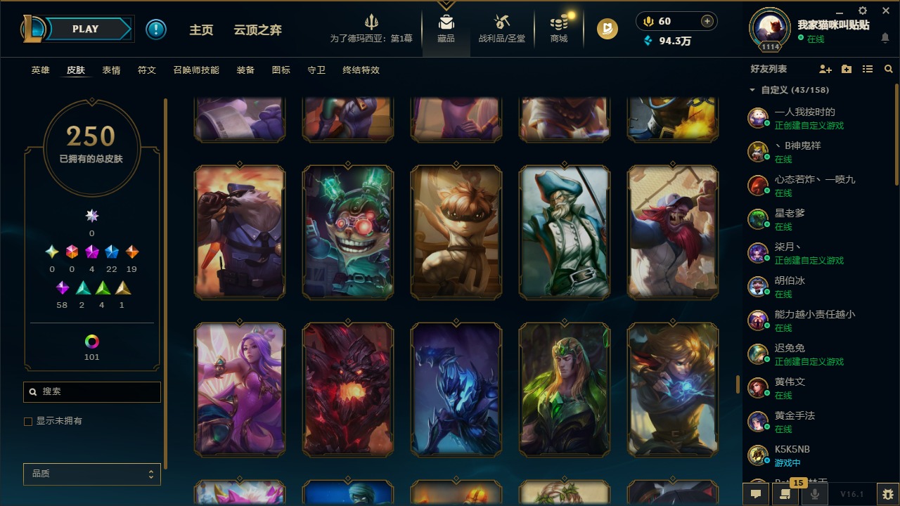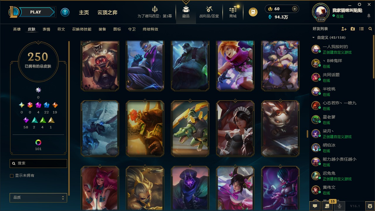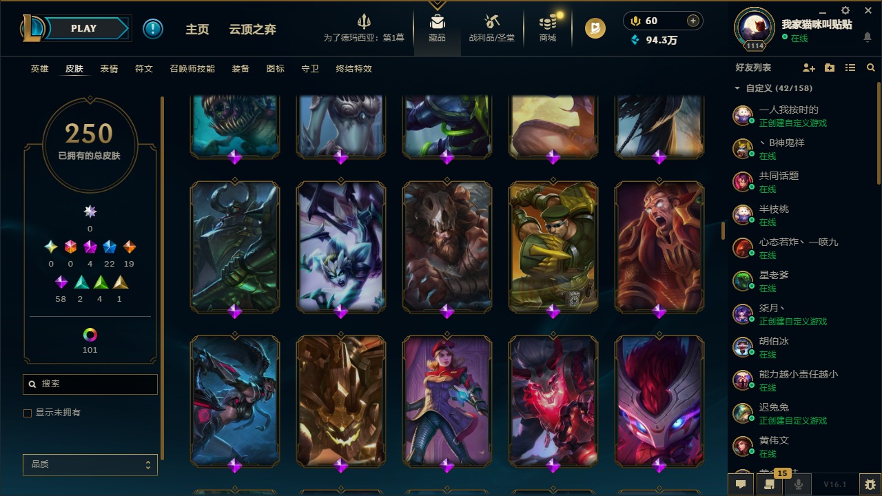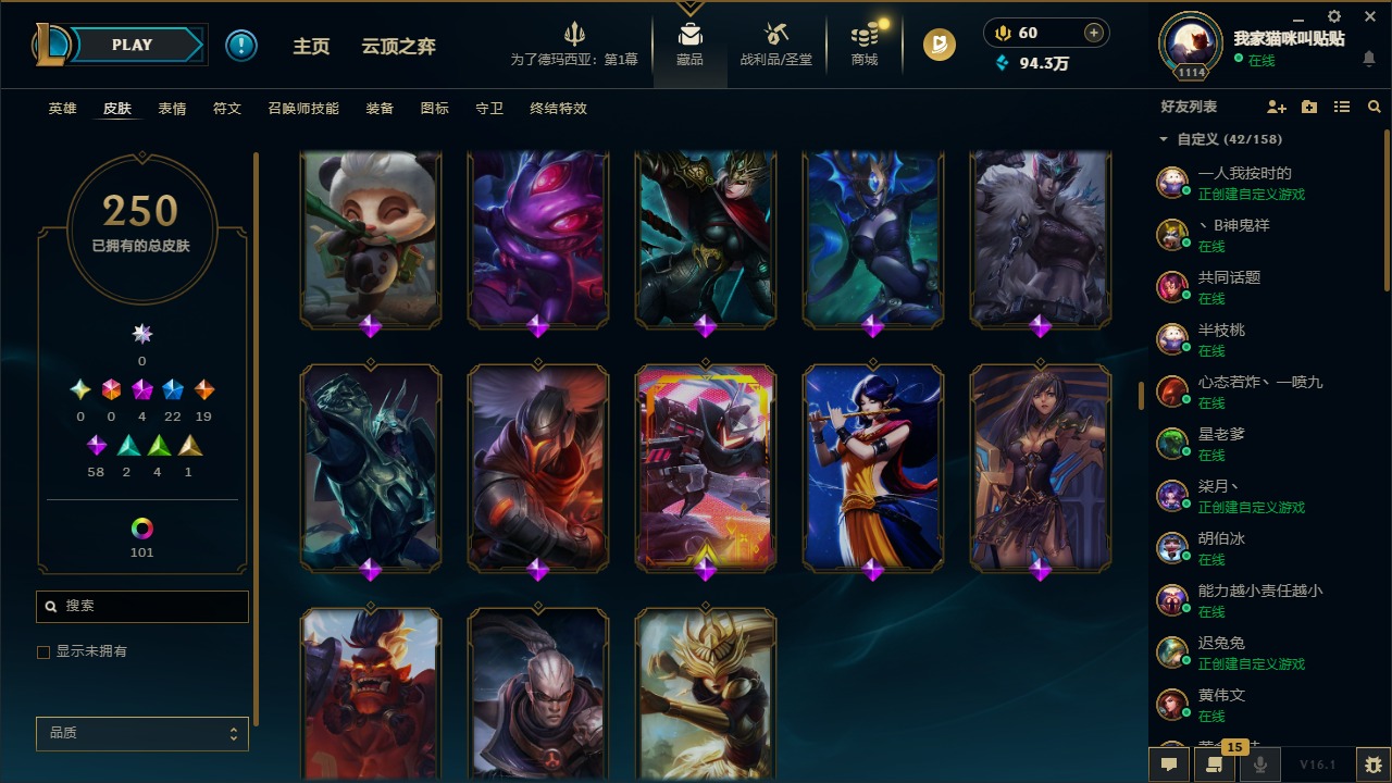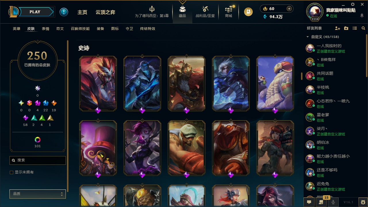 [16341116]4神话 22限定 19传说 58史诗 250皮肤 114炫彩 172英雄 可二次 可修改实名 【赛季限定皮】胜利女神-菲奥娜胜利之运 崔斯特胜利剑圣 易胜利女神 娑娜胜利女神 莫甘娜胜利女神 希维尔胜利之树 茂凯胜利呛神 格雷福斯胜利女神 奥莉安娜胜利之剑 亚