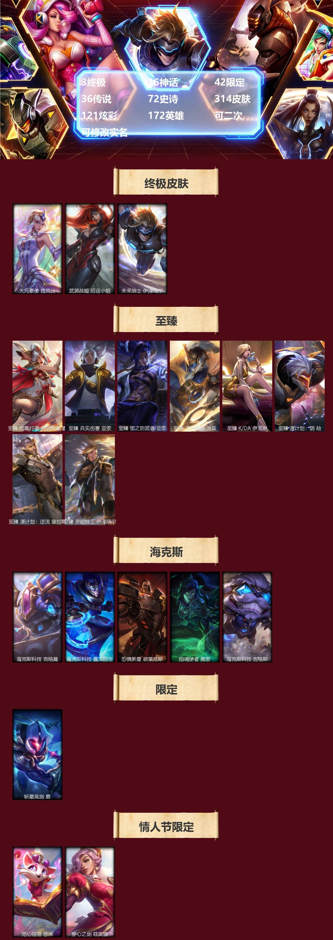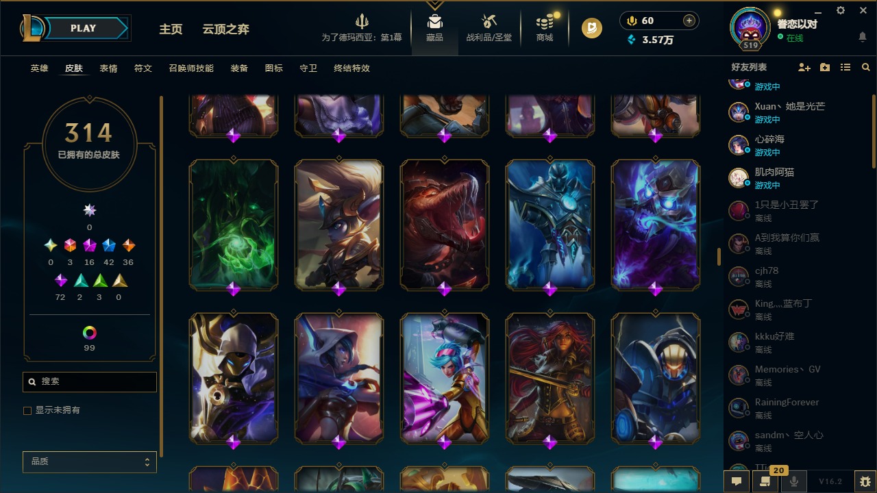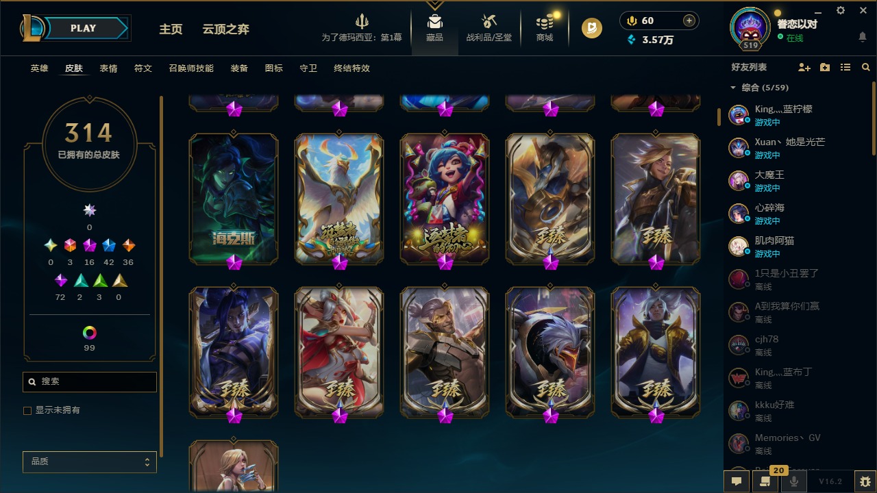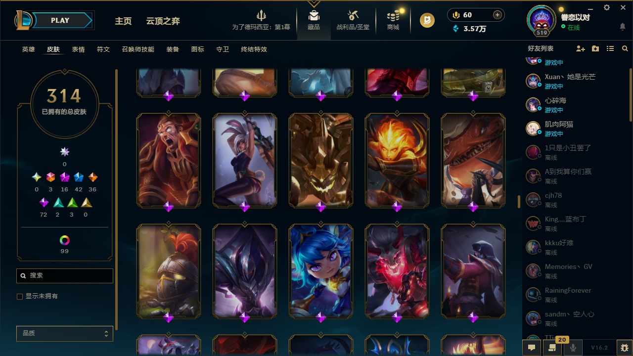 [16341696]3终极 16神话 42限定 36传说 72史诗 314皮肤 121炫彩 172英雄 可二次 可修改实名 【至臻】至臻 墨之影武者 亚索至臻 k/da 伊芙琳至臻 真实伤害 亚索至臻 灵能特工 伊泽瑞尔至臻 源计划:逆流 塞拉斯至臻 源计划:阴 劫至臻 飞升战神 潘森
