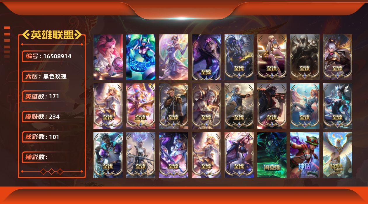 [16508914]3终极 20神话 30限定 37传说 34史诗 234皮肤 101炫彩 171英雄 可二次 可修改实名 【至臻】至臻 暗星女王 黛安娜至臻 魔域梦魇 泽丽至臻 k/da 伊芙琳至臻 腥红之月 亚托克斯至臻 源计划:正义 艾瑞莉娅至臻 索拉卡至臻 太空律动 节奏幻师 璐璐至臻 灵能特工 伊泽瑞尔至臻 女帝 黛安娜至臻 黑夜使者 凯隐至臻 西部魔影 泰隆至臻 海之歌 萨勒芬妮至臻 星之守护者 艾克至臻 星之守护者 辛德拉至臻 海珀利安小队 迦娜至臻 太空律动 魔音海妖 娜美至臻 星之守护者 索拉卡至臻 绝息圣堂 厄运小姐 【海克斯】摄魂 薇恩 【限定】玉剑传说 星仙子双城之战2 微光实验室 辛吉德创星之灵 璐璐 【情人节限定】觅心猫猫 悠米 【赛季限定皮】胜利之运 崔斯特胜利剑圣 易胜利女神 娑娜胜利巨口 克格莫 【冠军限定系列】s2 暗杀星 蒙多s2 暗杀星 慎s4 ssw 泰隆s4 ssw 炼金s5 skt t1 阿兹尔s11 edg 悠米 【冰雪节限定】冬季仙境 发条寒冬精灵 璐璐魄罗骑士 瑟庄妮圣诞老人 古拉加斯圣诞玩偶 波比雪默丁格 【万圣节限定】魅惑女巫 崔丝塔娜魅惑女巫 娜美南瓜头 费德提克 【年限】定海神针 孙悟空 【周年】女帝 格温12周年 劫10周年 凤凰 【其他限定/神话皮】十五周年纪念 希维尔冠军典狱长 锤石惊悚派对 阿木木女猎手 希维尔制胜金靴 李青