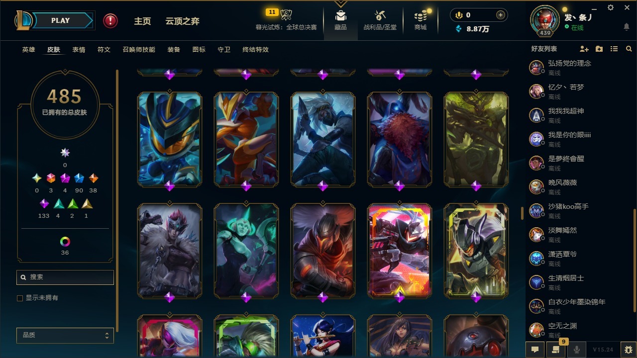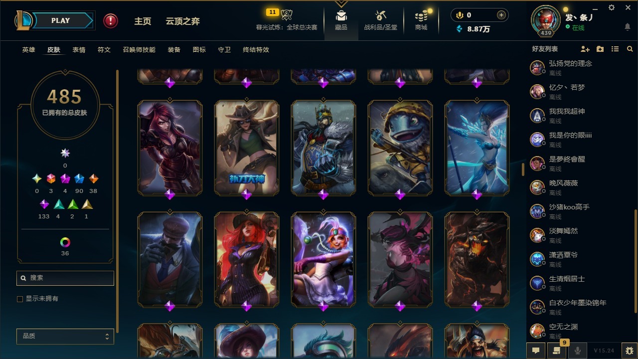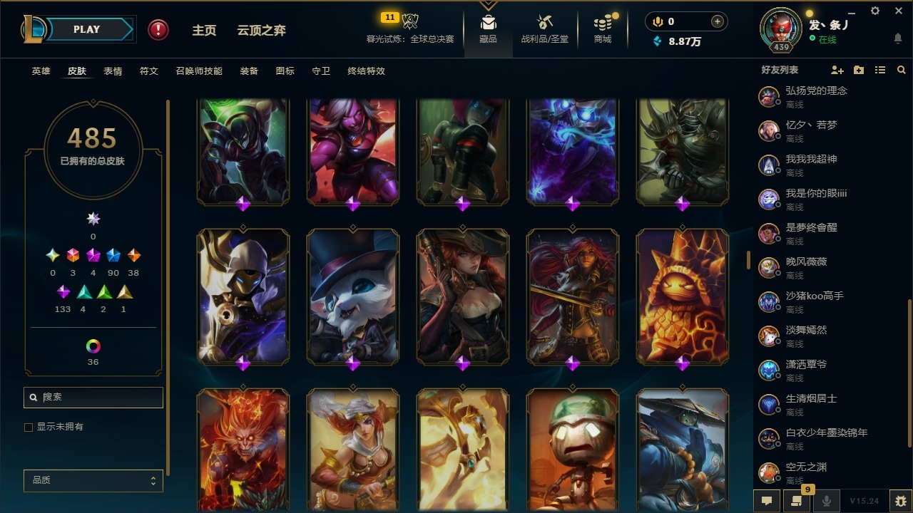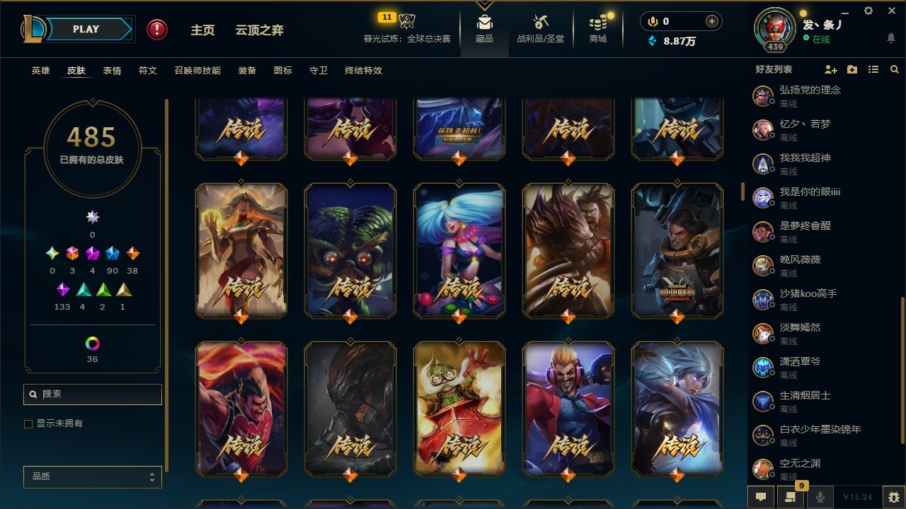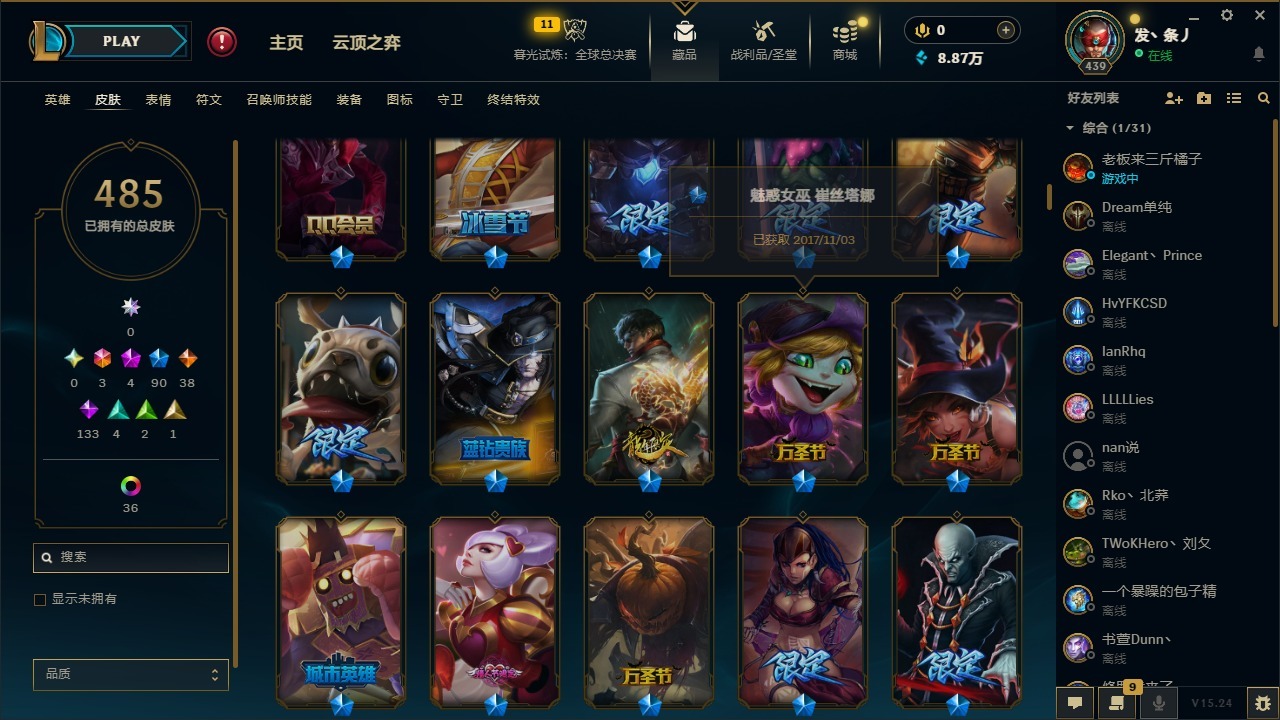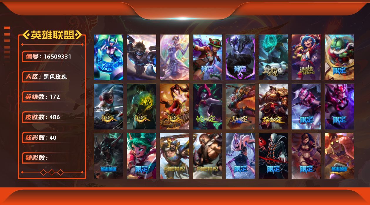 [16509331]3终极 4神话 90限定 39传说 133史诗 486皮肤 40炫彩 172英雄 可二次 可修改实名 【限定】奥斯曼大帝 普朗克 【情人节限定】觅心魔灵 奥利安娜 【赛季限定皮】胜利剑圣 易胜利之王 泰达米尔胜利呛神 格雷福斯胜利女神 奥莉安娜胜利之剑 亚托克斯胜利呛神 卢锡安 【冠军限定系列】s13 t1 李青s1fnc 嘉文四世s1fnc 卡尔萨斯s2 暗杀星 发条s2 暗杀星 蒙多s2 暗杀星 努努s2 暗杀星 慎s2 暗杀星 伊泽瑞尔s3 skt t1 劫s3 skt t1 李青s3 skt t1 婕拉s4 ssw 锤石s4 ssw 图奇s4 ssw 炼金s5 skt t1 雷克顿s5 skt t1 阿利斯塔s5 skt t1 滑板鞋s5 skt t1 阿兹尔s5 skt t1 蜘蛛 【冰雪节限定】阿木木:“主人不要我了”冰雪节 玛尔扎哈冰雪女神 辛德拉胡桃夹子 萨科平安夜女神 娑娜魄罗骑士 瑟庄妮圣诞开心鬼 提莫圣诞精灵 崔丝塔娜圣诞狂欢 努努和威朗普圣诞老人 古拉加斯圣诞糖果棒 厄运小姐圣诞玩偶 波比圣诞驯鹿 克格莫喜庆之树 茂凯幸福女神 乐芙兰雪默丁格英勇玩具兵 普朗克 【泳池派对】泳池派对 蕾欧娜泳池派对 格雷福斯泳池派对 厄运小姐泳池派对 雷克顿泳池派对 李青 【万圣节限定】鬼影森森 茂凯海贼 瑞兹魅惑女巫 崔丝塔娜魅惑女巫 奈德丽南瓜头 费德提克无头骑士 赫卡里姆 【年限】银龙裁决 泰隆龙的传人 李青古琴余韵 娑娜碧玉之牙 卡西奥佩娅替父从军 花木兰张辽 文远 【周年】2周年 德莱厄斯6周年 伊泽瑞尔10周年 安妮 【其他限定/神话皮】外星装甲 库奇十五周年纪念 希维尔奥德赛 吉格斯灰烬杀手 塞拉斯卧虎藏龙 贾克斯源代码 乐芙兰防暴天使 凯尔暗影 沃里克波比的巧克力工坊创战纪 希维尔都铎王朝 图奇防暴士兵 格雷福斯钢铁之翼 艾尼维亚冠军之箭 艾希冠军之矛 卡莉丝塔冠军之刃 锐雯 2016冠军之隐 劫红桃杰克 崔斯特机械迷城 加里奥惊悚派对 阿木木警用试作体k-9 内瑟斯克格汪蓝色忧郁 崔斯特蒙多蒙多女猎手 希维尔诺斯费拉图 弗拉基米尔糖果使徒 费德提克野兽猎人 德莱文野兽猎人 泰达