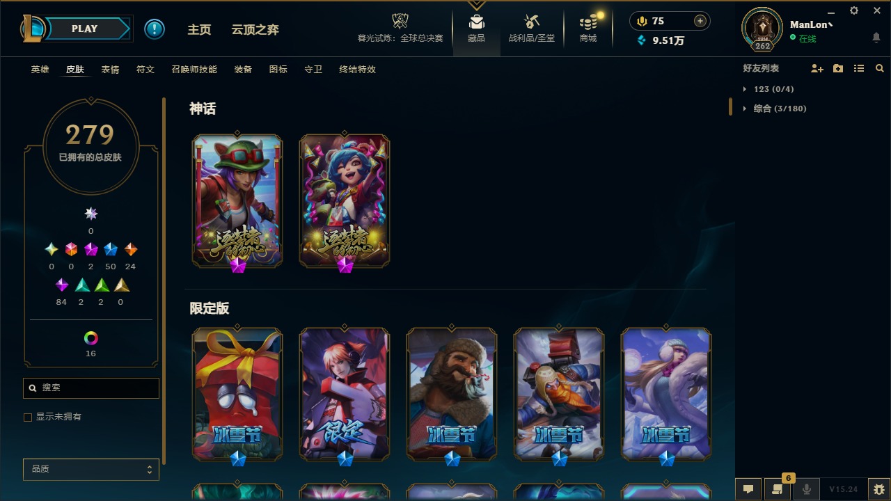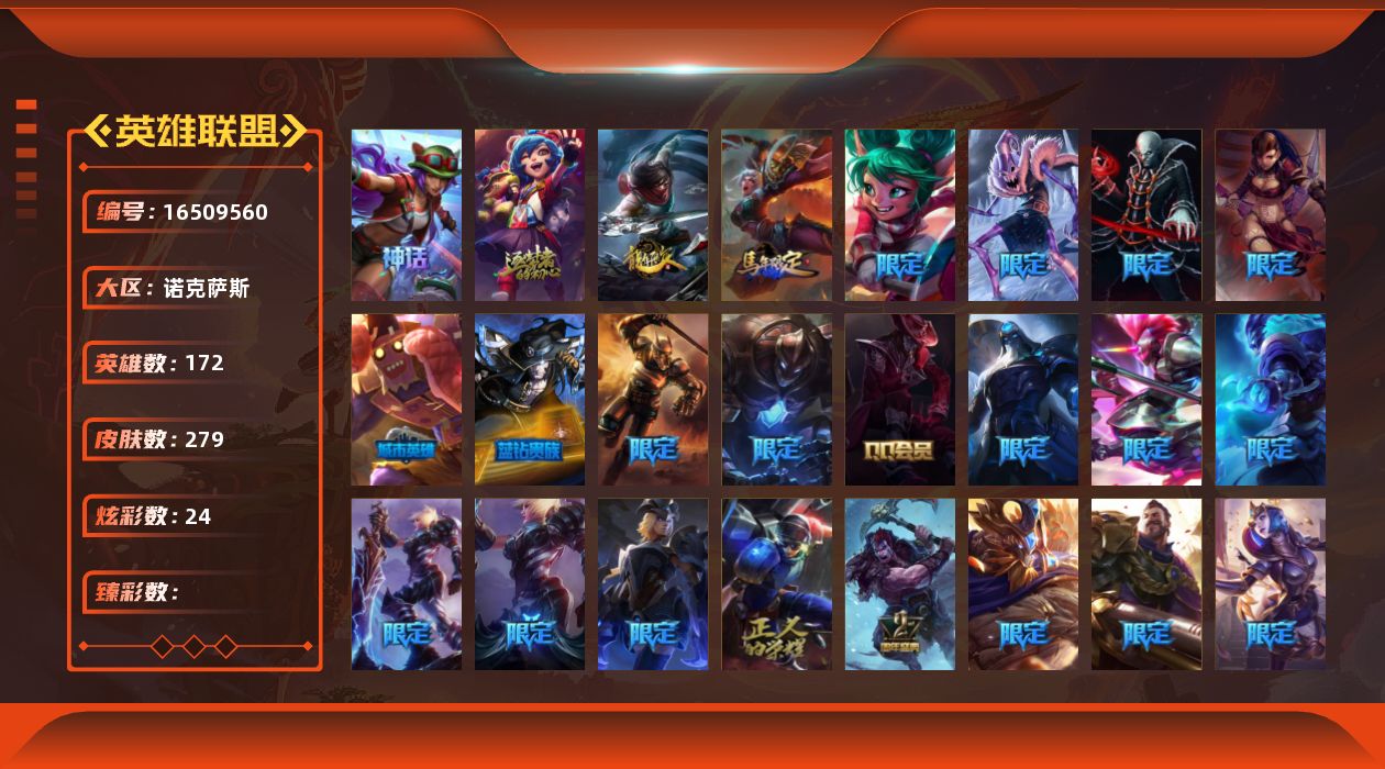 [16509560]2神话 50限定 24传说 84史诗 279皮肤 24炫彩 172英雄 可二次 可修改实名 【赛季限定皮】胜利之树 茂凯胜利呛神 格雷福斯胜利女神 奥莉安娜胜利之剑 亚托克斯胜利机器人 布里茨 【冠军限定系列】s13 t1 李青s1fnc 迦娜s2 暗杀星 伊泽瑞尔s3 skt t1 李青s4 ssw 雷恩加尔s5 skt t1 雷克顿s5 skt t1 阿利斯塔s5 skt t1 阿兹尔 【冰雪节限定】阿木木:“主人不要我了”冰雪节 格雷福斯冰雪节 辛吉德冰雪女神 辛德拉胡桃夹子 萨科平安夜女神 娑娜圣诞狂欢 努努和威朗普圣诞玩偶 波比圣诞驯鹿 克格莫喜庆之树 茂凯雪默丁格雪装 奈德丽英勇玩具兵 普朗克 【泳池派对】泳池派对 格雷福斯泳池派对 厄运小姐泳池派对 雷克顿泳池派对 李青 【万圣节限定】海贼 瑞兹南瓜头 费德提克 【年限】银龙裁决 泰隆替父从军 花木兰 【周年】2周年 德莱厄斯10周年 安妮 【其他限定/神话皮】十五周年纪念 希维尔防暴天使 凯尔波比的巧克力工坊电玩战魂 赫卡里姆冠军典狱长 锤石冠军之刃 锐雯冠军之刃 锐雯 2016冠军之血 希瓦娜冠军之志 瑞兹红桃杰克 崔斯特机械迷城 加里奥警用试作体k-9 内瑟斯蓝色忧郁 崔斯特蒙多蒙多女猎手 希维尔诺斯费拉图 弗拉基米尔糖果使徒 费德提克