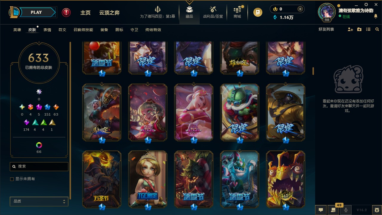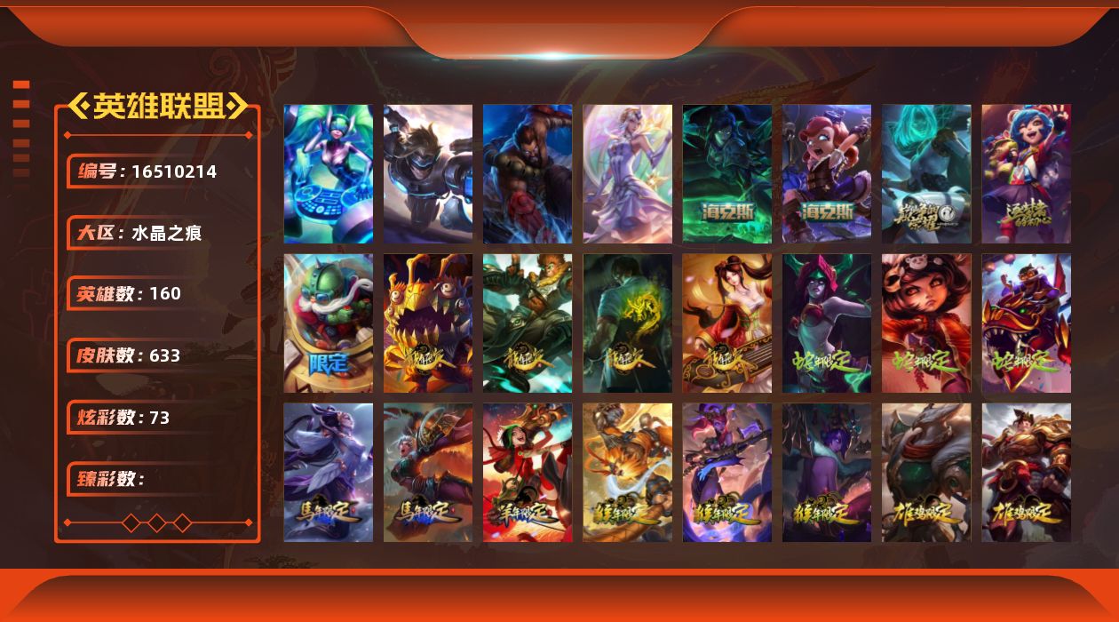 [16510214]4终极 5神话 151限定 63传说 174史诗 633皮肤 73炫彩 160英雄 可二次 可修改实名 【海克斯】摄魂 薇恩海克斯 安妮 【限定】冰原狙击 凯特琳钢铁军团 拉克丝奥斯曼大帝 泰达米尔舞会公主 安妮 【情人节限定】觅心猎手 薇恩觅心魔灵 奥利安娜觅心女王 艾希觅心游侠 卢锡安觅心之翼 奎因甜心宝贝 安妮甜心宝贝 娑娜 【赛季限定皮】胜利女神 奥莉安娜胜利之剑 亚托克斯 【冠军限定系列】s13 t1 李青s1fnc 酒桶s1fnc 迦娜s1fnc 嘉文四世s1fnc 卡尔萨斯s1fnc 库奇s2 暗杀星 发条s2 暗杀星 蒙多s2 暗杀星 努努s2 暗杀星 慎s2 暗杀星 伊泽瑞尔s3 skt t1 劫s3 skt t1 贾克斯s3 skt t1 薇恩s3 skt t1 李青s3 skt t1 婕拉s4 ssw 锤石s4 ssw 雷恩加尔s4 ssw 泰隆s4 ssw 图奇s4 ssw 炼金s5 skt t1 雷克顿s5 skt t1 阿利斯塔s5 skt t1 瑞兹s5 skt t1 滑板鞋s5 skt t1 阿兹尔s5 skt t1 蜘蛛s6 skt t1 奥拉夫s6 skt t1 烬s6 skt t1 艾克s6 skt t1 球女s6 skt t1 扎克s6 skt t1 娜美 【冰雪节限定】阿木木:“主人不要我了”冰雪风暴 希维尔冰雪节 格雷福斯冰雪节 玛尔扎哈冰雪节 辛吉德冰雪女神 辛德拉冰雪兽 纳尔冬季仙境 发条冬季仙境 卡尔玛寒冬精灵 璐璐胡桃夹子 萨科平安夜女神 娑娜魄罗骑士 瑟庄妮圣诞开心鬼 提莫圣诞精灵 崔丝塔娜圣诞狂欢 基兰圣诞狂欢 努努和威朗普圣诞老人 布隆圣诞老人 古拉加斯圣诞糖果棒 厄运小姐圣诞玩偶 波比圣诞驯鹿 克格莫喜庆之树 茂凯邪恶圣诞老人 维迦幸福女神 乐芙兰雪球也能爆炸!吉格斯雪默丁格雪装 奈德丽英勇玩具兵 普朗克 【泳池派对】泳池派对 吉格斯泳池派对 蕾欧娜泳池派对 厄运小姐泳池派对 菲奥娜泳池派对 凯特琳泳池派对 李青泳池派对 塔里克 【万圣节限定】鬼影森森 茂凯大魔王 提莫鬼影重重 魔腾海贼 瑞兹灵魂收割者 索拉卡魅惑女巫 崔丝塔娜魅惑女巫 莫甘