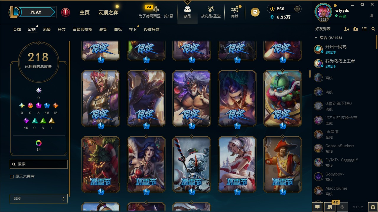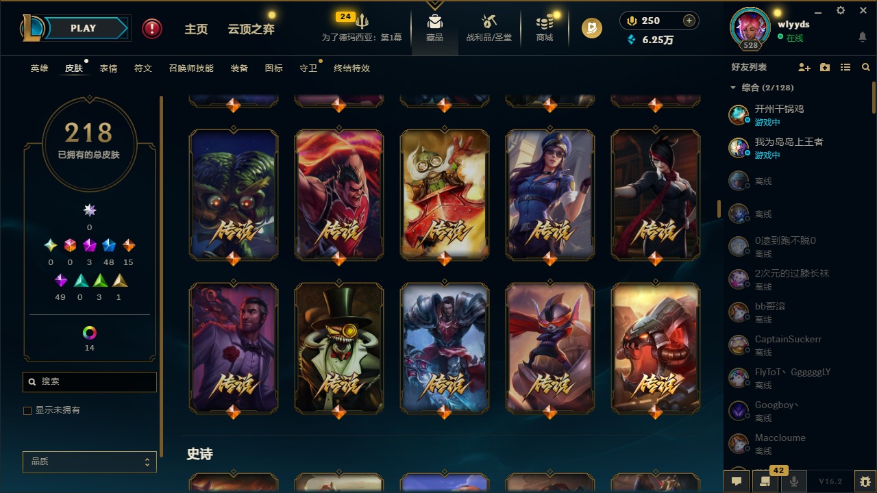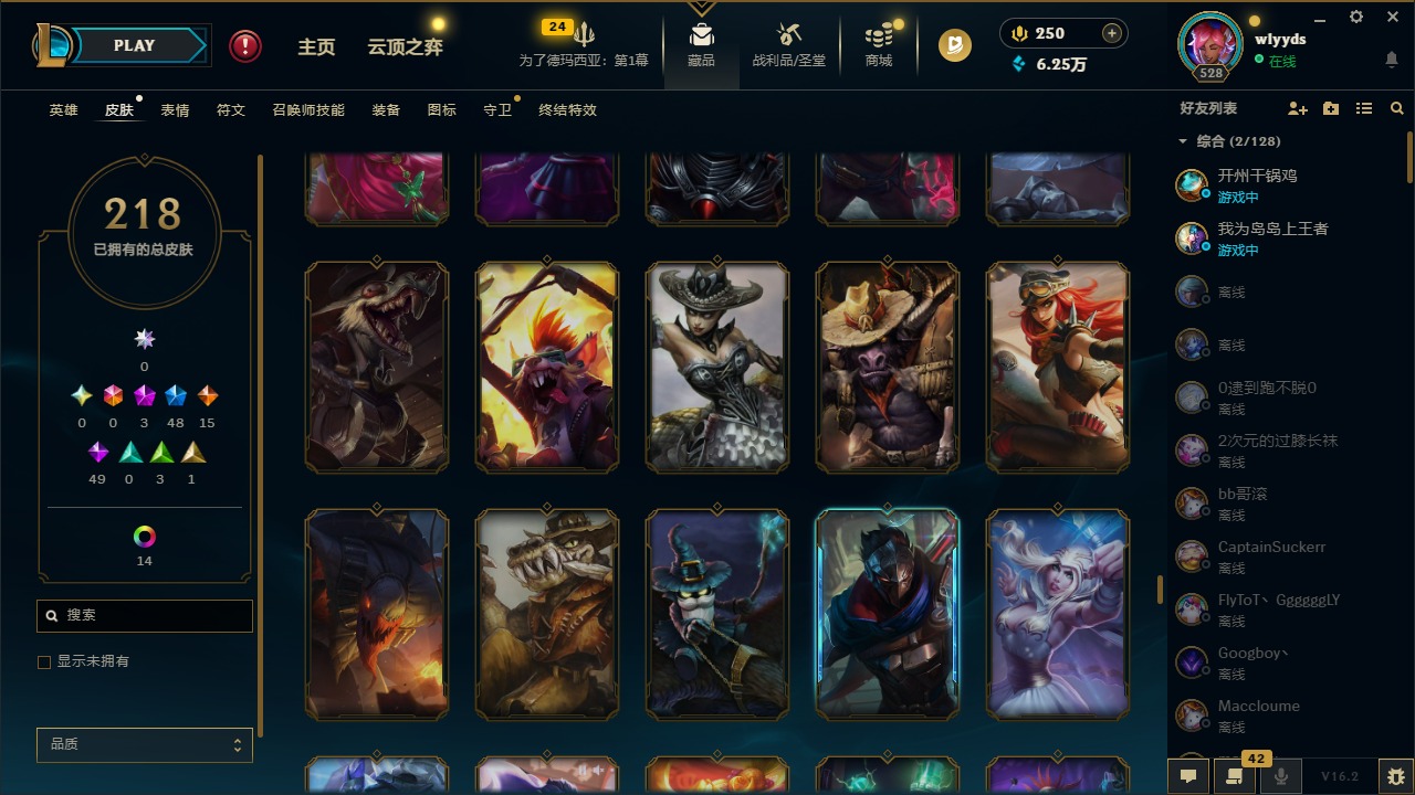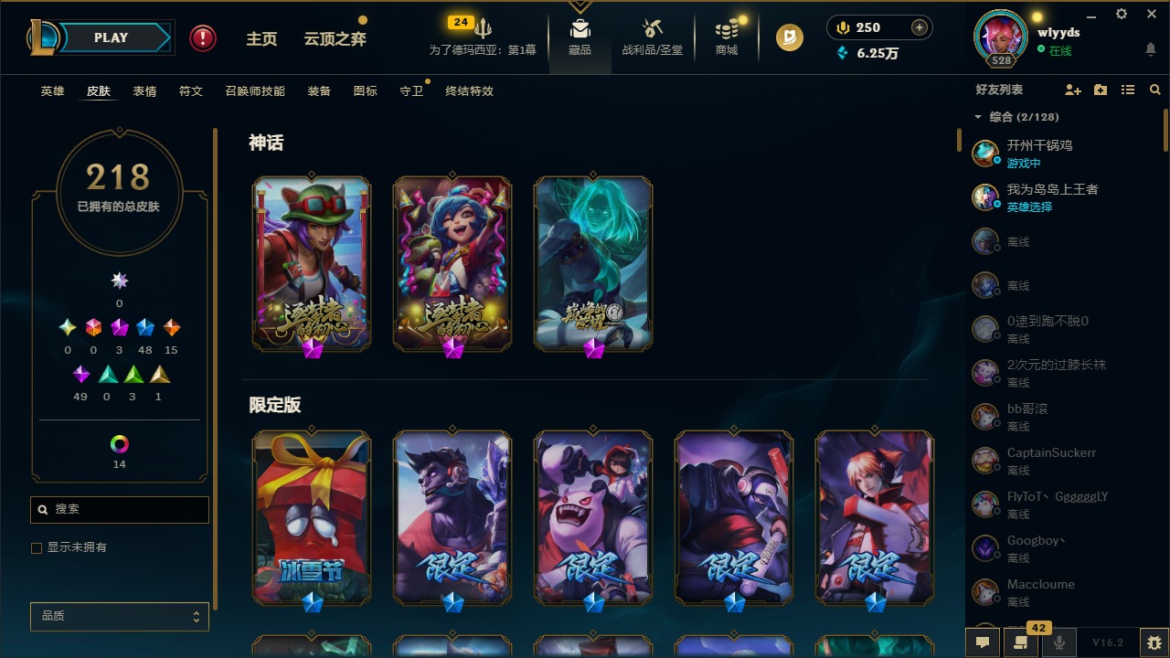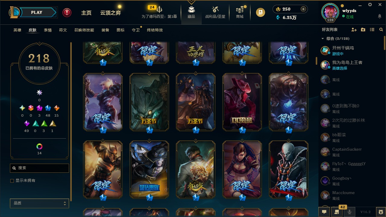 [16508765]3神话 48限定 15传说 49史诗 218皮肤 15炫彩 172英雄 可二次 可修改实名 【赛季限定皮】胜利行刑官 德莱文胜利凤凰 艾尼维亚胜利之王 泰达米尔胜利女神 希维尔胜利女神 奥莉安娜胜利之剑 亚托克斯胜利机器人 布里茨胜利女神 瑟庄妮 【冠军限定系列】s2 暗杀星 蒙多s2 暗杀星 努努s2 暗杀星 慎s2 暗杀星 伊泽瑞尔s3 skt t1 劫s4 ssw 雷恩加尔 【冰雪节限定】阿木木:“主人不要我了”冰雪节 玛尔扎哈冰雪节 辛吉德冰雪女神 辛德拉魄罗骑士 瑟庄妮圣诞糖果棒 厄运小姐圣诞玩偶 波比圣诞驯鹿 克格莫喜庆之树 茂凯幸福女神 乐芙兰雪默丁格雪装 奈德丽英勇玩具兵 普朗克 【泳池派对】泳池派对 李青 【万圣节限定】鬼影森森 茂凯海贼 瑞兹 【年限】定海神针 孙悟空龙的传人 李青神龙烈焰 金克丝 【周年】10周年 安妮 【其他限定/神话皮】外星装甲 库奇十五周年纪念 希维尔源代码 乐芙兰防暴天使 凯尔暗影 沃里克波比的巧克力工坊都铎王朝 图奇钢铁之翼 艾尼维亚冠军之刃 锐雯冠军之刃 锐雯 2016红桃杰克 崔斯特机械迷城 加里奥警用试作体k-9 内瑟斯蓝色忧郁 崔斯特女猎手 希维尔诺斯费拉图 弗拉基米尔糖果使徒 费德提克
