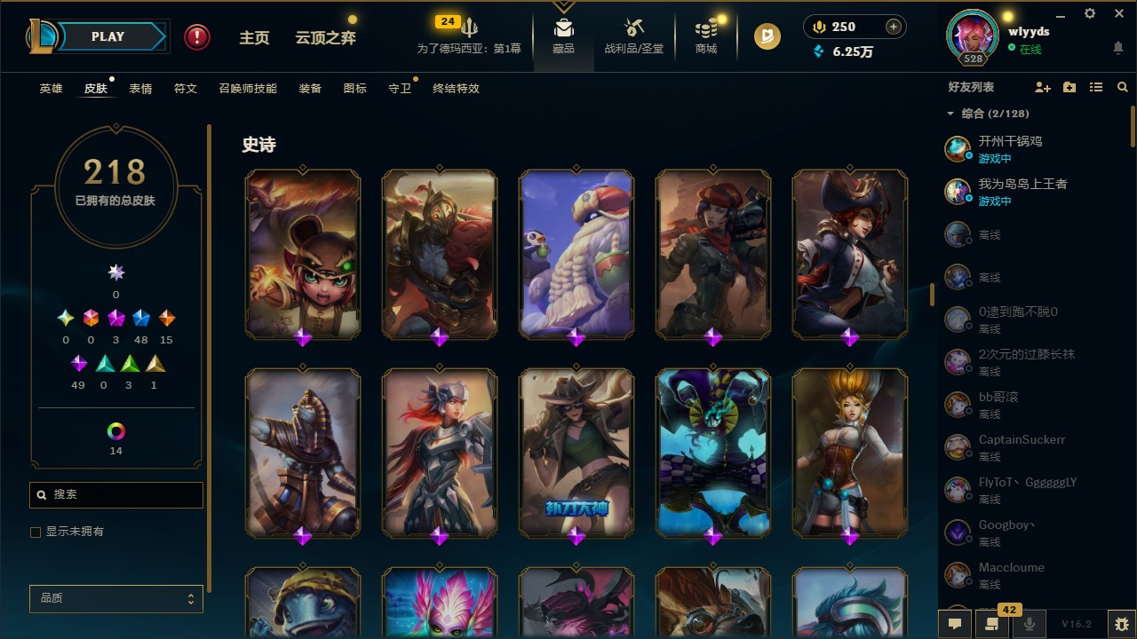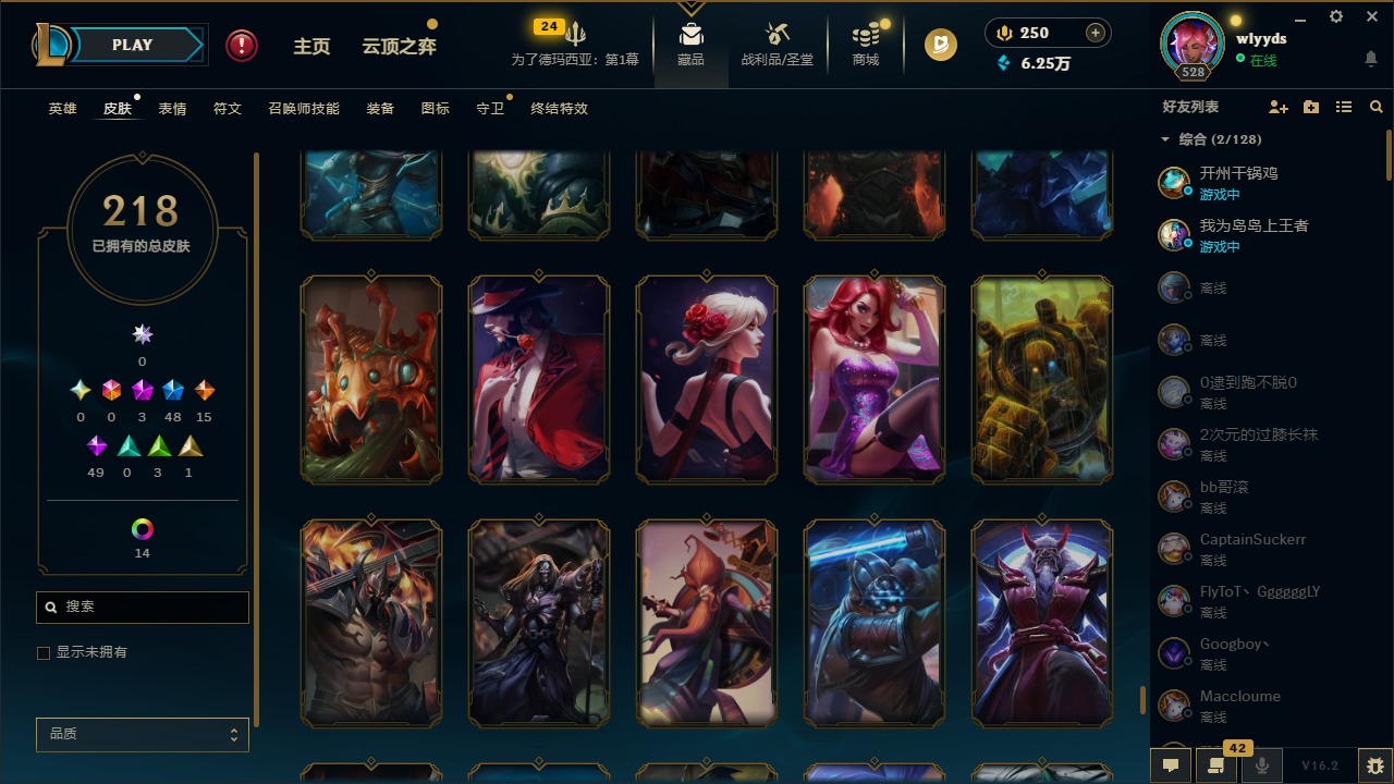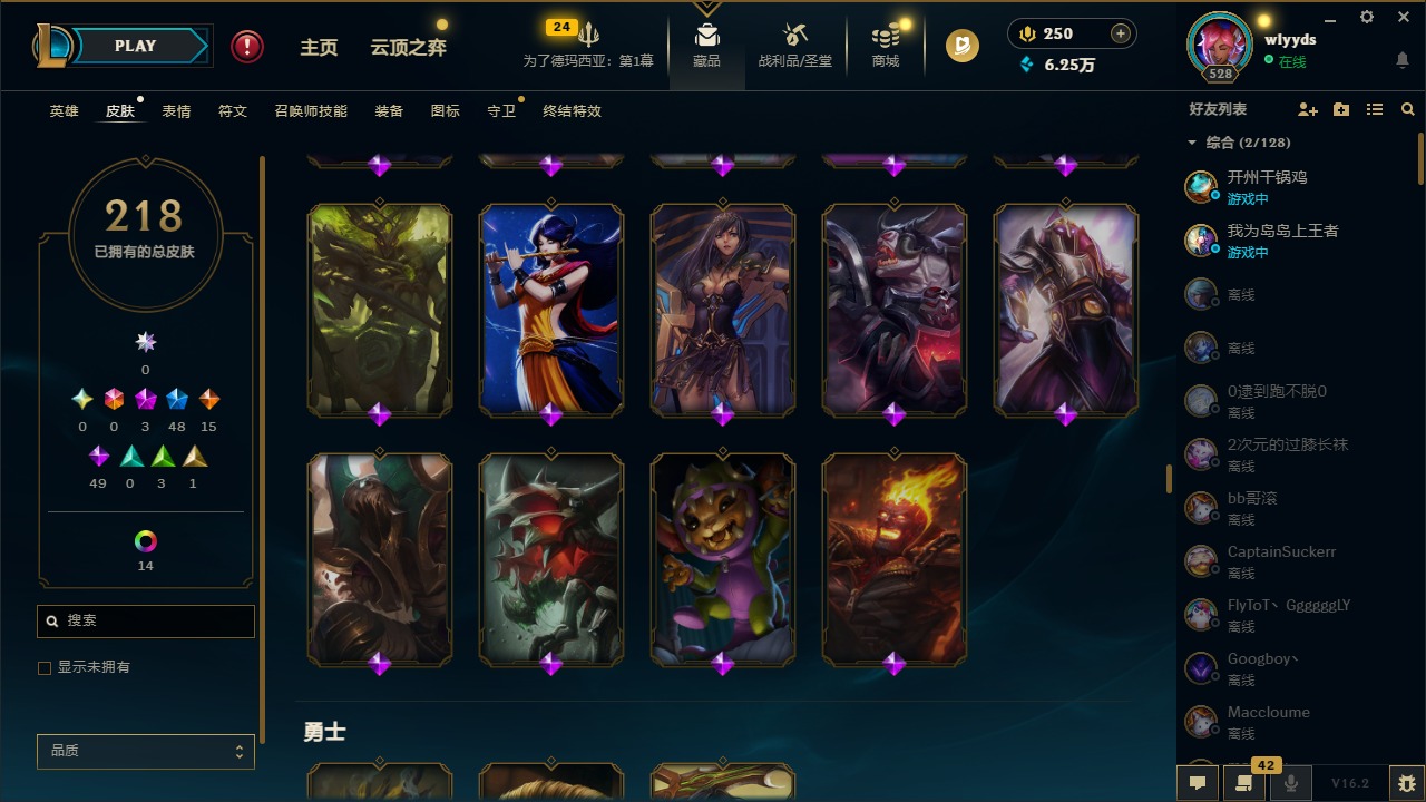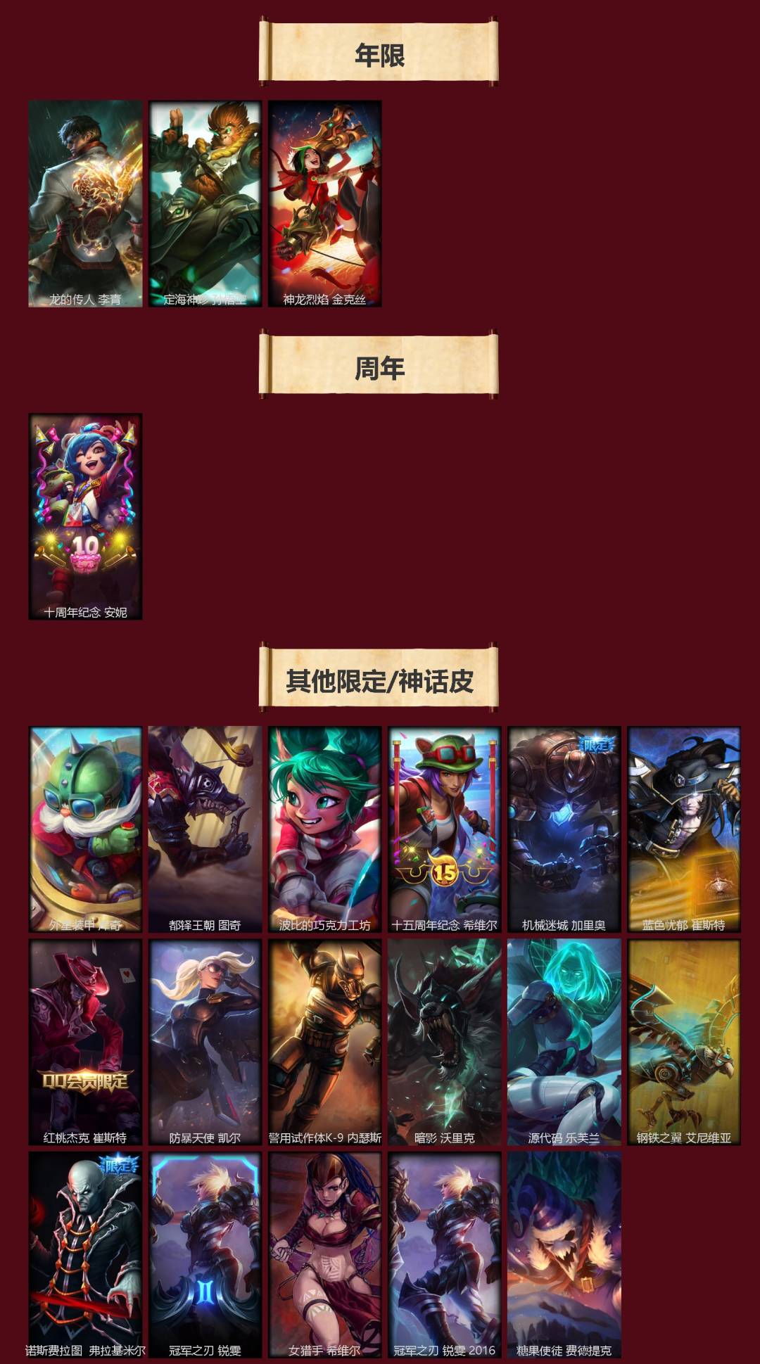 [16508765]3神话 48限定 15传说 49史诗 218皮肤 15炫彩 172英雄 可二次 可修改实名 【赛季限定皮】胜利行刑官 德莱文胜利凤凰 艾尼维亚胜利之王 泰达米尔胜利女神 希维尔胜利女神 奥莉安娜胜利之剑 亚托克斯胜利机器人 布里茨胜利女神 瑟庄妮 【冠军限定系列】s2 暗杀星 蒙多s2 暗杀星 努努s2 暗杀星 慎s2 暗杀星 伊泽瑞尔s3 skt t1 劫s4 ssw 雷恩加尔 【冰雪节限定】阿木木:“主人不要我了”冰雪节 玛尔扎哈冰雪节 辛吉德冰雪女神 辛德拉魄罗骑士 瑟庄妮圣诞糖果棒 厄运小姐圣诞玩偶 波比圣诞驯鹿 克格莫喜庆之树 茂凯幸福女神 乐芙兰雪默丁格雪装 奈德丽英勇玩具兵 普朗克 【泳池派对】泳池派对 李青 【万圣节限定】鬼影森森 茂凯海贼 瑞兹 【年限】定海神针 孙悟空龙的传人 李青神龙烈焰 金克丝 【周年】10周年 安妮 【其他限定/神话皮】外星装甲 库奇十五周年纪念 希维尔源代码 乐芙兰防暴天使 凯尔暗影 沃里克波比的巧克力工坊都铎王朝 图奇钢铁之翼 艾尼维亚冠军之刃 锐雯冠军之刃 锐雯 2016红桃杰克 崔斯特机械迷城 加里奥警用试作体k-9 内瑟斯蓝色忧郁 崔斯特女猎手 希维尔诺斯费拉图 弗拉基米尔糖果使徒 费德提克