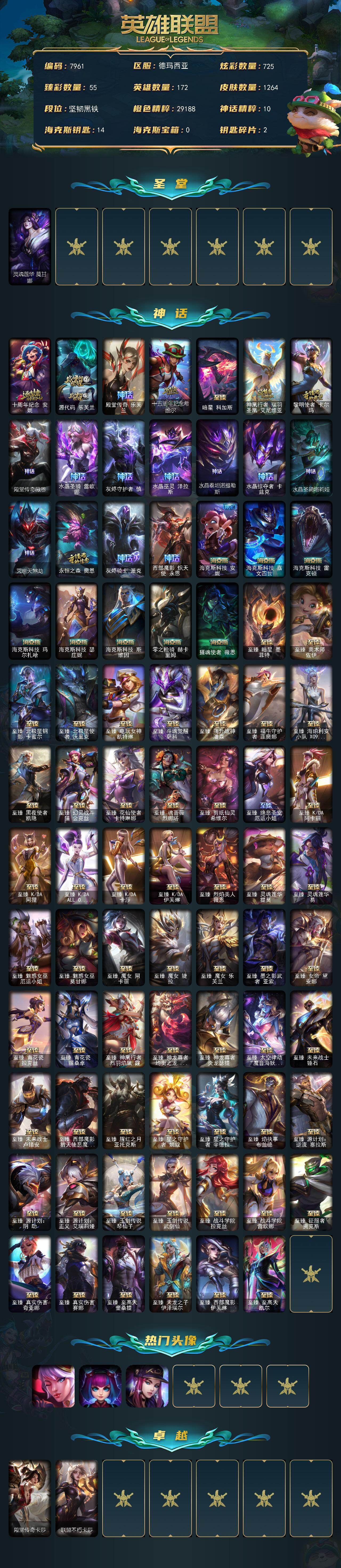【签名卡莎 圣堂莫甘娜 氪金神话永恩 皇冠号】未定级段位-172英雄-1264皮肤-725炫彩-6终极-95神话-226限定-122传说-196史诗 【圣堂皮肤】:灵魂莲华莫甘娜 【神话皮肤】:十周年纪念安妮,源代码乐芙兰,殿堂传奇乐芙兰,十五周年纪念希维尔,暗星科加斯,神凰行者瑞羽圣凰艾尼维亚,黎明使者卡尔玛,殿堂传奇薇恩,水晶圣骑蕾欧娜,灰烬守护者慎,水晶巫灵泽拉斯,水晶泰坦诺提勒斯,水晶掠夺者卡兹克,水晶圣骑塔莉娅,灭世天煞劫,永恒之森奥恩,灰烬骑士派克,西部魔影炽天使永恩,海克斯科技安妮,海克斯科技嘉文四世,海克斯科技雷克顿,海克斯科技玛尔扎哈,海克斯科技瑟庄妮,海克斯科技斯维因,零之呛骑赫卡里姆,摄魂使者薇恩,至臻征服者贾克斯,至臻真实伤害奇亚娜,至臻真实伤害赛娜,至臻至高天奎桑提,至臻天龙之子伊泽瑞尔,至臻西部魔影伊芙琳,至臻至高天凯尔,至臻暗星墨菲特,至臻奥术师佐伊,至臻北极星钢影卡蜜尔,至臻北极星使者沃里克,至臻电玩女神凯特琳,至臻斗魂觉醒萨科,至臻飞升战神潘森,至臻福牛守护者菲奥娜,至臻海珀利安小队x09星环灵风迦娜,至臻黑夜使者凯隐,至臻幻灵战斗猫金克丝,至臻花仙使者卡特琳娜,至臻魂蔷薇烈娜塔,至臻剪纸仙灵希维尔,至臻绝息圣堂厄运小姐,至臻kda阿卡丽,至臻kda阿狸,至臻kdaallout卡莎,至臻kda卡莎,至臻kda伊芙琳,至臻烈焰美人薇恩,至臻灵魂莲华提莫,至臻灵魂莲华易,至臻魅惑女巫厄运小姐,至臻魅惑女巫莫甘娜,至臻魔女阿卡丽,至臻魔女婕拉,至臻魔女乐芙兰,至臻墨之影武者亚索,至臻女帝黛安娜,至臻青花瓷拉克丝,至臻青花瓷丽桑卓,至臻神凰行者烈羽焰凰霞,至臻神龙尊者均衡之龙沃利贝尔,至臻神龙尊者炎龙瑟提,至臻太空律动魔音海妖娜美,至臻未来战士锤石,至臻未来战士卢锡安,至臻西部魔影猎天使恶魔泰隆,至臻腥红之月亚托克斯,至臻星之守护者妮蔻,至臻星之守护者辛德拉,至臻焰执事布兰德,至臻源计划逆流塞拉斯,至臻源计划阴劫,至臻源计划正义艾瑞莉娅,至臻玉剑传说琴仙子,至臻玉剑传说武剑仙,至臻战斗学院拉克丝,至臻战斗学院蕾欧娜 【热门头像】:觅心之翼奎因头像,银河魔装机神安妮头像,kda阿卡丽头像 【卓越皮肤】:殿堂传奇卡莎,联盟不朽卡莎 【至臻皮肤】:至臻魔女乐芙兰,至臻至高天凯尔,至臻灵魂莲华易,至臻剪纸仙灵希维尔,至臻灵魂莲华提莫,至臻北极星使者沃里克,至臻魅惑女巫厄运小姐,至臻绝息圣堂厄运小姐,至臻征服者贾克斯,至臻魅惑女巫莫甘娜,至臻kda伊芙琳,至臻西部魔影伊芙琳,至臻斗魂觉醒萨科,至臻玉剑传说琴仙子娑娜,至臻源计划正义艾瑞莉娅,至臻海珀利安小队x09星环灵风迦娜,至臻电玩女神凯特琳,至臻双城之战2指挥官凯特琳,至臻暗星墨菲特,至臻花仙使者卡特琳娜,至臻黑色玫瑰假面舞会卡特琳娜,至臻暗裔英雄嘉文四世,至臻焰执事布兰德,至臻烈焰美人薇恩,至臻飞升战神潘森,至臻天龙之子伊泽瑞尔,至臻kda阿卡丽,至臻魔女阿卡丽,至臻战斗学院蕾欧娜,至臻幻灵狮心蕾欧娜,至臻西部魔影猎天使恶魔泰隆,至臻玉剑传说武剑仙锐雯,至臻战斗学院拉克丝,至臻青花瓷拉克丝,至臻灵魂莲华拉克丝,至臻kda阿狸,至臻神龙尊者均衡之龙沃利贝尔,至臻福牛守护者菲奥娜,至臻t1杰斯,至臻青花瓷丽桑卓,至臻女帝黛安娜,至臻暗星女王黛安娜,至臻星之守护者辛德拉,至臻黑夜使者凯隐,至臻奥术师佐伊,至臻永恒星灵佐伊,至臻魔女婕拉,至臻kda卡莎,至臻kdaallout卡莎,至臻墨之影武者亚索,至臻北极星钢影卡蜜尔,至臻魔域梦魇泽丽,至臻幻灵战斗猫金克丝,至臻真实伤害赛娜,至臻未来战士卢锡安,至臻源计划阴劫,至臻灵魂莲华劫,至臻真实伤害奇亚娜,至臻战斗学院奇亚娜,至臻腥红之月亚托克斯,至臻太空律动魔音海妖娜美,至臻未来战士锤石,至臻神凰行者烈羽焰凰霞,至臻源计划逆流塞拉斯,至臻星之守护者妮蔻,至臻北极星神梅尔,至臻神龙尊者炎龙瑟提,至臻魂蔷薇烈娜塔,至臻至高天奎桑提 【臻彩皮肤】:皓彩霓裳嫦娥,剪纸仙灵嘉文四世日进斗金,定海神珍孙悟空四海扬威,天龙之子卡莎飞龙乘云,无畏骑士瑟庄妮赤子初心,冰雪节格雷福斯炫金,墨之影武者亚索金墨耀影,征服者韦鲁斯炫金,冠军之矛卡莉丝塔凯旋圣装,墨之影武者易金墨耀影,偶像歌手阿狸极地雪莲,灵魂莲华阿狸春晓,神龙尊者圣龙李青龙腾云起,泳池派对凯特琳粉红冰川,女帝厄运小姐纹章之刻印敏锐,西部魔影永恩忠诚,幻灵白鸽萨勒芬妮梦幻强袭,玉剑传说无影竞星,玉剑传说舞剑仙承影,女帝卡特琳娜纹章之刻印英勇,西部天使赛娜神选天使长,源计划联合艾希红莲之弓,黎明使者锐雯黑夜使者,幻灵战斗猫金克丝梦幻强袭,星之守护者金克丝黑洞,咖啡甜心兰博核桃巴菲,灰烬守护者慎余烬觉醒,泳池派对奥莉安娜优雅珠光鲸,灵魂莲华锐雯流火,星之守护者霞烈羽,最终boss维迦里大魔王,可爱可爱粉红红布里茨,殿堂传奇乐芙兰登神,战斗学院盖伦不死鸟,魔女阿卡丽虚荣,净雪之月莫甘娜冬虹,幻灵战斗兔阿萝拉梦幻强袭,玉剑传说星仙子丁香,水晶玫瑰迦娜甜蜜花蕾,霸天异形卡兹克黄金异端,红莲之刃锐雯,北极星守护者卢锡安圣洁光带,咖啡甜心璐璐海盐泡芙,王国机神白虎贾克斯云霄,西部魔影执行人卡特琳娜纯洁,北极星钢影卡蜜尔智慧纽带,心之钢伊泽瑞尔天纵才华,灌篮高手德莱厄斯金色神话 【年限皮肤】: