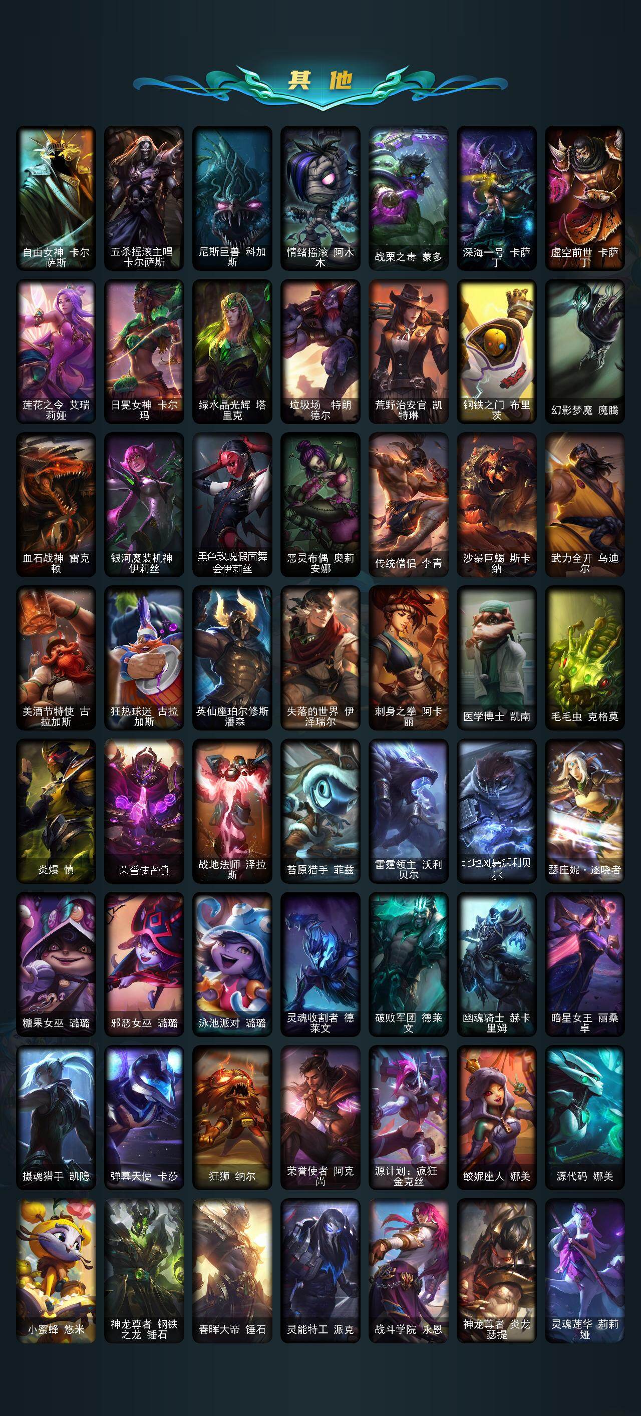 【ldc2414】172英雄/139皮肤/3神话/15限定/56炫彩/9传说/39史诗/钻石/十周年纪念安妮/源代码乐芙兰/十五周年纪念希维尔/暗杀星慎/胜利之剑亚托克斯/胜利呛神卢锡安/胜利凤凰艾尼维亚/胜利之王泰达米尔/胜利巨口克格莫/胜利女神娑娜/胜利剑圣易/胜利之运崔斯特/胜利女神菲奥娜/鬼影重重魔腾/暗影沃里克/都铎王朝图奇/防暴天使凯尔/血石领主弗拉基米尔/战场女武神凯尔/恶魔男爵瑞兹/电玩女神娑娜/屠龙勇士潘森/死亡骑士盖伦/苍穹之光韦鲁斯/宇航员诺提勒斯/暗星锤石/翼骑统领赵信/圣光审判凯尔/天人合一易/法国皇室厄运小姐/黑帮狂花厄运小姐/死神卡尔萨斯/熔火之心拉莫斯/武动巅峰萨科/战争血统蒙多/铁血狙击手凯特琳/凯旋英雄嘉文四世/死亡绽放伊莉丝/防弹武僧李青/地下拳王李青/深海妖姬卡西奥佩娅/法老王朝内瑟斯/艳后奈德丽/铁血猎手奈德丽/血色之锤波比/死亡领主莫德凯撒/实习护士阿卡丽/刺客信条凯南/铁甲雄心盖伦/腥红之月泰隆/深海怪鱼克格莫/战国大名慎/钢之逆鳞希瓦娜/银河魔装机神菲兹/沙之守护卡兹克/生化骑士德莱厄斯/无限烈焰黛安娜/腥红之月黛安娜/亚特兰蒂斯辛德拉/弗雷尔卓德塔莉垭/源代码卡蜜尔/屠龙勇士布隆/黑帮狂花金克丝/冲击之刃劫/虚空使者俄洛伊/死亡骑士内瑟斯/拆弹专家黑默丁格/烈焰猛士奥拉夫/小红帽安妮/探戈灵魂崔斯特/弗拉基米尔伯爵/弗拉基米尔侯爵/荒野镖客阿利斯塔/武仙座海格力斯赛恩/奥德赛希维尔/咖啡甜心希维尔/森林女神索拉卡/黑暗骑士沃里克/脏兮兮努努和威朗普/特工狂花厄运小姐/黎明使者莫甘娜/黑色天灾辛吉德/自由女神卡尔萨斯/五杀摇滚主唱卡尔萨斯/尼斯巨兽科加斯/情绪摇滚阿木木/战栗之毒蒙多/深海一号卡萨丁/虚空前世卡萨丁/莲花之令艾瑞莉娅/日冕女神卡尔玛/绿水晶光辉塔里克/垃圾场特朗德尔/荒野治安官凯特琳/钢铁之门布里茨/幻影梦魔魔腾/血石战神雷克顿/银河魔装机神伊莉丝/黑色玫瑰假面舞会伊莉丝/恶灵布偶奥莉安娜/传统僧侣李青/沙暴巨蝎斯卡纳/武力全开乌迪尔/美酒节特使古拉加斯/狂热球迷古拉加斯/英仙座珀尔修斯潘森/失落的世界伊泽瑞尔/刺身之拳阿卡丽/医学博士凯南/毛毛虫克格莫/炎爆慎/荣誉使者慎/战地法师泽拉斯/苔原猎手菲兹/雷霆领主沃利贝尔/北地风暴沃利贝尔/瑟庄妮逐晓者/糖果女巫璐璐/邪恶女巫璐璐/泳池派对璐璐/灵魂收割者德莱文/破败军团德莱文/幽魂骑士赫卡里姆/暗星女王丽桑卓/摄魂猎手凯隐/弹幕天使卡莎/狂狮纳尔/荣誉使者阿克尚/源计划疯狂金克丝/鲛妮座人娜美/源代码娜美/小蜜蜂悠米/神龙尊者钢铁之龙锤石/春晖大帝锤石/灵能特工派克/战斗学院永恩/神龙尊者炎龙瑟提/灵魂莲华莉莉娅