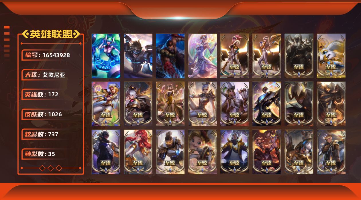 [16543928]【店主推荐捡漏号】未定级段位-172英雄-1026皮肤-737炫彩-4终极-53神话-173限定-99传说-212史诗 【神话皮肤】:十周年纪念安妮,源代码乐芙兰,十五周年纪念希维尔,暗星科加斯,神凰行者瑞羽圣凰艾尼维亚,水晶掠夺者卡兹克,海克斯科技崔丝塔娜,海克斯科技卡萨丁,海克斯科技克格莫,海克斯科技雷克顿,海克斯科技斯维因,恐惧新星德莱厄斯,摄魂使者薇恩,至臻真实伤害赛娜,至臻真实伤害亚索,至臻青花瓷千珏,至臻奥术师佐伊,至臻电玩女神凯特琳,至臻电玩女神凯特琳2022,至臻斗魂觉醒派克,至臻海之歌萨勒芬妮,至臻黑夜使者李青,至臻黑夜使者李青2022,至臻kda阿卡丽,至臻kda阿卡丽2022,至臻kda阿狸,至臻kda卡莎,至臻kda卡莎2022,至臻烈焰美人薇恩,至臻烈焰美人薇恩2022,至臻灵能特工伊泽瑞尔,至臻魅惑女巫厄运小姐,至臻魔女乐芙兰,至臻女帝黛安娜,至臻绒毛菲兹,至臻绒毛菲兹2022,至臻神龙尊者均衡之龙沃利贝尔,至臻神龙尊者炎龙瑟提,至臻王国机神玄武盖伦,至臻未来战士锤石,至臻未来战士锤石2022,至臻未来战士卢锡安,至臻西部魔影猎天使恶魔泰隆,至臻腥红之月亚托克斯,至臻腥红之月亚托克斯2022,至臻星之守护者艾克,至臻星之守护者妮蔻,至臻源计划正义艾瑞莉娅,至臻源计划正义艾瑞莉娅2022,至臻玉剑传说武剑仙,至臻玉剑传说武剑仙2022,至臻战斗学院拉克丝,至臻战斗学院拉克丝2022 【珍稀头像】:至爱的鹿头像 【热门头像】:爱情之歌头像,觅心之翼奎因头像,玉剑传说舞剑仙头像 【至臻皮肤】:至臻魔女乐芙兰,至臻魅惑女巫厄运小姐,至臻源计划正义艾瑞莉娅,至臻源计划:正义艾瑞莉娅2022,至臻电玩女神凯特琳,至臻电玩女神凯特琳2022,至臻黑夜使者李青,至臻黑夜使者李青2022,至臻烈焰美人薇恩,至臻烈焰美人薇恩2022,至臻灵能特工伊泽瑞尔,至臻kda阿卡丽,至臻kda阿卡丽2022,至臻王国机神玄武盖伦,至臻西部魔影猎天使恶魔泰隆,至臻玉剑传说武剑仙锐雯,至臻玉剑传说武剑仙2022,至臻战斗学院拉克丝,至臻战斗学院拉克丝2022,至臻kda阿狸,至臻绒毛菲兹,至臻绒毛菲兹2022,至臻神龙尊者均衡之龙沃利贝尔,至臻女帝黛安娜,至臻奥术师佐伊,至臻kda卡莎,至臻kda卡莎2022,至臻海之歌萨勒芬妮,至臻