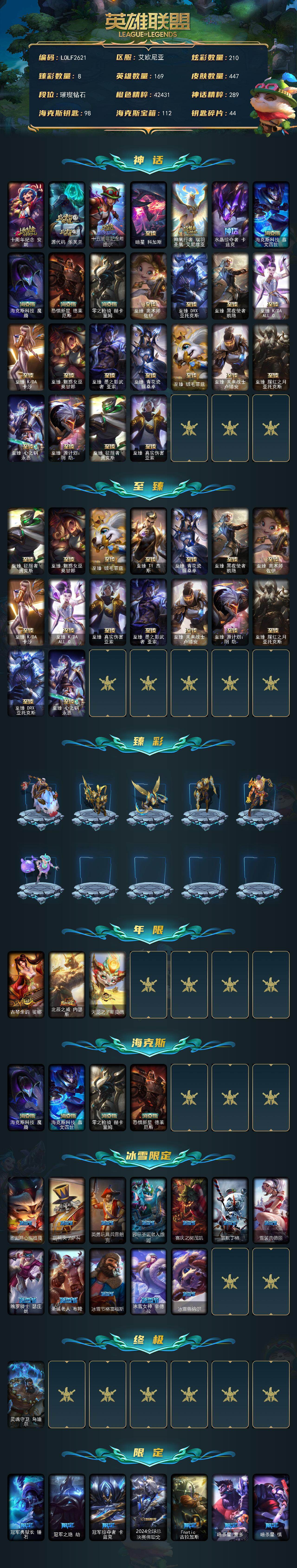 【lolf2621】169英雄/447皮肤/1终极/26神话/61限定/8臻彩/210炫彩/44传说/102史诗/钻石/十周年纪念安妮/源代码乐芙兰/十五周年纪念希维尔/暗星科加斯/神凰行者瑞羽圣凰艾尼维亚/水晶掠夺者卡兹克/海克斯科技嘉文四世/海克斯科技魔腾/恐惧新星德莱厄斯/零之呛骑赫卡里姆/至臻征服者贾克斯/至臻真实伤害亚索/至臻奥术师佐伊/至臻drx亚托克斯/至臻黑夜使者凯隐/至臻kdaallout卡莎/至臻kda卡莎/至臻魅惑女巫莫甘娜/至臻墨之影武者亚索/至臻青花瓷丽桑卓/至臻绒毛菲兹/至臻未来战士卢锡安/至臻腥红之月亚托克斯/至臻心之钢永恩/至臻源计划阴劫/至臻t1杰斯/无畏骑士瑟庄妮赤子初心/吕布奉先炫金战神/冠军掠夺者卡兹克凯旋圣装/冠军之隐劫凯旋圣装/神龙尊者圣龙李青龙腾云起/泳池派对奥莉安娜优雅珠光鲸/灌篮高手德莱厄斯金色神话/古琴余韵娑娜/北辰之威内瑟斯/天龙之子斯莫德/圣诞开心鬼提莫/胡桃夹子萨科/英勇玩具兵普朗克/邪恶圣诞老人维迦/喜庆之树茂凯/雪默丁格/雪装奈德丽/魄罗骑士瑟庄妮/圣诞老人布隆/冰雪节格雷福斯/冰雪女神辛德拉/冰雪兽纳尔/灵魂守卫乌迪尔/冠军典狱长锤石/冠军之隐劫/冠军掠夺者卡兹克/2024全球总决赛佛耶戈/fnatic古拉加斯/暗杀星蒙多/暗杀星慎/sktt1贾克斯/sktt1劫/sktt1阿兹尔/ssg嘉文四世/勇敢的心德莱厄斯/玉剑传说无劫/胜利之树茂凯/胜利呛神格雷福斯/胜利女神奥莉安娜/胜利之剑亚托克斯/胜利呛神卢锡安/胜利机器人布里茨/胜利凤凰艾尼维亚/胜利之王泰达米尔/胜利巨口克格莫/胜利女神娑娜/胜利剑圣易/胜利之运崔斯特/胜利女神菲奥娜/鬼影重重魔腾/无头骑士赫卡里姆/死亡誓约劫/糖果使徒费德提克/泳池派对奥莉安娜/泳池派对菲奥娜/泳池派对嘉文四世/泳池派对塔莉垭/蒙多蒙多/密林猎手提莫/波比的巧克力工坊/电玩战魂赫卡里姆/斗魂觉醒佛耶戈/战场boss吉格斯/防暴机器人布里茨/防暴士兵辛吉德/防暴天使凯尔/海之歌永恩/惊悚派对费德提克/铁哥们儿奥拉夫/地狱之门卫士加里奥/魔幻卡牌崔斯特/血石领主弗拉基米尔/大天使长米迦勒凯尔/战场女武神凯尔/欧米伽小队幽灵特工/烈焰雄心崔丝塔娜/女皇艾希/恶魔之刃泰达米尔/鬼魂新娘莫甘娜/至尊魔女莫甘娜/绅士科加斯/双重冰晶艾尼维亚/黯晶凤凰艾尼维亚/红色男爵库奇/女警狙击凯特琳/陆地王者4wd布里茨/冰川巨兽墨菲特/上古战魂魔腾/地狱行者孙悟空/神拳李青/神龙尊者圣龙李青/炼狱魔犬内瑟斯/腥红之月鬼武姬阿卡丽/神王盖伦/星之守护者拉克丝/枯萎之壤泽拉斯/黯黑魔龙希瓦娜/苍穹之光韦鲁斯/宇航员诺提勒斯/金牌主播德莱文/霸天异形卡兹克/灌篮高手德莱厄斯/神王德莱厄斯/奥德赛凯隐/心之钢凯隐/黑夜使者亚索/神龙尊者夜月幻龙亚索/星之守护者金克丝/西部魔影卢锡安/天煞劫/黎明使者永恩/西部魔影永恩/科学怪熊的新娘安妮/腥红之月崔斯特/屠龙勇士赵信/摄魂男爵弗拉基米尔/圣光审判凯尔/天人合一易/战场公主希维尔/钢铁之心希维尔/圣洁化身索拉卡/兔宝宝提莫/荒野豺狼沃里克/国王泰达米尔/黑色荆棘莫甘娜/卡尔萨斯祸害之光/小小骑士阿木木/全金属狂潮拉莫斯/飞越疯人院萨科/五杀摇滚键盘手娑娜/掠星魔刃卡萨丁/夜刃艾瑞莉娅/寒冰女皇迦娜/星之守护者迦娜/特种部队普朗克/恐惧新星普朗克/血石诅咒塔里克/穿着正装的恶魔维迦/绝代智将斯维因/黑曜石守护者墨菲特/无畏号墨菲特/源计划雄心卡特琳娜/蓝焰梦魔魔腾/符文战神雷克顿/枯萎之壤雷克顿/龙骑统帅嘉文四世/暗星嘉文四世/死亡绽放伊莉丝/腥红之月伊莉丝/三昧真火孙悟空/地下拳王李青/苍穹之光薇恩/生化博士黑默丁格/法老王朝内瑟斯/艳后奈德丽/军神战甲波比/血色之锤波比/飞车暴走族古拉加斯/面包之王潘森/冰川勇者伊泽瑞尔/死亡领主莫德凯撒/实习护士阿卡丽/铁血女忍阿卡丽/刺客信条凯南/铁甲雄心盖伦/孤高游侠盖伦/钢铁烈阳蕾欧娜/至高君王玛尔扎哈/腥红之月泰隆/刺客信条锐雯/侏罗纪化石克格莫/战地机甲克格莫/腥红之月鬼武者慎/星际迷航拉克丝/沙之守护泽拉斯/银河魔装机神希瓦娜/银河魔装机神菲兹/铁血猎人雷恩加尔/白色死神韦鲁斯/夜鸦菲奥娜/源计划火菲奥娜/驯龙女巫璐璐/永恒之森赫卡里姆/死亡绽放卡兹克/暗星卡兹克/生化骑士德莱厄斯/天启骑士杰斯/刀锋女王丽桑卓/源代码丽桑卓/无限烈焰黛安娜/血羽凤凰奎因/勇敢的心奎因/仲裁圣女辛德拉/亚特兰蒂斯辛德拉/最后一只恐龙纳尔/西部牛仔亚索/源计划风亚索/屠龙勇士布隆/猛虎布隆/黯焰双魂千珏/银河魔装机神千珏/黑帮狂花金克丝/五星大厨塔姆/职业杀手卢锡安/冲击之刃劫/源计划阴劫/源计划自由艾克/霓虹杀拳蔚/炼狱魔女蔚/霸天剑魔亚托克斯/锦鲤娜美/星际之门阿兹尔/上古战魂雷克塞/冰雪游神巴德/五杀摇滚鼓手奥拉夫/霹雳游侠弗拉基米尔/死亡骑士内瑟斯/战地之王加里奥/冰河时代奥拉夫/创意工坊黑默丁格/亮丽女神希维尔/烈焰猛士奥拉夫/法老阿木木/宗师级锻造训练师/幽蓝梦魇加里奥/探戈灵魂崔斯特/赌侠崔斯特/未来战士崔斯特/皇家守卫赵信/秘密特工赵信/深渊巨蟹厄加特/电锯狂人厄加特/星之守护者cos厄加特/社会名流乐芙兰/弗拉基米尔伯爵/弗拉基米尔侯爵/学生会长弗拉基米尔/联合王国费德提克/荒野幽灵费德提克/五杀摇滚女声主唱凯尔/玉剑传说无极/腥红
