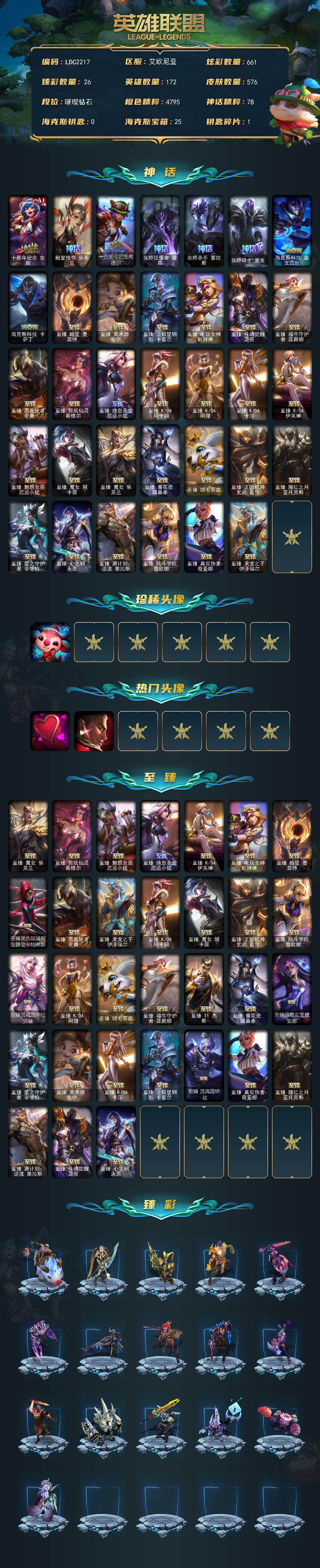 【ldc2217】172英雄/576皮肤/5终极/39神话/83限定/26臻彩/661炫彩/66传说/93史诗/钻石/十周年纪念安妮/殿堂传奇乐芙兰/十五周年纪念希维尔/灰烬征服者潘森/灰烬杀手塞拉斯/灰烬骑士派克/海克斯科技嘉文四世/海克斯科技卡萨丁/至臻真实伤害奇亚娜/至臻天龙之子伊泽瑞尔/至臻暗星墨菲特/至臻奥术师佐伊/至臻北极星钢影卡蜜尔/至臻电玩女神凯特琳/至臻斗魂觉醒派克/至臻福牛守护者菲奥娜/至臻黑夜使者李青/至臻剪纸仙灵希维尔/至臻绝息圣堂厄运小姐/至臻kda阿卡丽/至臻kda阿狸/至臻kda卡莎/至臻kda伊芙琳/至臻魅惑女巫厄运小姐/至臻魔女阿卡丽/至臻魔女乐芙兰/至臻青花瓷丽桑卓/至臻绒毛菲兹/至臻王国机神玄武盖伦/至臻腥红之月亚托克斯/至臻星之守护者辛德拉/至臻心之钢永恩/至臻源计划逆流塞拉斯/至臻战斗学院蕾欧娜/至爱的鹿头像/爱意绵绵头像/觅心游侠卢锡安头像/至臻黑色玫瑰假面舞会卡特琳娜/至臻灵魂莲华拉克丝/至臻t1杰斯/至臻暗星女王黛安娜/至臻灵魂莲华劫/天龙之子卡莎飞龙乘云/无畏骑士瑟庄妮赤子初心/冠军之箭艾希凯旋圣装/吕布奉先炫金战神/墨之影武者亚索金墨耀影/冠军之刃锐雯2016凯旋圣装/神龙尊者圣龙李青龙腾云起/源计划毁灭派克幻灭/天煞劫恒星游历者/西部天使赛娜神选天使长/黎明使者锐雯黑夜使者/玉剑传说无劫胭脂/星之守护者金克丝黑洞/灰烬守护者慎余烬觉醒/霸天巨兽雪崩墨菲特/霸天剑魔亚托克斯涤罪之翼/最终boss维迦里大魔王/可爱可爱粉红红布里茨/殿堂传奇乐芙兰登神/魔女阿卡丽虚荣/净雪之月莫甘娜冬虹/幽梦玫瑰泰隆浪漫花蕾/心之钢伊泽瑞尔天纵才华/灌篮高手德莱厄斯金色神话/龙的传人李青/替父从军花木兰/广寒仙子嫦娥/虎痴之拳蔚/王国机神苍狼瑟提/天龙之子斯莫德/点心宝贝阿木木/甜心宝贝娑娜/觅心萝莉金克丝/觅心之翼奎因/圣诞狂欢努努和威朗普/狂心冰王图奇/阿木木“主人不要我了”/胡桃夹子萨科/喜庆之树茂凯/圣诞玩偶波比/圣诞老人古拉加斯/圣诞驯鹿克格莫/魄罗骑士瑟庄妮/圣诞老人布隆/冰雪节格雷福斯/冰雪女神辛德拉/北极星发明家塞拉斯/大元素使拉克丝/dj娑娜/kdaallout萨勒芬妮独立音乐人/冠军蔷薇乐芙兰/fnatic卡尔萨斯/暗杀星奥莉安娜/sktt1劫/sktt1婕拉/ssw泰隆/ssw雷恩加尔/sktt1阿利斯塔/sktt1雷克顿/sktt1瑞兹/sktt1烬/sktt1辛德拉/ssg伊泽瑞尔/ig艾瑞莉娅/ig卡莎/ig乐芙兰/edg佐伊/t1奥莉安娜/t1永恩/星之守护者伊泽瑞尔/玉剑传说无影/海珀利安小队y03权天使卡蜜尔/玉剑传说无劫/玉剑传说神机花火/暗裔英雄盖伦/胜利之树茂凯/胜利呛神格雷福斯/胜利女神奥莉安娜/胜利之剑亚托克斯/胜利呛神卢锡安/胜利女神瑟庄妮/胜利凤凰艾尼维亚/胜利之王泰达米尔/胜利巨口克格莫/胜利女神娑娜/胜利剑圣易/胜利之运崔斯特/胜利女神菲奥娜/伯爵卡萨丁/死亡誓约劫/不给糖就捣蛋艾克/魅惑女巫崔丝塔娜/魅惑女巫莫甘娜/泳池派对格雷福斯/泳池派对黑默丁格/泳池派对凯特琳/泳池派对塔里克/泳池派对佐伊/暗影沃里克/波比的巧克力工坊/都铎王朝图奇/玉剑传说舞龙卫/玉剑传说翼剑仙/斗魂觉醒佛耶戈/征服者卡尔玛/制胜金靴李青/防暴士兵辛吉德/防暴天使凯尔/海之歌永恩/铁哥们儿奥拉夫/魔幻卡牌崔斯特/战地机甲厄加特/邪鸦魅影乐芙兰/钢铁之翼凯尔/恶魔男爵瑞兹/提莫约德尔人的一大步/约德尔国队长提莫/太空律动律动队长提莫/烈焰雄心崔丝塔娜/驯龙炮手崔丝塔娜/合金巨兽努努和威朗普/女皇艾希/西部天使艾希/恶魔之刃泰达米尔/鬼魂新娘莫甘娜/魔女伊芙琳/绅士科加斯/双重冰晶艾尼维亚/律政大亨蒙多/电玩女神娑娜/女主播迦娜/最终boss维迦/女警狙击凯特琳/未来战士凯特琳/战斗学院凯特琳/太空律动猫猫布里和里茨/女帝卡特琳娜/丧尸布兰德/神拳李青/神龙尊者圣龙李青/源计划净化薇恩/光明哨兵薇恩/银河魔装机神兰博/第三类接触黑默丁格/驯龙学者黑默丁格/炼狱魔犬内瑟斯/屠龙勇士潘森/战斗学院伊泽瑞尔/腥红之月鬼武姬阿卡丽/神王盖伦/日蚀骑士蕾欧娜/暗星女王拉克丝/焰尾妖狐阿狸/星之守护者阿狸/光明哨兵格雷福斯/符文战熊沃利贝尔/宇航员诺提勒斯/泳池派对吉格斯/金牌主播德莱文/灌篮高手德莱厄斯/神王德莱厄斯/蔷薇绅士杰斯/奥德赛凯隐/黑夜使者亚索/暗星尊烬/星之守护者金克丝/西部魔影卢锡安/天煞劫/影执事劫/真实伤害艾克/暗星锤石/星之守护者洛/星之守护者霞/源计划毁灭派克/黎明使者永恩/安伯斯与提妮/科学怪熊的新娘安妮/皇家火呛手崔斯特/屠龙勇士赵信/摄魂男爵弗拉基米尔/铁钩船长费德提克/圣光审判凯尔/侍魂易/战争机器赛恩/钢铁之心希维尔/兔宝宝提莫/熊猫提莫/荒野豺狼沃里克/紫晶射手艾希/少林武僧贾克斯/炼金狂士辛吉德/卡尔萨斯祸害之光/战争血统蒙多/五杀摇滚键盘手娑娜/掠星魔刃卡萨丁/夜刃艾瑞莉娅/特种部队普朗克/抵抗军天使凯特琳/霸天巨兽墨菲特/无畏号墨菲特/海贼魅影卡特琳娜/沙漠风暴卡特琳娜/蓝焰梦魔魔腾/符文战神雷克顿/龙骑统帅嘉文四世/凯旋英雄嘉文四世/暗星嘉文四世/灵骨工匠奥莉安娜/三昧真火孙悟空/斗战胜佛孙悟空/冰晶之核布兰德/至高之拳李青/地下拳王李青/战地机甲斯卡纳/法老王朝内瑟斯/艳后奈德丽/铁血猎手奈德丽/四神之力乌迪尔/军神战甲波比/飞车暴走族古拉加斯/实习护士阿卡丽/