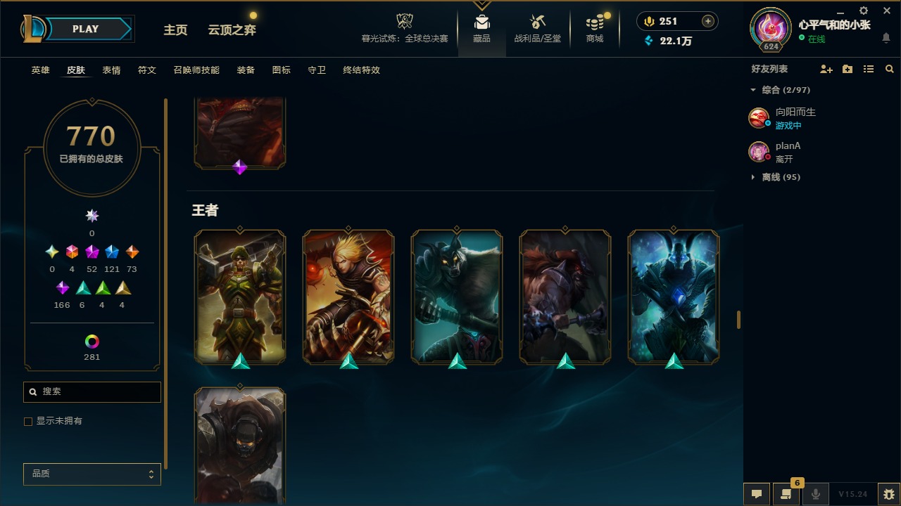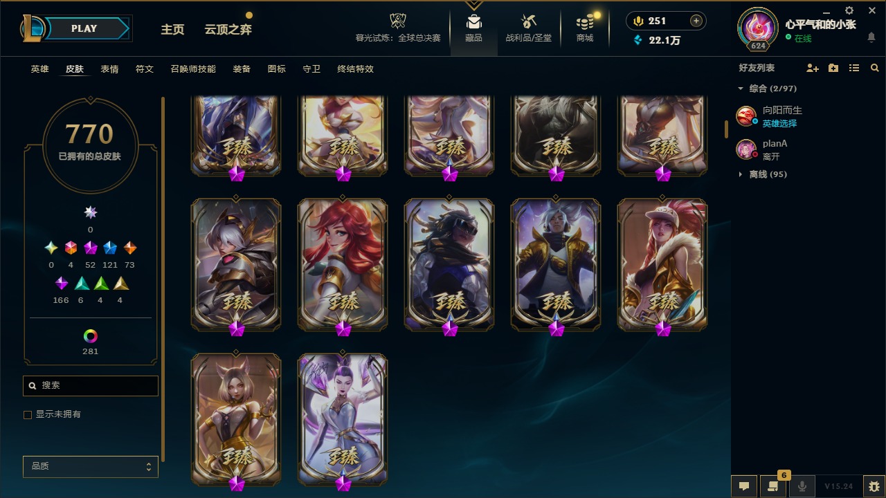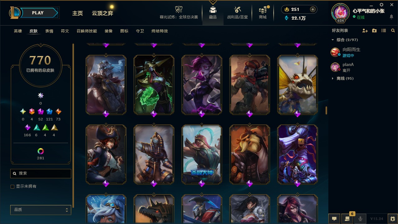 [16416293]4终极 52神话 121限定 73传说 166史诗 770皮肤 350炫彩 172英雄 可二次 可修改实名 【至臻】至臻 天龙之子 伊泽瑞尔至臻 心之钢 永恩至臻 墨之影武者 亚索至臻 暗星女王 黛安娜至臻 k/da 阿卡丽至臻 腥红之月 亚托克斯至臻 电玩女神 凯