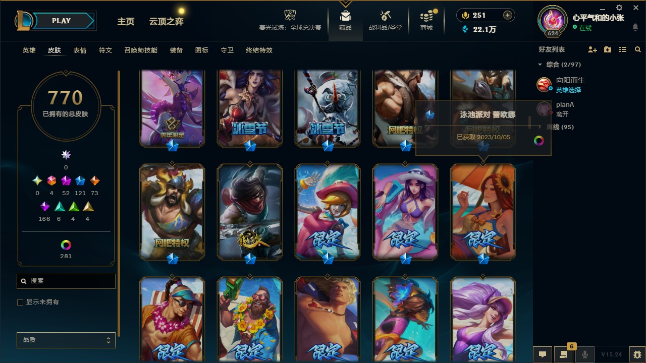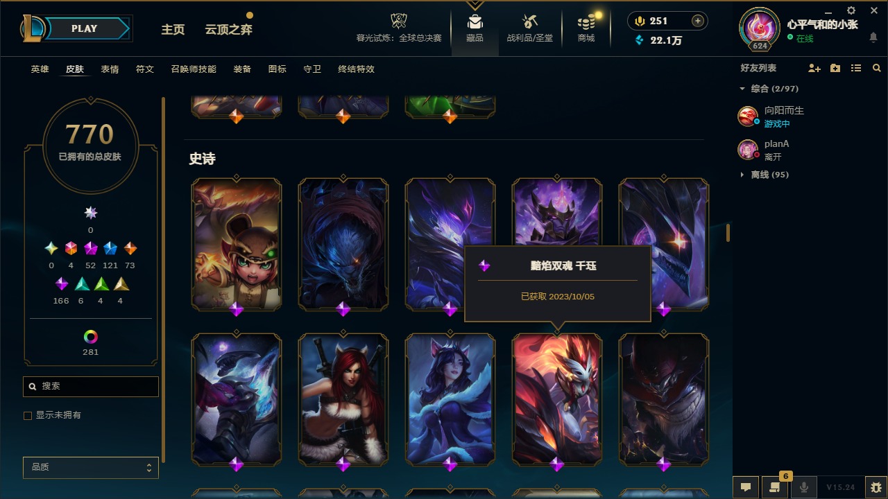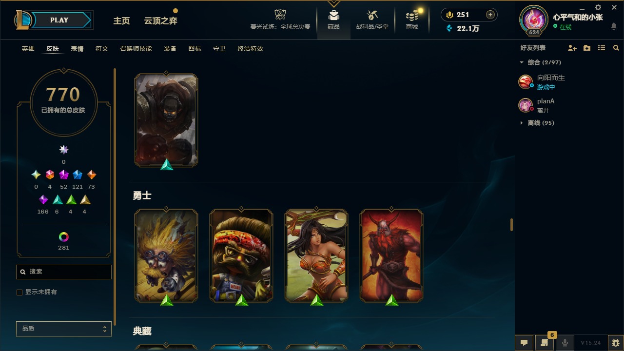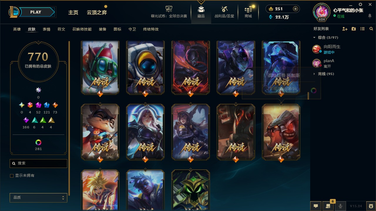 [16416293]4终极 52神话 121限定 73传说 166史诗 770皮肤 350炫彩 172英雄 可二次 可修改实名 【至臻】至臻 天龙之子 伊泽瑞尔至臻 心之钢 永恩至臻 墨之影武者 亚索至臻 暗星女王 黛安娜至臻 k/da 阿卡丽至臻 腥红之月 亚托克斯至臻 电玩女神 凯
