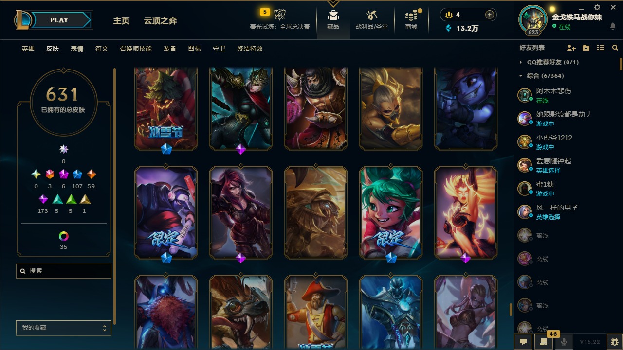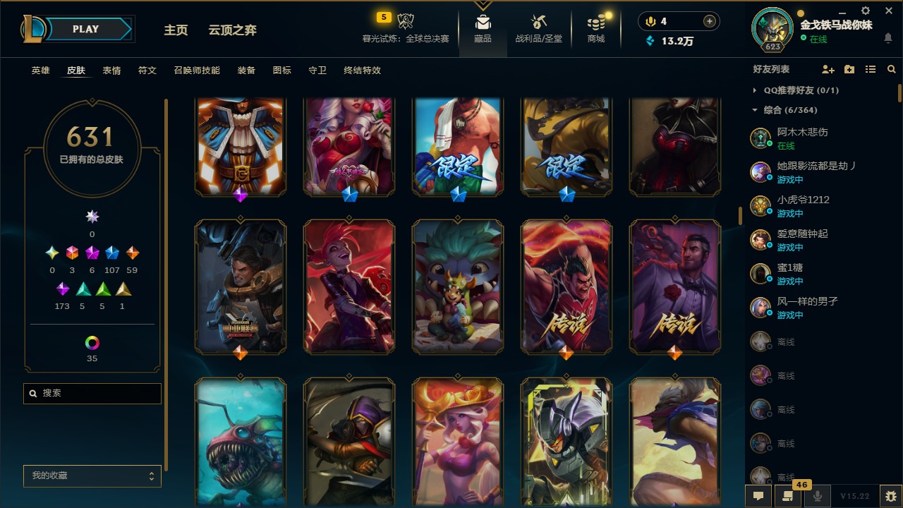 [16425553]3终极 6神话 107限定 59传说 173史诗 631皮肤 42炫彩 164英雄 可二次 可修改实名 【海克斯】摄魂 薇恩海克斯 安妮 【限定】钢铁军团 拉克丝奥斯曼大帝 泰达米尔舞会公主 安妮巨角幻兽 阿利斯塔暗黑灵魂 阿利斯塔哥特萝莉 安妮 【情人节限定】觅心
