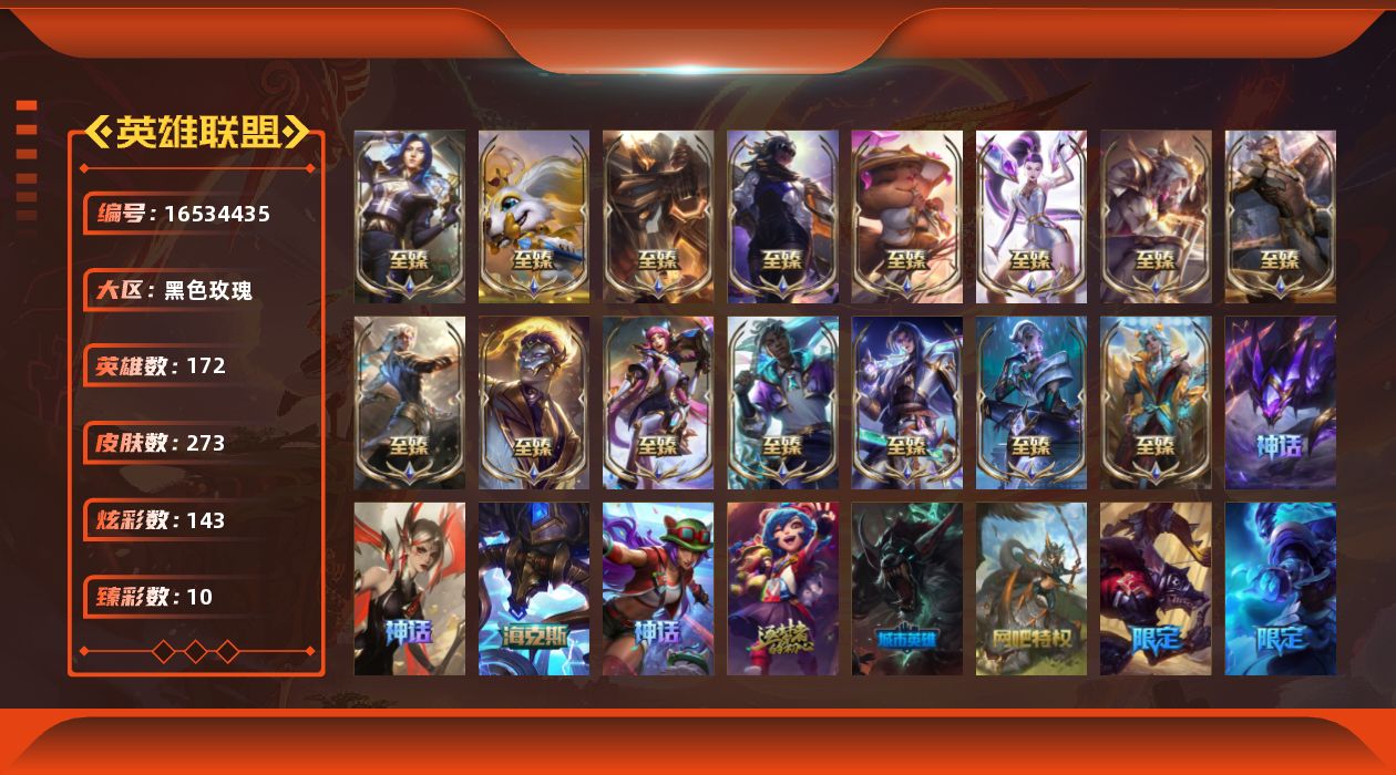 [16534435]【特价出售/店主推荐】 白银段位-172英雄-273皮肤-143炫彩-0终极-22神话-31限定-37传说-59史诗 【神话皮肤】:十周年纪念安妮,殿堂传奇乐芙兰,十五周年纪念希维尔,神凰行者瑞羽圣凰艾尼维亚,水晶掠夺者卡兹克,海克斯科技阿利斯塔,至臻真实伤害赛娜,至臻天龙之子伊泽瑞尔,至臻北极星钢影卡蜜尔,至臻黑夜使者凯隐,至臻幻灵战斗猫金克丝,至臻kdaallout卡莎,至臻灵魂莲华提莫,至臻女帝黛安娜,至臻绒毛菲兹,至臻王国机神玄武盖伦,至臻星之守护者艾克,至臻心之钢永恩,至臻焰执事布兰德,至臻源计划逆流塞拉斯 【至臻皮肤】:至臻灵魂莲华提莫,至臻蒙面女郎莫甘娜,至臻双城之战2指挥官凯特琳,至臻焰执事布兰德,至臻天龙之子伊泽瑞尔,至臻王国机神玄武盖伦,至臻绒毛菲兹,至臻女帝黛安娜,至臻黑夜使者凯隐,至臻kdaallout卡莎,至臻北极星钢影卡蜜尔,至臻幻灵战斗猫金克丝,至臻真实伤害赛娜,至臻星之守护者艾克,至臻源计划逆流塞拉斯,至臻心之钢永恩 【臻彩皮肤】:无畏骑士瑟庄妮赤子初心,张辽文远炫金将军,征服者韦鲁斯炫金,神龙尊者圣龙李青龙腾云起,星之守护者霞烈羽,玉剑传说寒潭夭夭胭脂,殿堂传奇乐芙兰登神,魔女阿卡丽虚荣,净雪之月莫甘娜冬虹,西部魔影执行人卡特琳娜纯洁 【年限皮肤】:点心宝贝阿木木 【海克斯皮肤】:海克斯科技阿利斯塔 【冰雪限定】:圣诞狂欢努努和威朗普,圣诞狂欢基兰,喜庆之树茂凯,圣诞驯鹿克格莫,魄罗骑士瑟庄妮,冰雪节辛吉德,冰雪女神辛德拉 【限定皮肤】:冠军典狱长锤石,暗杀星慎,sktt1婕拉,sktt1卡莉丝塔,sktt1瑞兹,sktt1艾克,sktt1奥拉夫,sktt1辛德拉,玉剑传说神机花火,暗裔英雄盖伦,胜利凤凰艾尼维亚,胜利之王泰达米尔,胜利巨口克格莫,胜利女神娑娜,胜利剑圣易,胜利之运崔斯特,胜利女神菲奥娜,魅惑女巫奈德丽,暗影沃里克,野兽猎人瑟庄妮,都铎王朝图奇,防暴天使凯尔 【传说皮肤】:地狱之门卫士加里奥,大天使长米迦勒凯尔,钢铁之翼凯尔,源计划林易,提莫约德尔人的一大步,欧米伽小队幽灵特工,太空律动律动队长提莫,驯龙炮手崔丝塔娜,女皇艾希,西部天使艾希,双重冰晶艾尼维亚,律政大亨蒙多,电玩女神娑娜,冰霜之刃艾瑞莉娅,最终boss维迦,冰川巨兽墨菲特,丧尸布兰德,源计划净化薇恩,屠龙勇士潘森,战斗学院伊泽瑞尔,月蚀骑士蕾欧娜,西