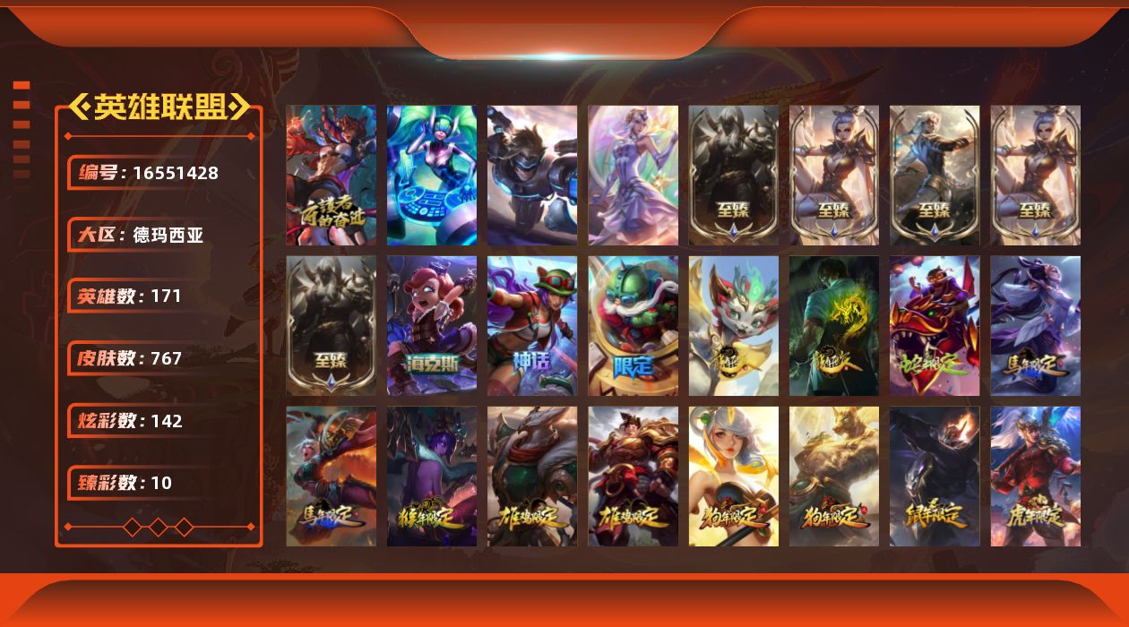 [16551428]可二次【特价出售/店主推荐】青铜段位-171英雄-767皮肤-142炫彩-4终极-8神话-149限定-67传说-178史诗 【热门头像】:爱情之歌头像,觅心之翼奎因头像 【至臻皮肤】:至臻玉剑传说武剑仙锐雯,至臻玉剑传说武剑仙2022,至臻黑夜使者凯隐,至臻腥红之月亚托克斯,至臻腥红之月亚托克斯2022 【臻彩皮肤】:龙的传人李青飞龙在天,天龙之子卡莎飞龙乘云,无畏骑士瑟庄妮赤子初心,墨之影武者亚索金墨耀影,心之钢伊泽瑞尔金声玉振,斗魂觉醒拉克丝无限斗志,星之吞噬者莫甘娜热情之末,魔女阿卡丽虚荣,净雪之月莫甘娜冬虹,心之钢伊泽瑞尔天纵才华 【年限皮肤】:龙的传人李青,碧玉之牙卡西奥佩娅,神龙之翼库奇,替父从军花木兰,广寒仙子嫦娥,紫金罗刹莫甘娜,张辽文远,司马懿仲达,北辰之威内瑟斯,春晖神女拉克丝,王国机神青龙德莱文,猛虎下山赵信,龙腾虎跃瑟提,剪纸仙灵艾瑞莉娅,天龙之子斯莫德 【海克斯皮肤】:海克斯科技安妮 【情人节限定】:甜心宝贝安妮,甜心之羽霞,幽梦玫瑰伊莉丝 【冰雪限定】:幸福女神乐芙兰,冰雪风暴希维尔,冬境仙灵索拉卡,圣诞开心鬼提莫,圣诞精灵崔丝塔娜,圣诞糖果棒厄运小姐,圣诞狂欢基兰,阿木木“主人不要我了”,胡桃夹子萨科,平安夜女神娑娜,英勇玩具兵普朗克,邪恶圣诞老人维迦,夺命美人卡特琳娜,喜庆之树茂凯,冬季仙境奥莉安娜,雪默丁格,雪装奈德丽,圣诞玩偶波比,圣诞老人古拉加斯,圣诞驯鹿克格莫,雪球也能爆炸吉格斯,圣诞老人布隆,冰雪节辛吉德,冰雪女神辛德拉,冰雪兽纳尔 【终极皮肤】:大元素使拉克丝,dj娑娜,斗魂觉醒莎弥拉,未来战士伊泽瑞尔 【神话皮肤】:十五周年纪念希维尔,神凰行者瑞羽圣凰艾尼维亚,海克斯科技安妮,至臻黑夜使者凯隐,至臻腥红之月亚托克斯,至臻腥红之月亚托克斯2022,至臻玉剑传说武剑仙,至臻玉剑传说武剑仙2022 【限定皮肤】:奥斯曼大帝泰达米尔,卧虎藏龙贾克斯,舞会公主安妮,创星之灵璐璐,送披萨的小姐姐希维尔,地底世界崔斯特,冠军典狱长锤石,冠军之血希瓦娜,冠军之矛卡莉丝塔,冠军之刃锐雯2016,冠军之隐劫,2023全球总决赛雷克顿,fnatic古拉加斯,fnatic迦娜,fnatic嘉文四世,fnatic卡尔萨斯,fnatic库奇,暗杀星奥莉安娜,暗杀星蒙多,暗杀星努努和威朗普,暗杀星慎,暗杀星伊泽瑞尔,sktt1贾克斯,skt
