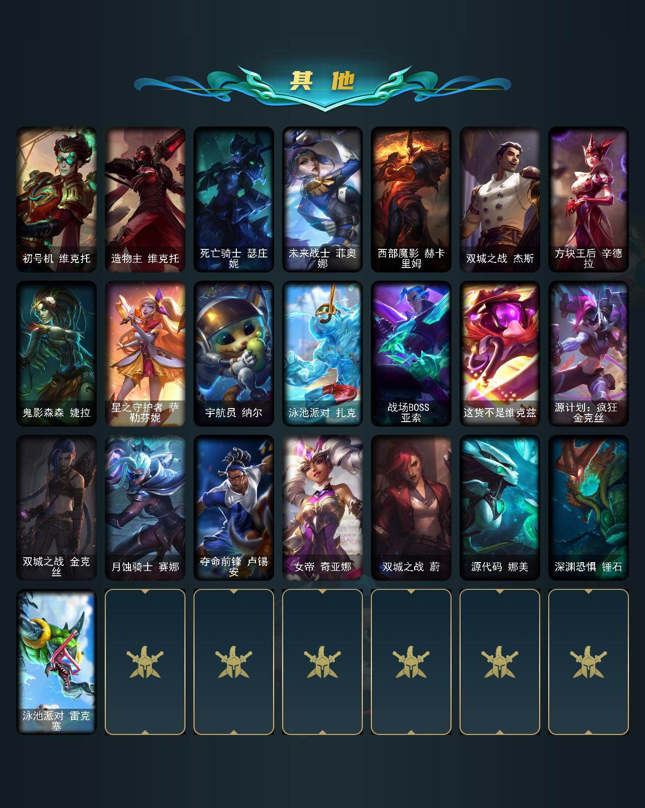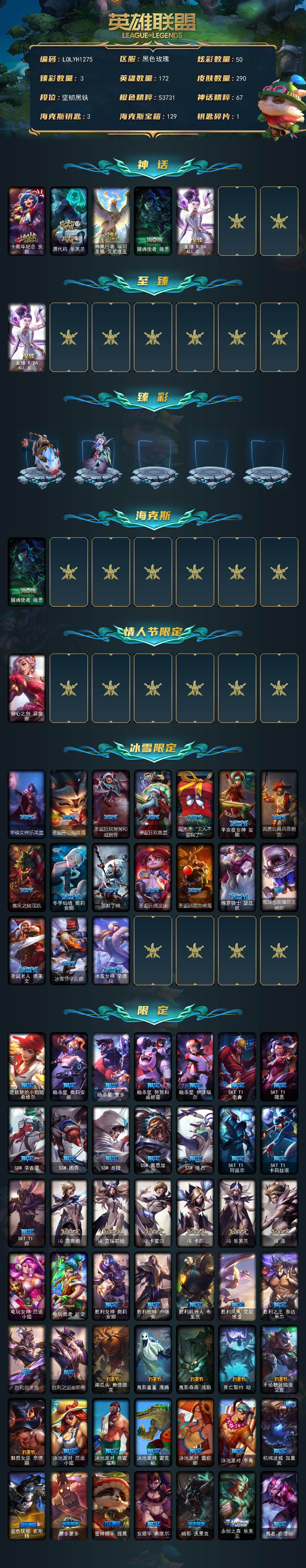 【lolyh1275】172英雄/290皮肤/5神话/74限定/3臻彩/50炫彩/31传说/69史诗/未定级账号等级:411/十周年纪念安妮/源代码乐芙兰/神凰行者瑞羽圣凰艾尼维亚/摄魂使者薇恩/至臻kdaallout卡莎/无畏骑士瑟庄妮赤子初心/魔女阿卡丽虚荣/净雪之月莫甘娜冬虹/穿心之剑菲奥娜/幸福女神乐芙兰/圣诞开心鬼提莫/圣诞狂欢努努和威朗普/圣诞狂欢基兰/阿木木“主人不要我了”/平安夜女神娑娜/英勇玩具兵普朗克/喜庆之树茂凯/冬季仙境奥莉安娜/雪默丁格/圣诞玩偶波比/圣诞驯鹿克格莫/魄罗骑士瑟庄妮/雪球也能爆炸吉格斯/圣诞老人德莱文/冰雪节辛吉德/冰雪女神辛德拉/送披萨的小姐姐希维尔/暗杀星奥莉安娜/暗杀星蒙多/暗杀星努努和威朗普/暗杀星伊泽瑞尔/sktt1李青/sktt1薇恩/ssw辛吉德/ssw图奇/ssw泰隆/ssw雷恩加尔/ssw锤石/sktt1阿兹尔/sktt1卡莉丝塔/sktt1烬/ig菲奥娜/ig艾瑞莉娅/ig卡蜜尔/ig卡莎/ig乐芙兰/ig洛/电玩女神厄运小姐/电玩勇者锐雯/胜利女神奥莉安娜/胜利呛神卢锡安/胜利机器人布里茨/胜利凤凰艾尼维亚/胜利之王泰达米尔/胜利剑圣易/胜利之运崔斯特/南瓜头费德提克/鬼影重重魔腾/鬼影森森茂凯/死亡誓约劫/不给糖就捣蛋艾克/魅惑女巫奈德丽/泳池派对厄运小姐/泳池派对格雷福斯/泳池派对雷克顿/泳池派对蕾欧娜/泳池派对李青/机械迷城加里奥/蓝色忧郁崔斯特/蒙多蒙多/密林猎手提莫/女猎手希维尔/暗影沃里克/永恒之森乐芙兰/勇者奈德丽/电玩战魂赫卡里姆/都铎王朝图奇/钢铁之翼艾尼维亚/防暴士兵辛吉德/防暴天使凯尔/惊悚派对阿木木/警用试作体k9内瑟斯/地狱之门卫士加里奥/大天使长米迦勒凯尔/战场女武神凯尔/恶魔男爵瑞兹/驯龙炮手崔丝塔娜/女皇艾希/源计划联合艾希/战地巨兽科加斯/电玩女神娑娜/冰霜之刃艾瑞莉娅/女主播迦娜/最终boss维迦/女警狙击凯特琳/冰川巨兽墨菲特/神龙尊者圣龙李青/第三类接触黑默丁格/炼狱魔犬内瑟斯/星之守护者阿狸/苍穹之光韦鲁斯/宇航员诺提勒斯/女校长菲奥娜/泳池派对吉格斯/金牌主播德莱文/霸天异形卡兹克/灌篮高手德莱厄斯/黑夜使者亚索/暗星尊烬/星之守护者金克丝/西部魔影卢锡安/暗星锤石/源计划毁灭派克/冰霜烈焰安妮/腥红之月崔斯特/摄魂男爵弗拉基米尔/铁钩船长费德提克/战争机器赛恩/战场公主希维尔/钢铁之心希维尔/月光女神阿忒弥斯索拉卡/法国皇室厄运小姐/国王泰达米尔/百夫长贾克斯/少林武僧贾克斯/死神卡尔萨斯/卡尔萨斯祸害之光/侏罗纪化石科加斯/小小骑士阿木木/殇之机器人阿木木/飞越疯人院萨科/战争血统蒙多/五杀摇滚键盘手娑娜/掠星魔刃卡萨丁/恐惧新星普朗克/绝代智将斯维因/抵抗军天使凯特琳/古墓丽影凯特琳/铁血狙击手凯特琳/霸天巨兽墨菲特/暗夜猫女卡特琳娜/前线指挥官卡特琳娜/凯旋英雄嘉文四世/死亡绽放伊莉丝/腥红之月伊莉丝/三昧真火孙悟空/冰晶之核布兰德/灵魂烈焰布兰德/屠龙勇士薇恩/法老王朝内瑟斯/艳后奈德丽/铁血猎手奈德丽/四神之力乌迪尔/星之守护者波比/面包之王潘森/死亡领主莫德凯撒/银色之牙阿卡丽/孤高游侠盖伦/刺客信条锐雯/腥红之月鬼武者慎/战国大名慎/黑帮教父格雷福斯/夜鸦菲奥娜/奥术大师吉格斯/暗星卡兹克/铁血帝皇德莱厄斯/无限烈焰黛安娜/亚特兰蒂斯辛德拉/野火之藤婕拉/邪恶魔人扎克/西部牛仔亚索/源计划风亚索/战地机甲维克兹/西部牛仔烬/腥红之月烬/黯焰双魂千珏/源计划阴劫/霓虹杀拳蔚/霸天剑魔亚托克斯/幽冥领主阿兹尔/腥红之月锤石/上古战魂雷克塞/霹雳游侠弗拉基米尔/西部牛仔崔斯特/魔导绅士维迦/深潜蛙人古拉加斯/牛扒狂战奥拉夫/幽蓝梦魇加里奥/风执事加里奥/探戈灵魂崔斯特/弗拉基米尔侯爵/黑潮弗拉基米尔/荒野幽灵费德提克/暗影易/金牛座阿利斯塔/哞利斯塔/部落精神瑞兹/宗师级法师训练师瑞兹/武仙座海格力斯赛恩/原野伐木工赛恩/睡衣守护者索拉卡/荒野巨兽努努和威朗普/脏兮兮努努和威朗普/特工狂花厄运小姐/关羽云长/冰球队员贾克斯/腥红之月基兰/探戈灵魂伊芙琳/黑金诱惑图奇/幽灵幻影卡尔萨斯/狂欢阿木木/地狱火阿木木/万能小丑萨科/健美教练蒙多/缪斯女神娑娜/虚空前世卡萨丁/暴风女神迦娜/老兵普朗克/大力水手普朗克/海牛骑手库奇/电玩上校库奇/日冕女神卡尔玛/樱花乱舞卡尔玛/绿水晶光辉塔里克/紫水晶意志塔里克/绿野仙踪维迦/垃圾场特朗德尔/巡逻警官特朗德尔/海贼参谋斯维因/双城之战凯特琳/战场boss布里茨/暮色呛骑布里茨/银白呛骑布里茨/三叶草墨菲特/珊瑚礁墨菲特/红牌退场卡特琳娜/幻影梦魔魔腾/劫掠梦魇魔腾/恶咒亡魂魔腾/绿茵门神茂凯/喵凯/星河战队雷克顿/血石战神雷克顿/黑色玫瑰假面舞会伊莉丝/哥特女仆奥莉安娜/热带丛林兰博/沙暴巨蝎斯卡纳/乡村农夫古拉加斯/美酒节特使古拉加斯/斯巴达之魂潘森/万人敌潘森/电玩勇者伊泽瑞尔/龙骑士莫德凯撒/暗星莫德凯撒/奈落之炎阿卡丽/红色彗星凯南/银色闪电凯南/战神阿瑞斯盖伦/荣誉使者玛尔扎哈/血色精锐泰隆/主治医师慎/荣誉使者慎/战地法师泽拉斯/怒之火炮格雷福斯/警长沃利贝尔/坚韧不屈沃利贝尔/夜魔水晶韦鲁斯/觅心射手韦鲁斯/地底迷城诺提勒斯/禁魔石巨像诺提勒斯/初号机维克托/造物主维克托/死亡骑士瑟庄妮/未来战士菲奥娜/西部魔影赫卡里姆/双城之战杰斯/方块王后辛德拉/鬼影森森婕