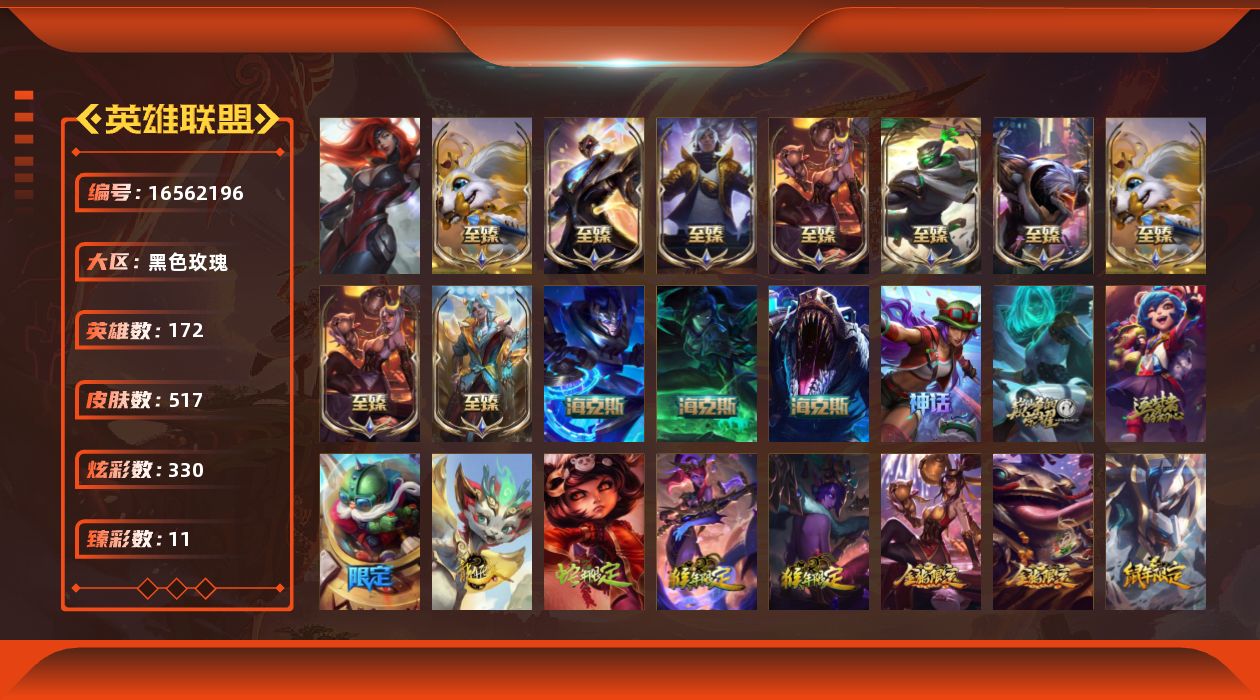 [16562196]【店主推荐捡漏号】白银段位-172英雄-517皮肤-330炫彩-1终极-16神话-71限定-51传说-119史诗 【神话皮肤】:十周年纪念安妮,源代码乐芙兰,十五周年纪念希维尔,神凰行者瑞羽圣凰艾尼维亚,海克斯科技嘉文四世,海克斯科技雷克顿,摄魂使者薇恩,至臻征服者贾克斯,至臻真实伤害亚索,至臻天龙之子伊泽瑞尔,至臻烈焰美人薇恩,至臻烈焰美人薇恩2022,至臻绒毛菲兹,至臻绒毛菲兹2022,至臻未来战士锤石,至臻源计划阴劫 【至臻皮肤】:至臻征服者贾克斯,至臻烈焰美人薇恩,至臻烈焰美人薇恩2022,至臻天龙之子伊泽瑞尔,至臻绒毛菲兹,至臻绒毛菲兹2022,至臻真实伤害亚索,至臻源计划阴劫,至臻未来战士锤石 【臻彩皮肤】:天龙之子卡莎飞龙乘云,无畏骑士瑟庄妮赤子初心,替父从军花木兰炫金龙刃,墨之影武者亚索金墨耀影,霸天异形卡兹克掠空魅影,星之守护者金克丝黑洞,可爱可爱粉红红布里茨,魔女阿卡丽虚荣,净雪之月莫甘娜冬虹,心之钢伊泽瑞尔天纵才华 【年限皮肤】:你看见过我的熊猫吗安妮,紫金罗刹莫甘娜,玉净夜叉凯特琳,烈焰美人薇恩,纳财大帝塔姆,王国机神青龙德莱文,王国机神苍狼瑟提,剪纸仙灵希维尔,天龙之子斯莫德,点心宝贝阿木木 【海克斯皮肤】:海克斯科技雷克顿,海克斯科技嘉文四世,摄魂使者薇恩 【冰雪限定】:圣诞开心鬼提莫,圣诞精灵崔丝塔娜,圣诞糖果棒厄运小姐,狂心冰王图奇,冬季仙境卡尔玛,冰雪驯鹿波比,圣诞老人古拉加斯,雪球也能爆炸吉格斯,冰雪节辛吉德,冰雪节格雷福斯 【终极皮肤】:武装战姬厄运小姐 【限定皮肤】:地底世界崔斯特,冠军之血希瓦娜,冠军之箭艾希,冠军之志瑞兹,fnatic古拉加斯,暗杀星蒙多,暗杀星努努和威朗普,sktt1贾克斯,sktt1劫,sktt1婕拉,sktt1李青,ssw泰隆,sktt1阿兹尔,sktt1烬,ssg霞,ig卡莎,edg厄斐琉斯,神凰行者烈羽焰凰霞,玉剑传说无劫,胜利女神希维尔,胜利之树茂凯,胜利呛神格雷福斯,胜利女神奥莉安娜,胜利之剑亚托克斯,胜利呛神卢锡安,胜利机器人布里茨,胜利女神瑟庄妮,胜利凤凰艾尼维亚,胜利之王泰达米尔,胜利巨口克格莫,胜利女神娑娜,胜利剑圣易,胜利之运崔斯特,南瓜头费德提克,鬼影重重魔腾,鬼影森森茂凯,无头骑士赫卡里姆,泳池派对格雷福斯,泳池派对雷克顿,泳池派对李青,泳池派对佐伊,密林猎手提莫,外星