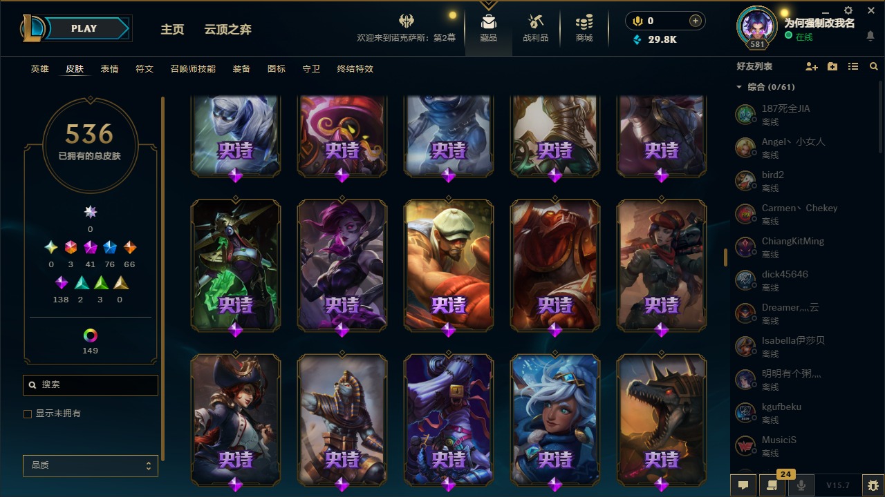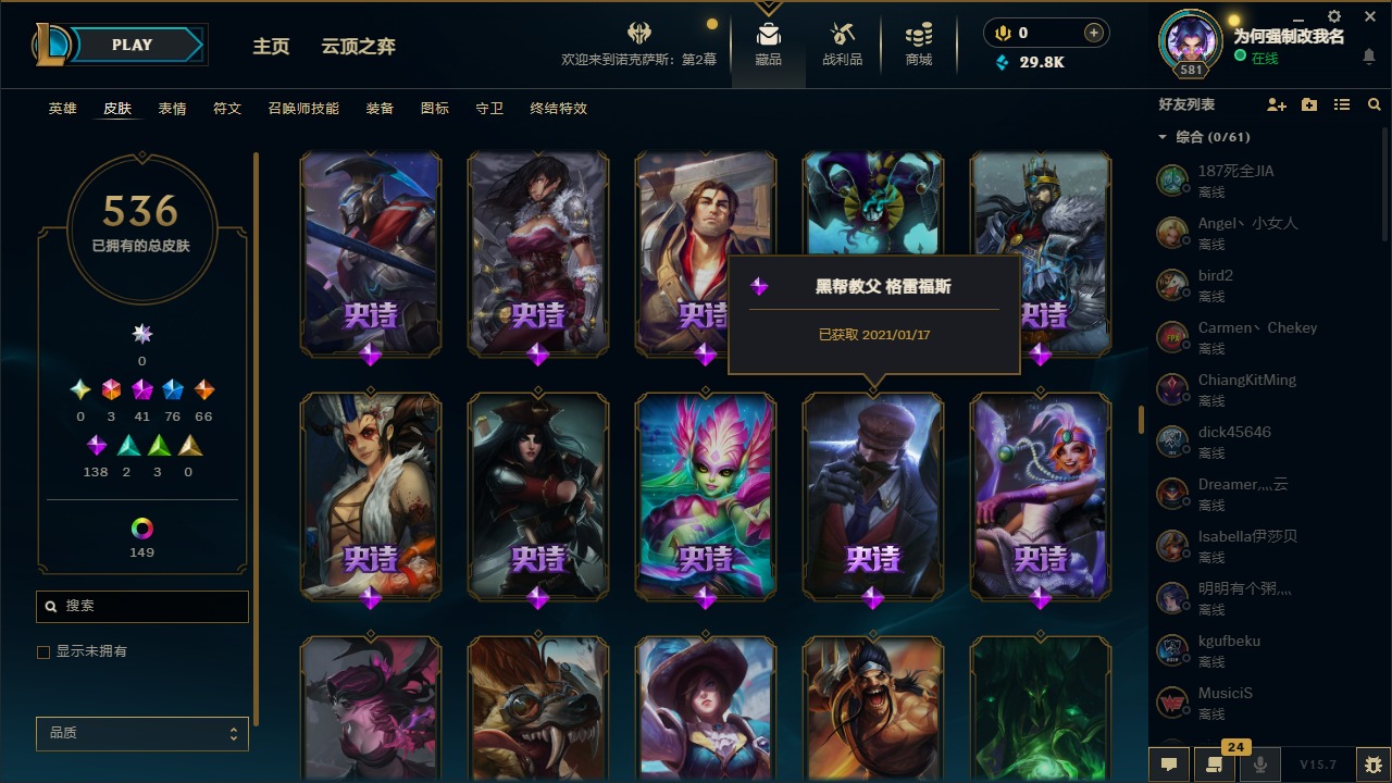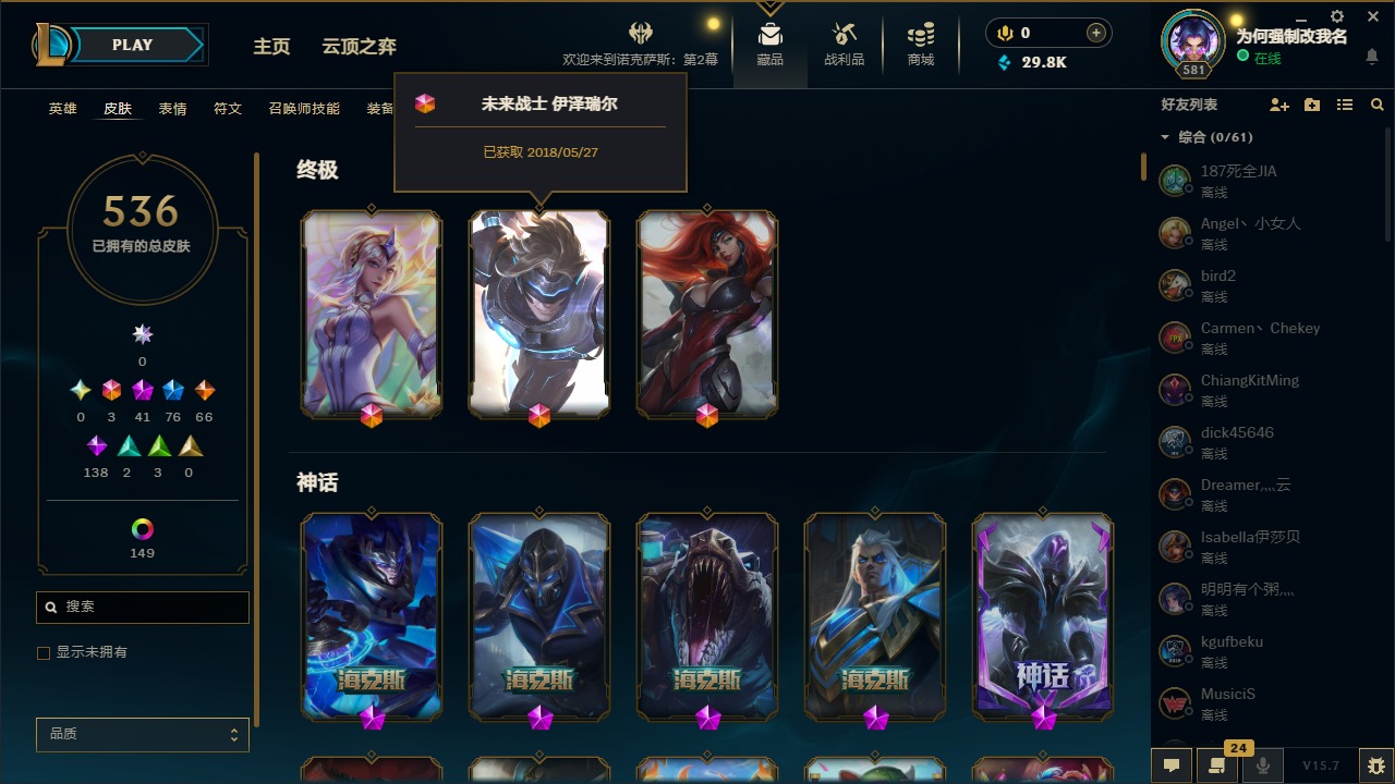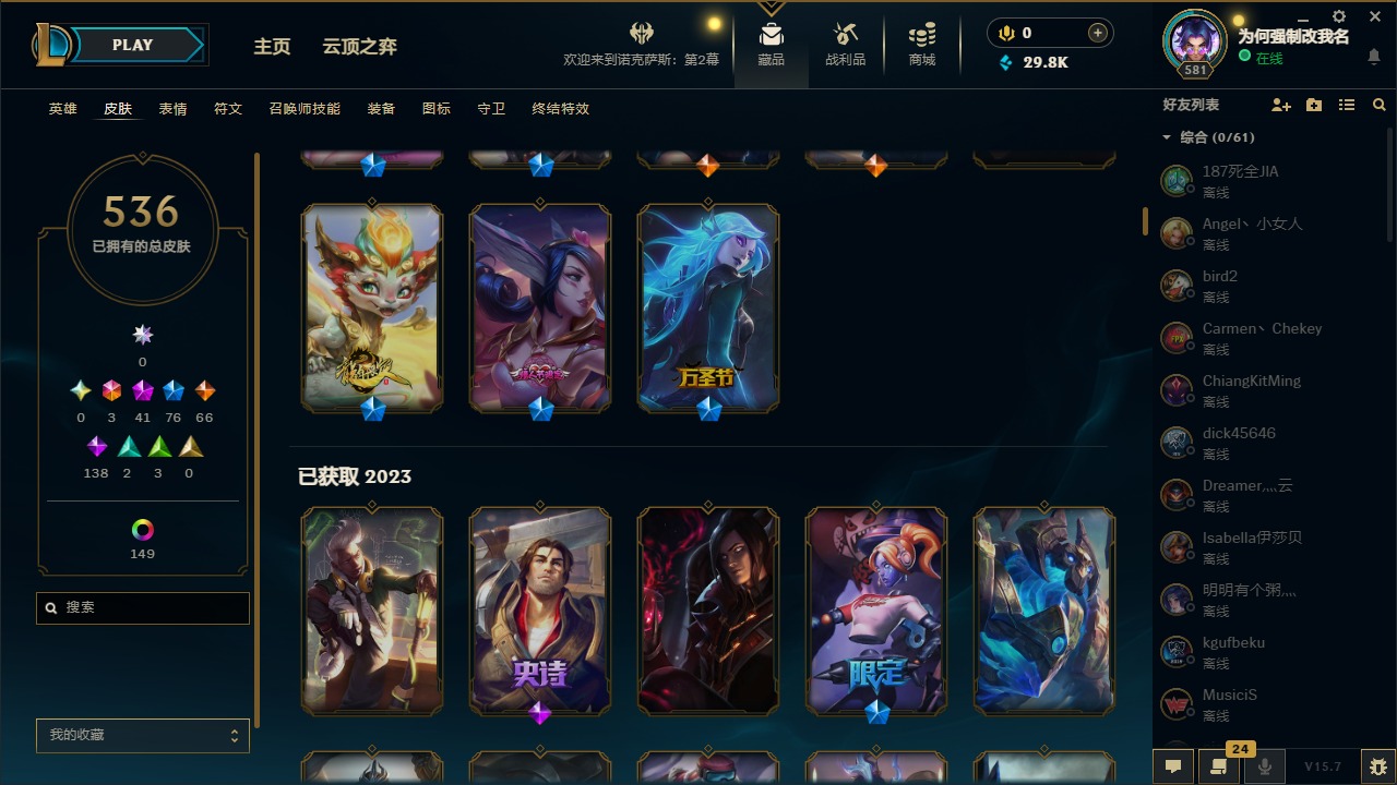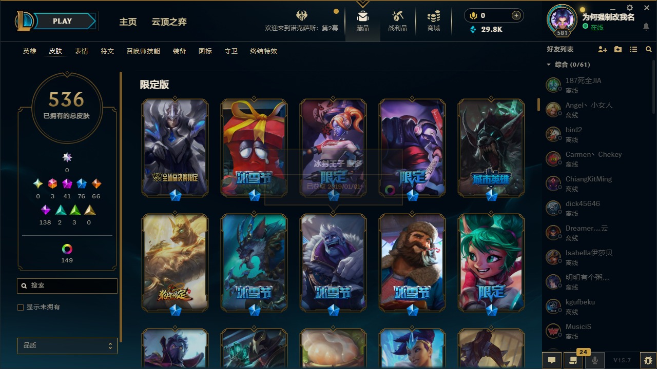 [7458927]3终极 41神话 3臻彩 75限定 66传说 138史诗 536皮肤 162炫彩 170英雄 黄金 皮肤:天龙之子 斯莫德斗魂觉醒 格温灵魂莲华 瑟提至臻 神龙尊者 炎龙瑟提黎明使者 永恩灰烬骑士 派克女帝 芮尔黑夜使者 厄斐琉斯至臻 源计划:逆流 塞拉斯太空律动 “创乐之神” 奥恩永恒之森 奥恩雷霆领主 奥恩甜心之羽 霞绝息圣堂 洛宇航员 巴德冰雪游神 巴德腥红之月 卡莉丝塔糖果之王 艾翁上古战魂 雷克塞抵抗军炎魔 俄洛伊虚空使者 俄洛伊破败解封 锤石暗星 锤石腥红之月 锤石灵能特工 莎弥拉觅心猫猫 悠米skt t1 阿兹尔星际之门 阿兹尔源代码 娜美河水之灵 娜美胜利之剑 亚托克斯腥红之月 亚托克斯霸天剑魔 亚托克斯仲裁圣骑 亚托克斯双城之战 蔚虎痴之拳 蔚铁拳执事 蔚女警官 蔚战场boss 奇亚娜源计划:自由 艾克任性学霸 艾克时之砂 艾克玉剑传说 无劫天煞 劫冠军之隐 劫源计划:阴 劫冲击之刃 劫胜利呛神 卢锡安至臻 未来战士 卢锡安西部魔影 卢锡安觅心游侠 卢锡安源计划:雷 卢锡安真实伤害 赛娜五星大厨 塔姆双城之战 金克丝源计划:疯狂 金克丝星之守护者 金克丝黑帮狂花 金克丝灵魂莲华 千珏暗星尊 烬源计划:升华 烬腥红之月 烬糖果大战 布隆布隆·狮心猛虎 布隆屠龙勇士 布隆荣誉使者 阿克尚ig 卡蜜尔魔女 卡蜜尔源代码 卡蜜尔弗雷尔卓德 塔莉垭苍穹之光 维克兹战地机甲 维克兹神龙尊者 昼日真龙 亚索至臻 真实伤害 亚索奥德赛 亚索黑夜使者 亚索源计划:风 亚索战地机甲 扎克泳池派对 扎克邪恶魔人 扎克宇航员 纳尔银河魔装机神 纳尔狂狮 纳尔萌侦探 喵尔摩斯星之守护者 卡莎至臻 k/da all out 卡莎ig 卡莎弹幕天使 卡莎鬼影森森 婕拉至臻 黑夜使者 凯隐摄魂猎手 凯隐亚特兰蒂斯 辛德拉仲裁圣女 辛德拉觅心之翼 奎因勇敢的心 奎因至臻 女帝 黛安娜黑潮 黛安娜腥红之月 黛安娜无限烈焰 黛安娜广寒仙子 嫦娥暗黑女武神 黛安娜暗星女王 丽桑卓源代码 丽桑卓
