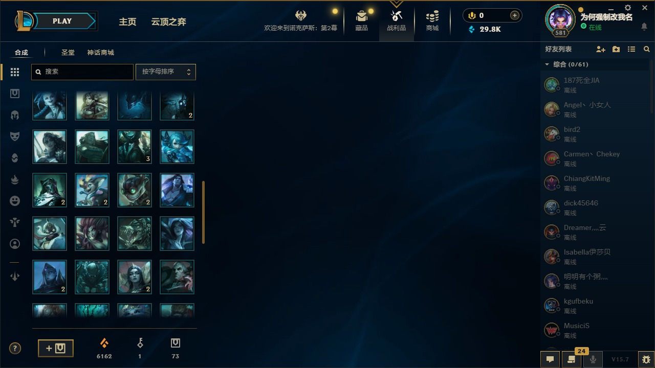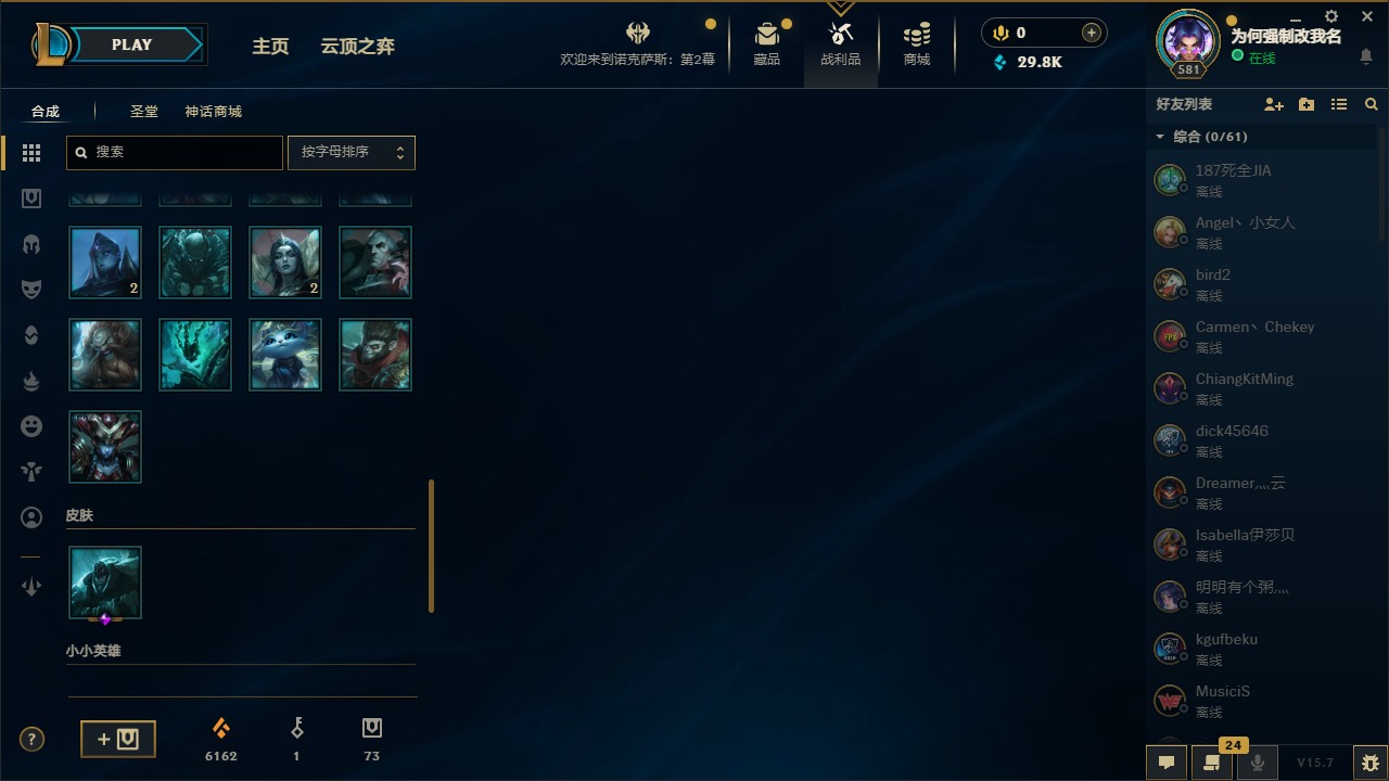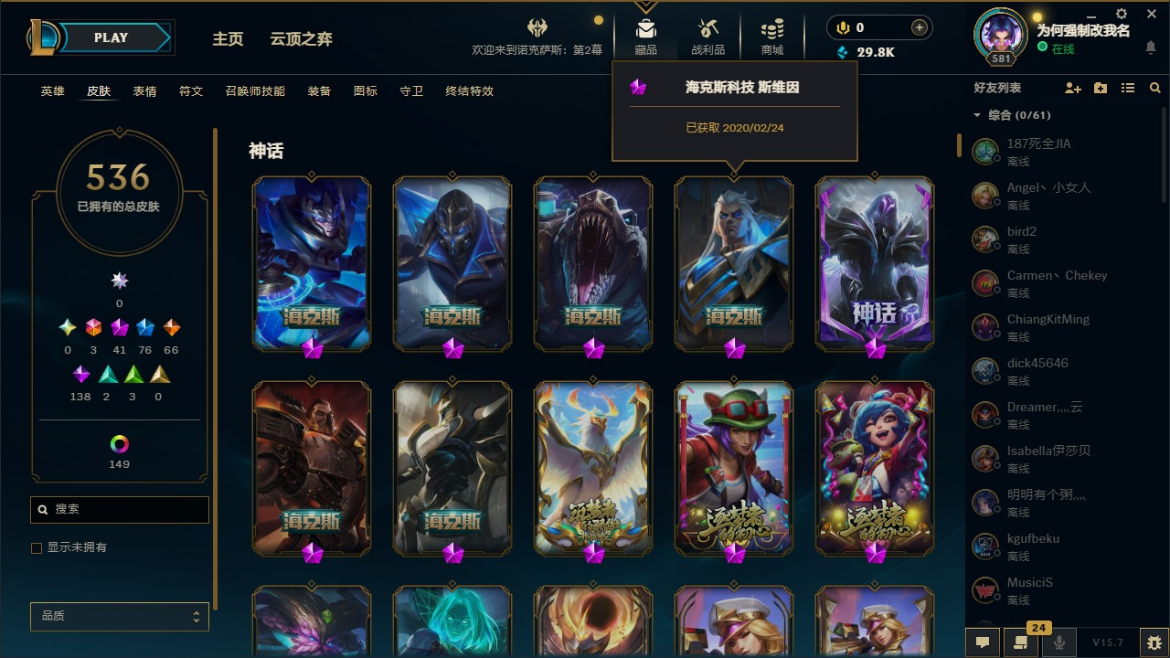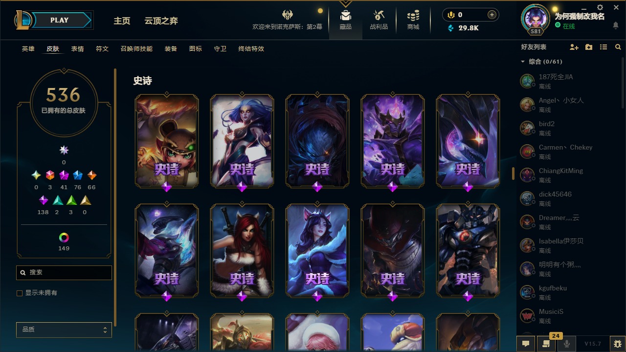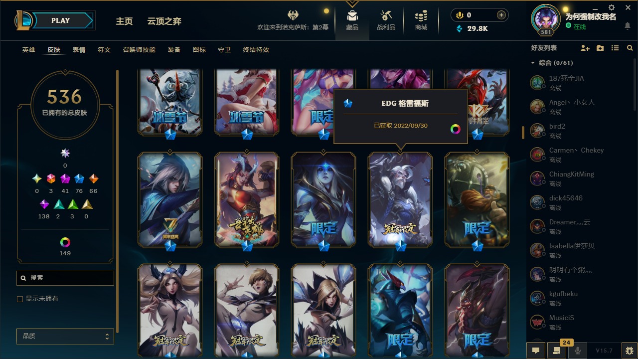 [7458927]3终极 41神话 3臻彩 75限定 66传说 138史诗 536皮肤 162炫彩 170英雄 黄金 皮肤:天龙之子 斯莫德斗魂觉醒 格温灵魂莲华 瑟提至臻 神龙尊者 炎龙瑟提黎明使者 永恩灰烬骑士 派克女帝 芮尔黑夜使者 厄斐琉斯至臻 源计划:逆流 塞拉斯太空律动 “创乐之神” 奥恩永恒之森 奥恩雷霆领主 奥恩甜心之羽 霞绝息圣堂 洛宇航员 巴德冰雪游神 巴德腥红之月 卡莉丝塔糖果之王 艾翁上古战魂 雷克塞抵抗军炎魔 俄洛伊虚空使者 俄洛伊破败解封 锤石暗星 锤石腥红之月 锤石灵能特工 莎弥拉觅心猫猫 悠米skt t1 阿兹尔星际之门 阿兹尔源代码 娜美河水之灵 娜美胜利之剑 亚托克斯腥红之月 亚托克斯霸天剑魔 亚托克斯仲裁圣骑 亚托克斯双城之战 蔚虎痴之拳 蔚铁拳执事 蔚女警官 蔚战场boss 奇亚娜源计划:自由 艾克任性学霸 艾克时之砂 艾克玉剑传说 无劫天煞 劫冠军之隐 劫源计划:阴 劫冲击之刃 劫胜利呛神 卢锡安至臻 未来战士 卢锡安西部魔影 卢锡安觅心游侠 卢锡安源计划:雷 卢锡安真实伤害 赛娜五星大厨 塔姆双城之战 金克丝源计划:疯狂 金克丝星之守护者 金克丝黑帮狂花 金克丝灵魂莲华 千珏暗星尊 烬源计划:升华 烬腥红之月 烬糖果大战 布隆布隆·狮心猛虎 布隆屠龙勇士 布隆荣誉使者 阿克尚ig 卡蜜尔魔女 卡蜜尔源代码 卡蜜尔弗雷尔卓德 塔莉垭苍穹之光 维克兹战地机甲 维克兹神龙尊者 昼日真龙 亚索至臻 真实伤害 亚索奥德赛 亚索黑夜使者 亚索源计划:风 亚索战地机甲 扎克泳池派对 扎克邪恶魔人 扎克宇航员 纳尔银河魔装机神 纳尔狂狮 纳尔萌侦探 喵尔摩斯星之守护者 卡莎至臻 k/da all out 卡莎ig 卡莎弹幕天使 卡莎鬼影森森 婕拉至臻 黑夜使者 凯隐摄魂猎手 凯隐亚特兰蒂斯 辛德拉仲裁圣女 辛德拉觅心之翼 奎因勇敢的心 奎因至臻 女帝 黛安娜黑潮 黛安娜腥红之月 黛安娜无限烈焰 黛安娜广寒仙子 嫦娥暗黑女武神 黛安娜暗星女王 丽桑卓源代码 丽桑卓